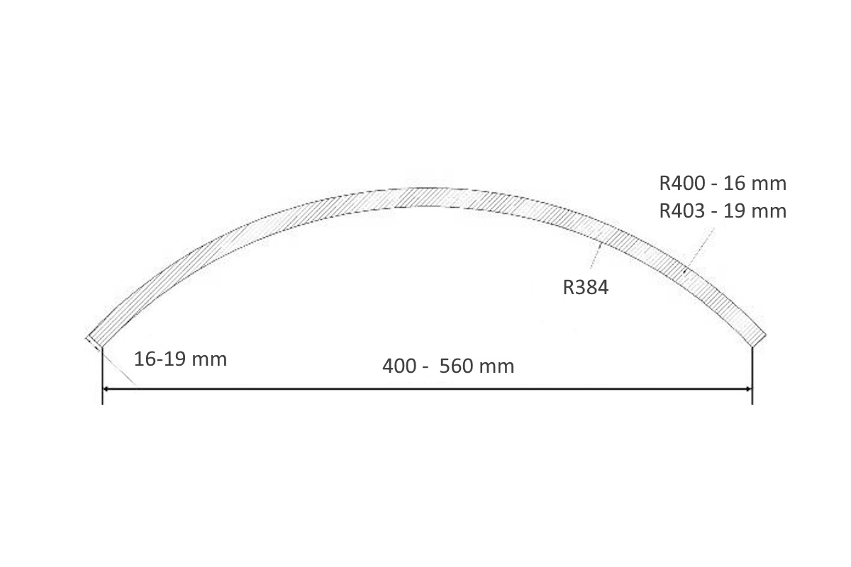Radius MDF facade R384 external with a correct chord radius of 560 mm