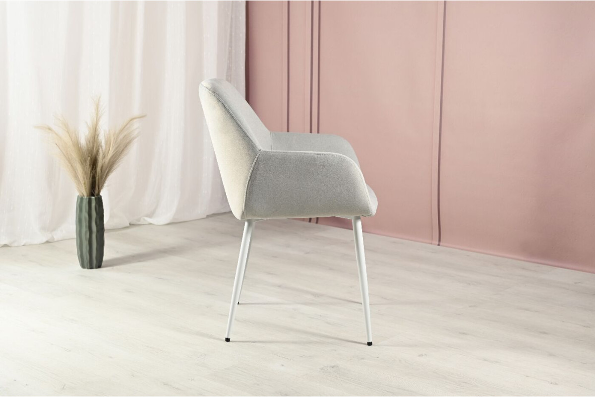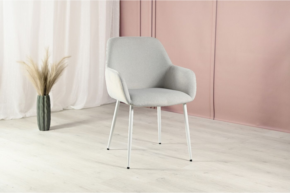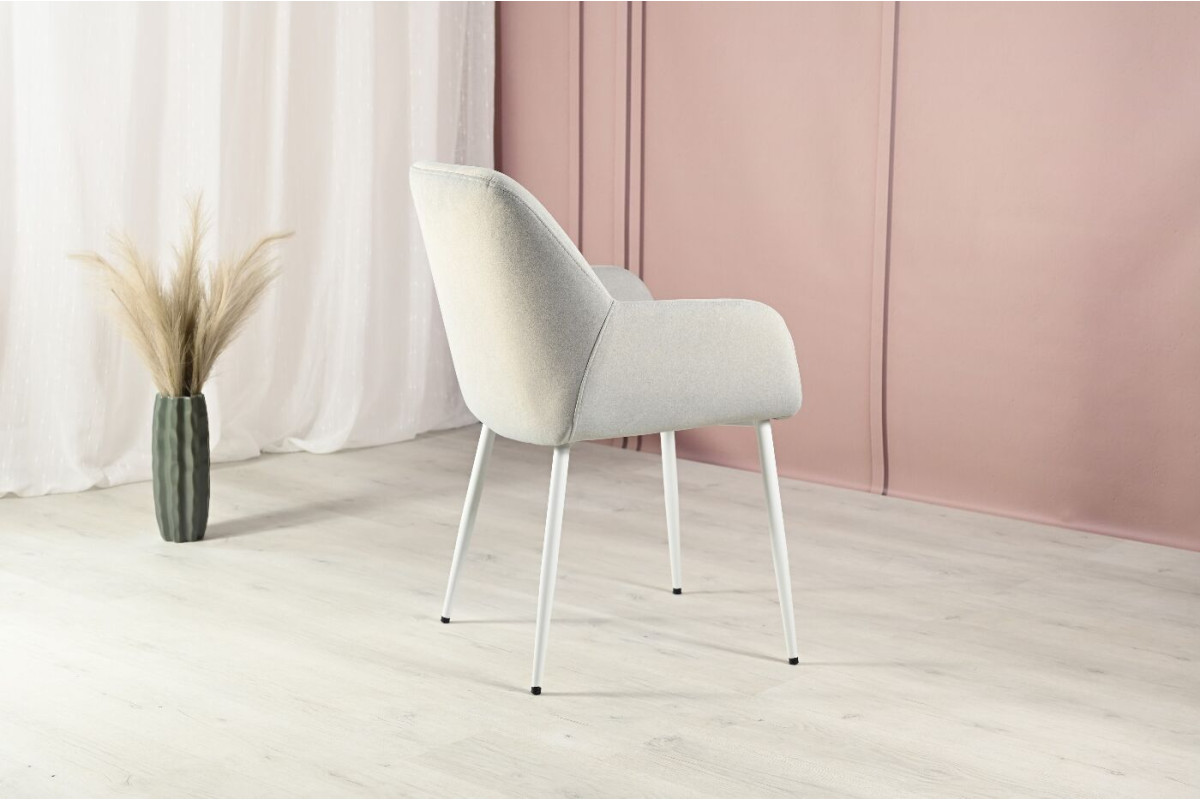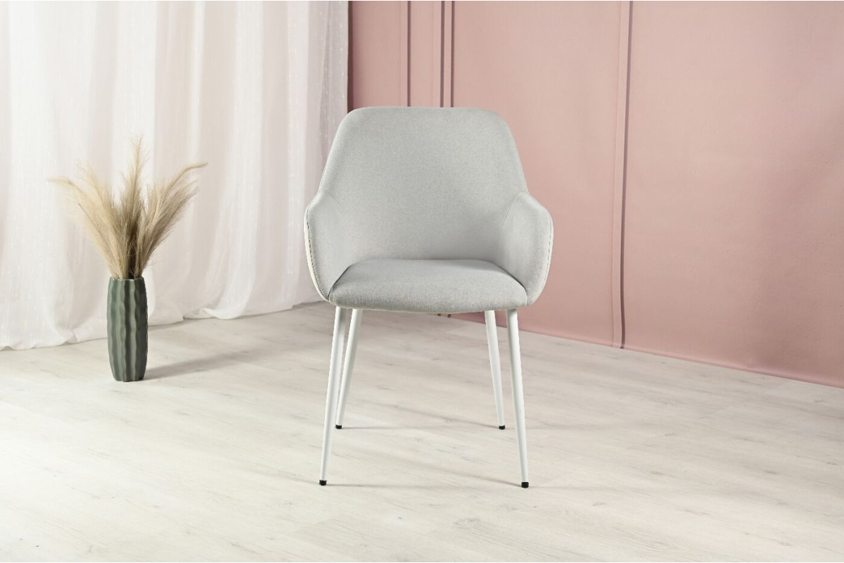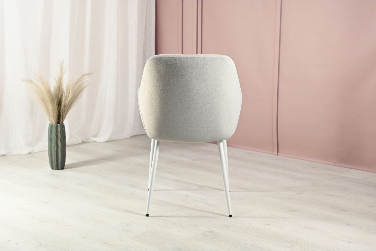 Стілець M-220 устричний + білий — це вишуканий та зручний предмет меблів, який чудово підійде для сучасних інтер'єрів. Оббивка стільця виконана з мохеру — тканини, яка відома своєю м'якістю і довговічністю. Колір \"устричний\" має приємний нейтральний відтінок, що додає елегантності і гармонійно виглядає в будь-якому інтер'єрі. Біла фарбована металева основа забезпечує стабільність і надає стільцю сучасного вигляду. Стілець оснащений підлокітниками, що додають додаткового комфорту під час сидіння. Широке сидіння (55 см) і зручна глибина (від 44 до 58 см) гарантують комфорт навіть при тривалому використанні. Цей стілець чудово підійде для обідніх зон, робочих кабінетів або як елемент декору в інтер'єрах, де важлива елегантність і комфорт.