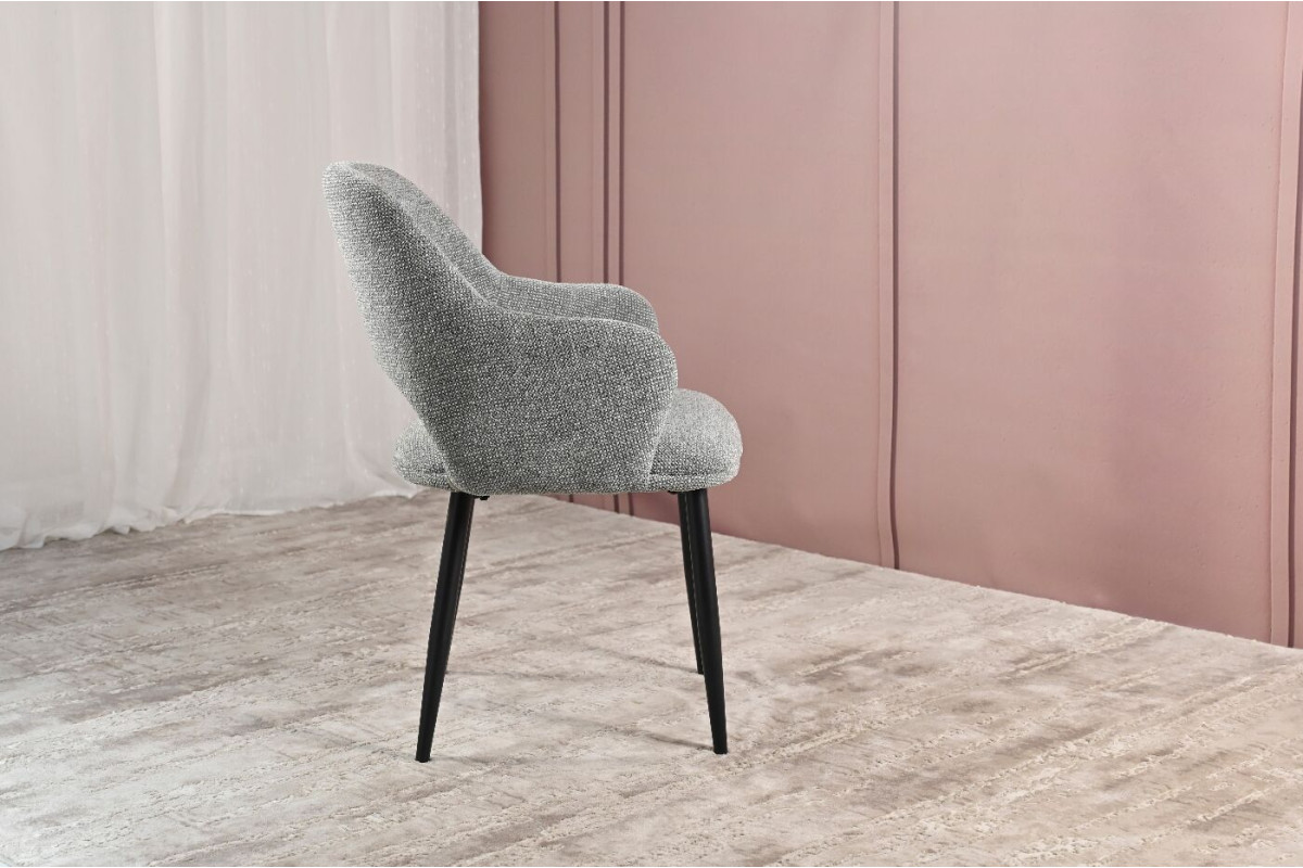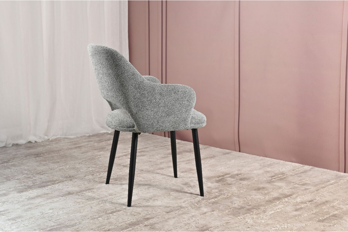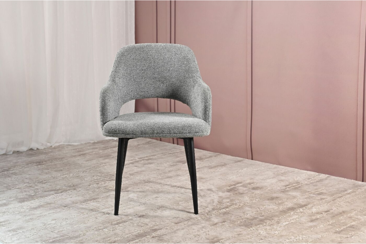 Стілець M-234 в кольорі холодний сірий + чорний — це елегантне поєднання сучасного стилю та максимального комфорту. Холодний сірий відтінок надає йому витонченості та спокою, а чорні елементи металевої основи додають виробу динамічності та сучасного вигляду. Оббивка з фактурної тканини не лише приємна на дотик, а й додає стільцю естетичної привабливості. Ширина сидіння забезпечуэ комфорт навіть при тривалому використанні, а зручні підлокітники додають додаткової підтримки та зручності. Металева основа, пофарбована в елегантний чорний колір, гарантує стійкість та надійність конструкції. Стілець M-234 стане чудовим доповненням для вашої вітальні, кабінету чи робочого простору, додаючи інтер'єру сучасного шарму та комфорту.