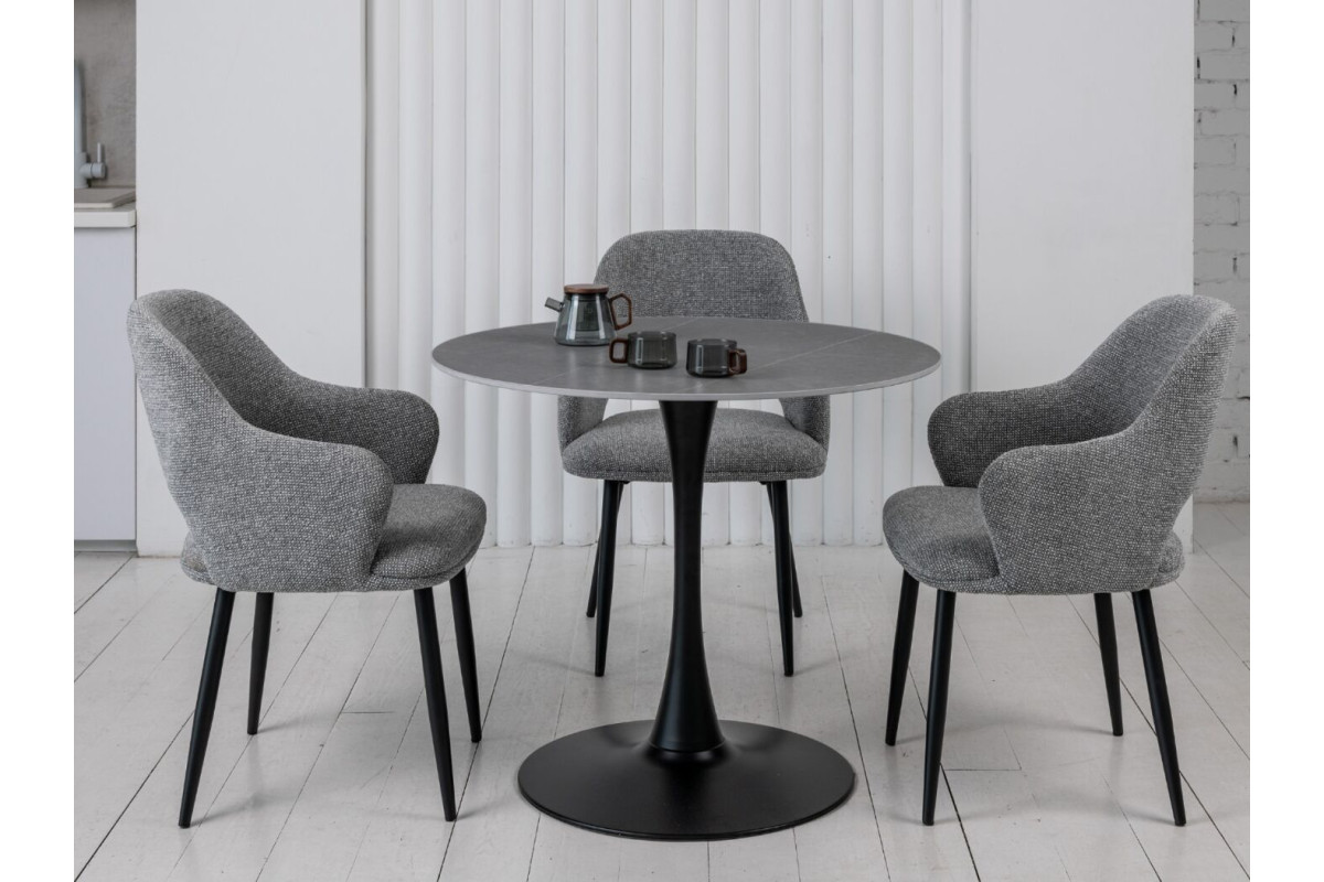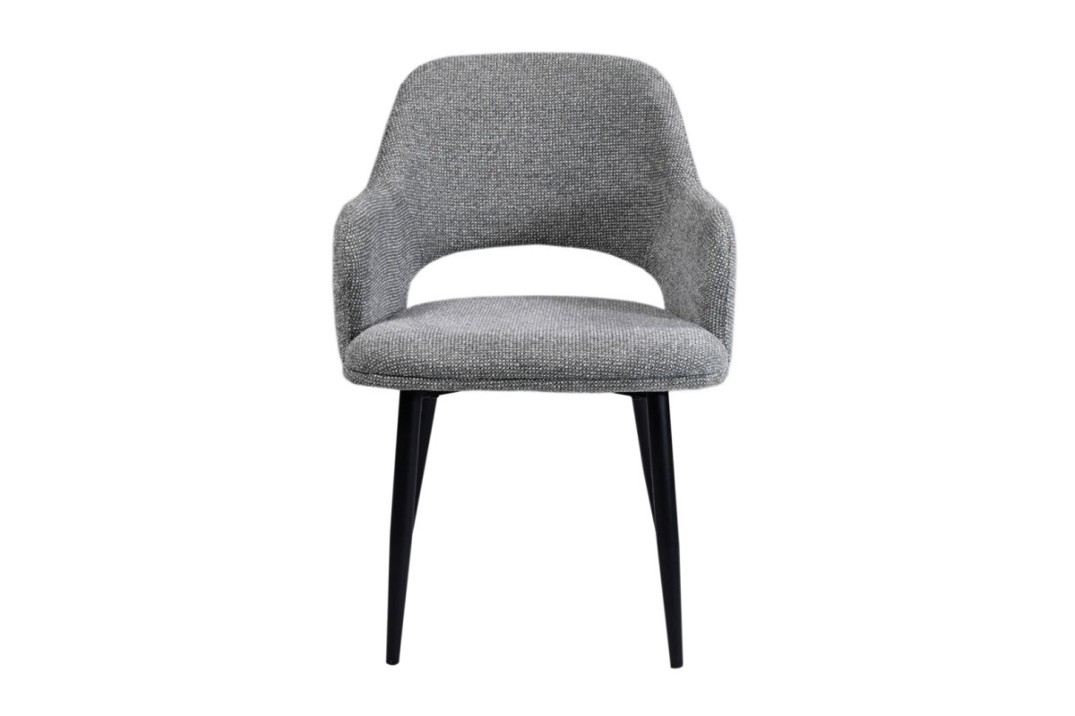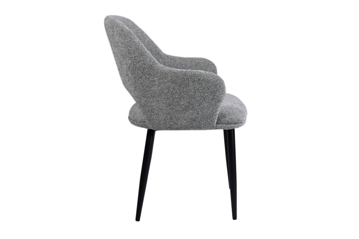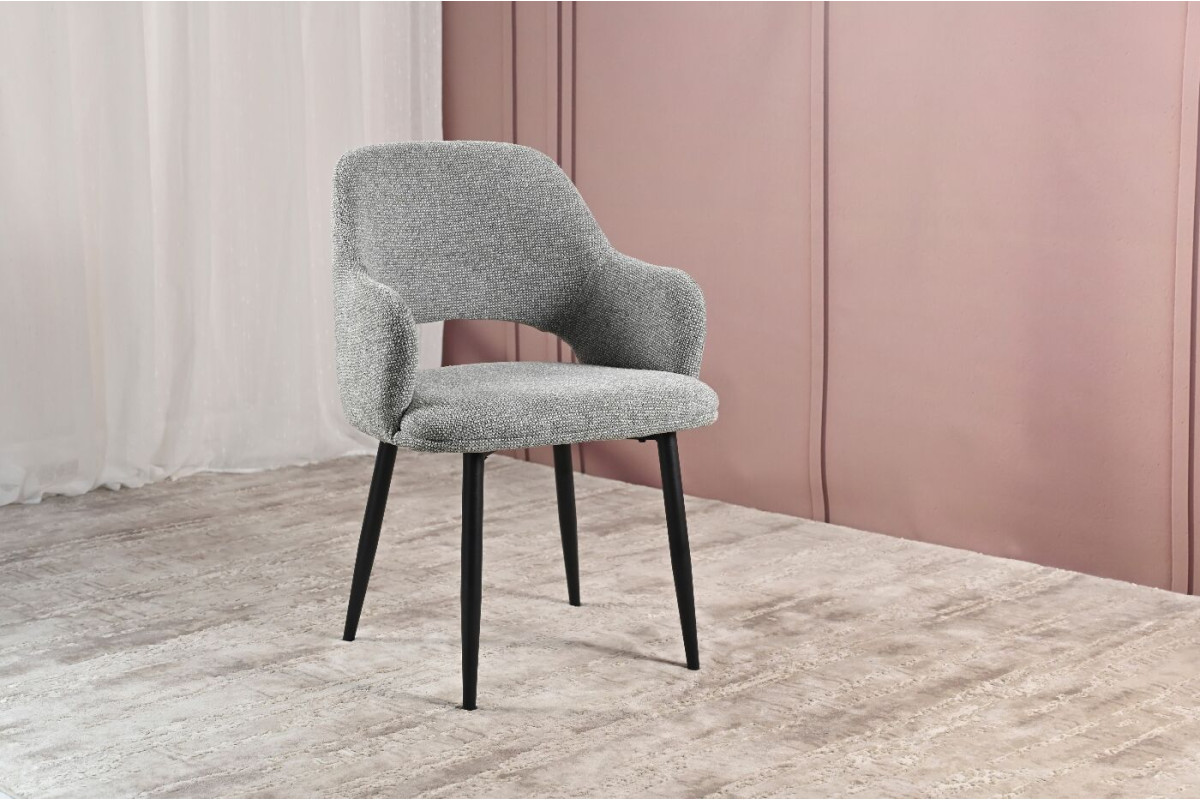 Стілець M-234 в кольорі холодний сірий + чорний — це елегантне поєднання сучасного стилю та максимального комфорту. Холодний сірий відтінок надає йому витонченості та спокою, а чорні елементи металевої основи додають виробу динамічності та сучасного вигляду. Оббивка з фактурної тканини не лише приємна на дотик, а й додає стільцю естетичної привабливості. Ширина сидіння забезпечуэ комфорт навіть при тривалому використанні, а зручні підлокітники додають додаткової підтримки та зручності. Металева основа, пофарбована в елегантний чорний колір, гарантує стійкість та надійність конструкції. Стілець M-234 стане чудовим доповненням для вашої вітальні, кабінету чи робочого простору, додаючи інтер'єру сучасного шарму та комфорту.