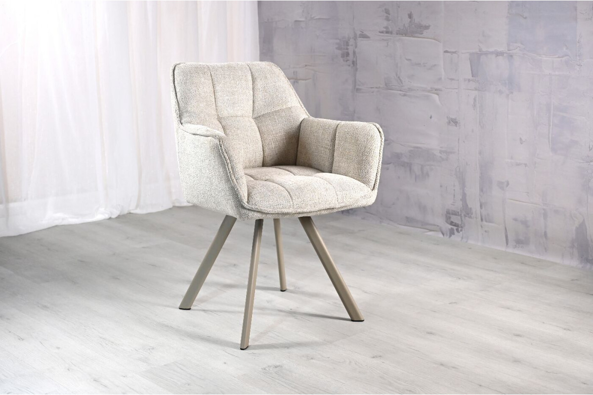 Стілець M-235 — це сучасна інтерпретація затишку та елегантності. Оббитий фактурною тканиною у відтінку папірус, він виглядає легко й благородно, додаючи світла та гармонії простору. М’яка текстура приємна на дотик, а завдяки широкому сидінню та підлокітникам, модель дарує максимальний комфорт під час тривалого сидіння. Фарбована металева основа кольору капучино створює м’який візуальний контраст і додає тепла інтер’єру. Стілець ідеально пасує до сучасних, скандинавських або неокласичних стилів, підкреслюючи природність і витонченість оформлення.