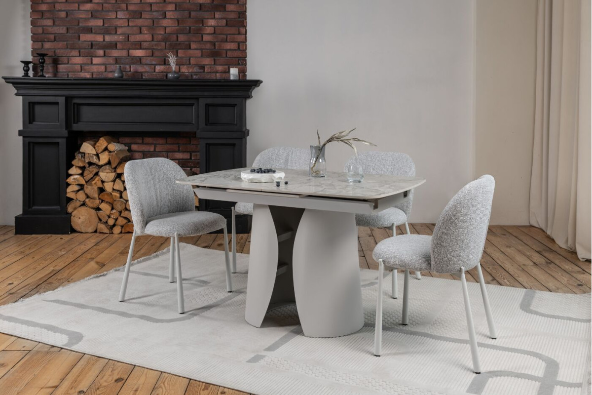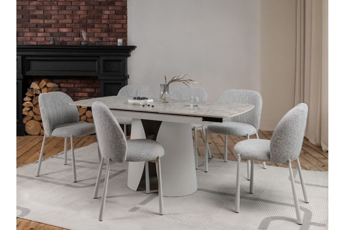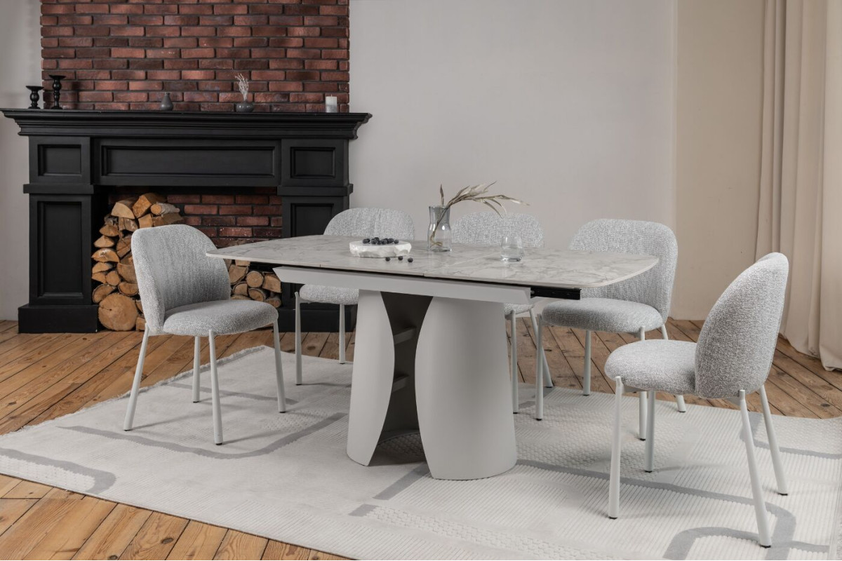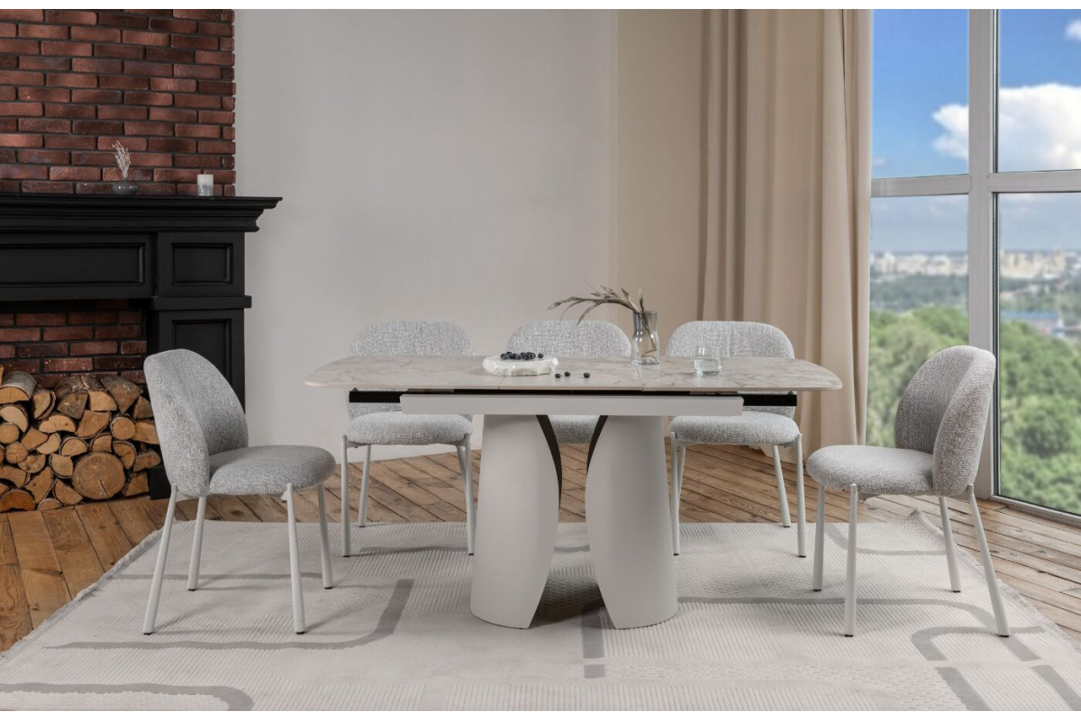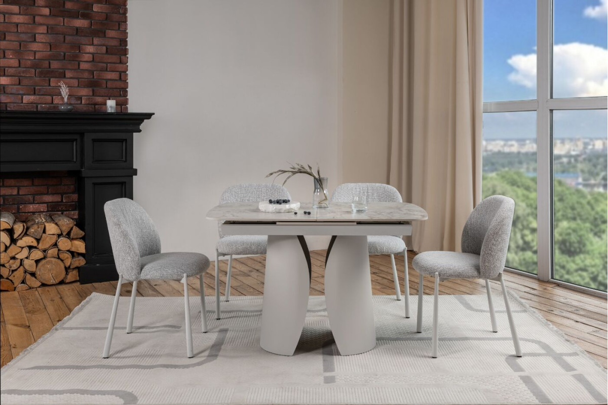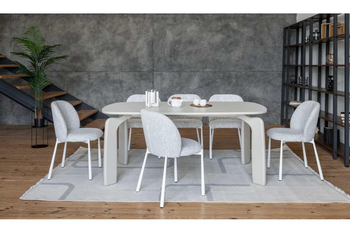 Вишуканий у своїй простоті, стілець M-238 у кольорі \"клауд\" — це влучне втілення мінімалізму з характером. Його м’яка оббивка з модної тканини букле нагадує хмару — приємна на дотик, вона створює затишну атмосферу та візуальну м’якість. Колір \"клауд\" — це універсальний світлий відтінок із легким натяком на теплоту, який чудово поєднується як з нейтральними, так і з яскравими інтер’єрними акцентами. Біла металева основа додає конструкції легкості, водночас забезпечуючи стабільність та витриманість у кожному русі. Стілець не просто зручний — він про комфорт у деталях: правильна висота сидіння, продумана глибина та оптимальна ширина створюють відчуття підтримки і невимушеного релаксу.