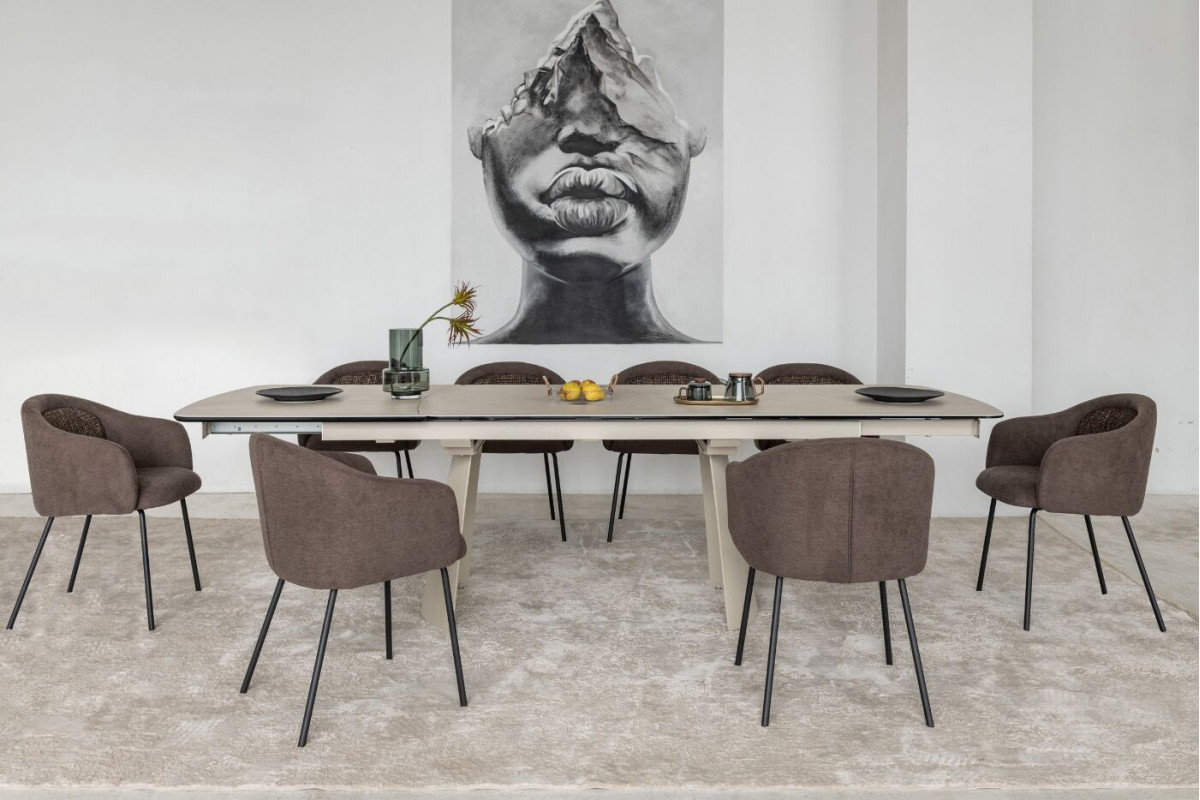 Стілець M-242 шоколадний + чорний — стильний та комфортний варіант для дому чи робочого простору. Глибокий шоколадний відтінок оббивки гармонійно поєднується з чорними деталями, створюючи теплий і сучасний образ, який легко вписується у будь-який інтер’єр. М’яка оббивка з шенілу приємна на дотик і забезпечує зручність навіть під час тривалого сидіння. Підлокітники додають додаткової підтримки, а фарбована металева основа гарантує надійність та стійкість конструкції.