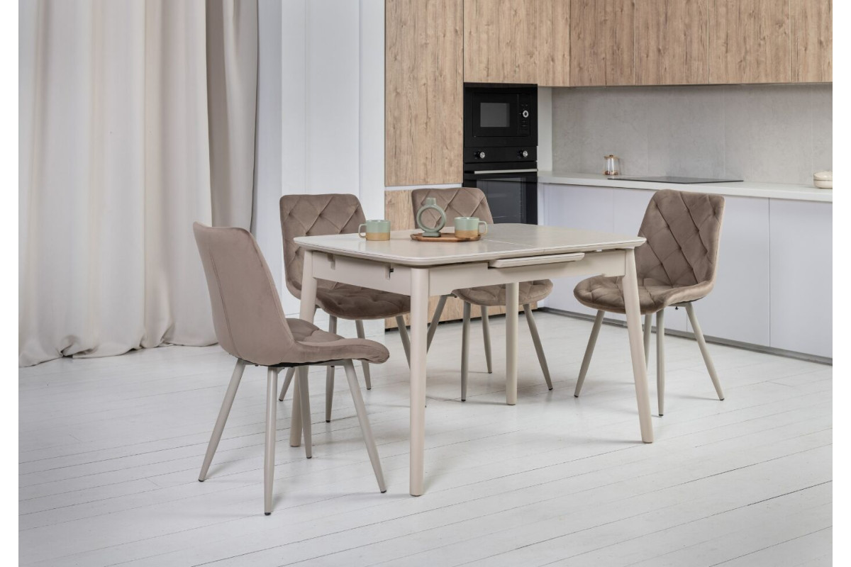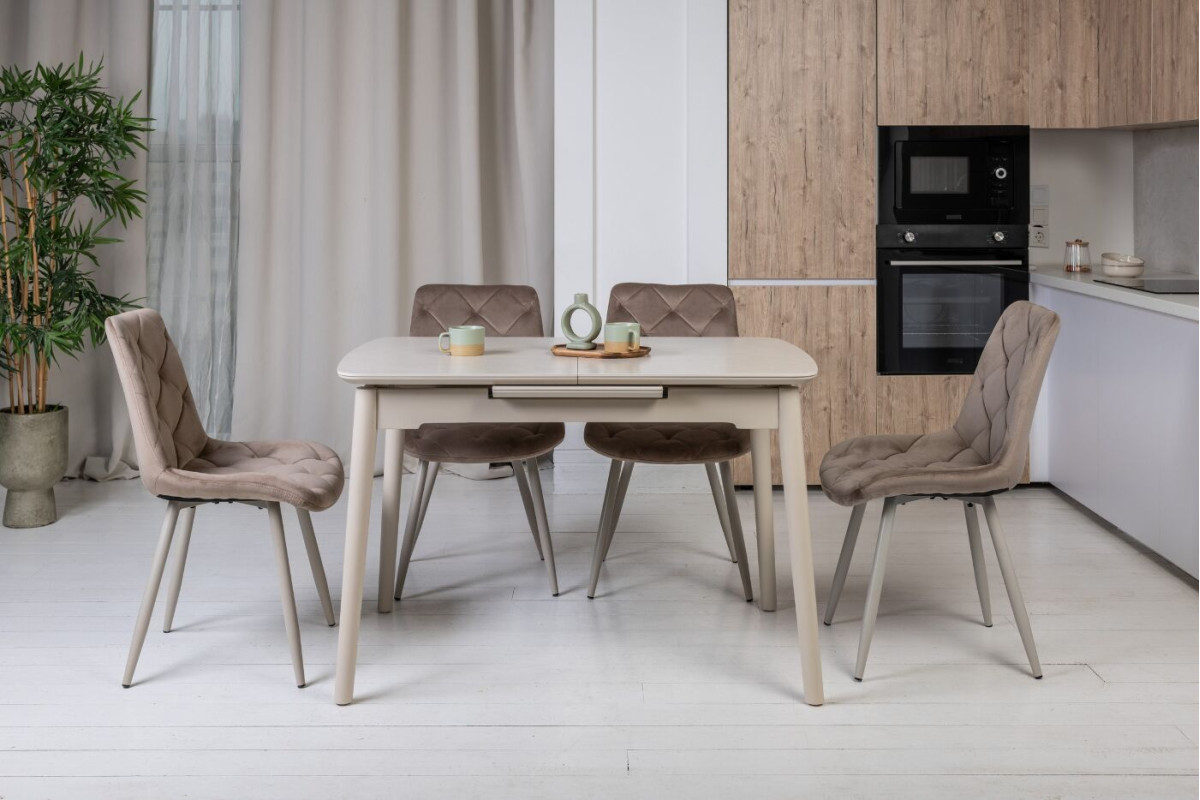 Стілець M-45 капучино велюр + капучино вирізняється лаконічним дизайном і практичністю. М’яка велюрова оббивка у теплому відтінку капучино додає комфорту та виглядає сучасно. Стійкий каркас, пофарбований у тон оббивки, забезпечує довговічність і гармонійний вигляд. Ця модель добре впишеться в інтер’єр кухні, їдальні або вітальні, додаючи простору тепла й затишку, зберігаючи при цьому нейтральну естетику.