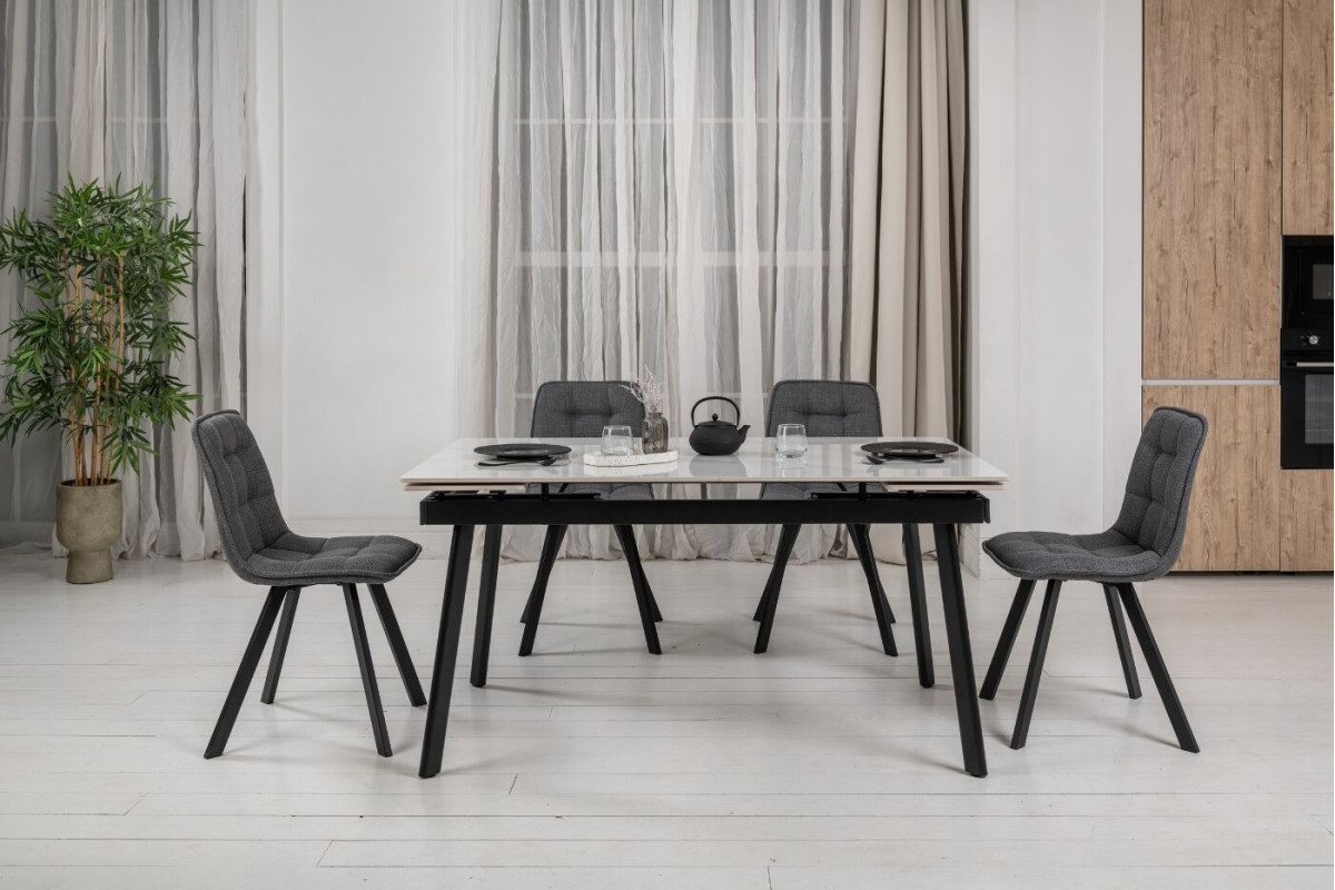 Стілець M-70 у сірому кольорі — це поєднання сучасного дизайну та функціональності. Його обивка з тканини має стильний сірий відтінок, який надає стільцю елегантний і універсальний вигляд. Сірий колір легко інтегрується в різні інтер'єри, доповнюючи будь-які кольорові схеми та стилі, від класичних до сучасних. Тканина обивки приємна на дотик і забезпечує комфорт під час сидіння. Вона стійка до зношування і легка в догляді, що робить стілець довговічним і зручним у використанні. Чорна металева основа додає стільцю сучасного вигляду і забезпечує його стабільність. Контраст між сірим сидінням і чорними ніжками створює стильний і гармонійний образ. Завдяки своїм компактним розмірам і сучасному дизайну, стілець M-70 добре підійде для різних приміщень, таких як кухня, їдальня чи вітальня. Він забезпечує комфортне сидіння і додає інтер'єру нотки сучасності.