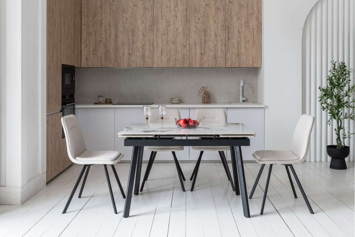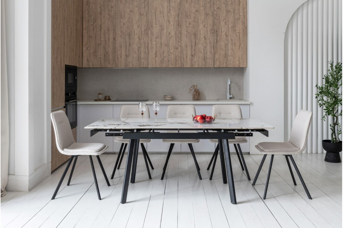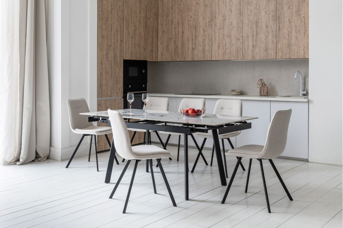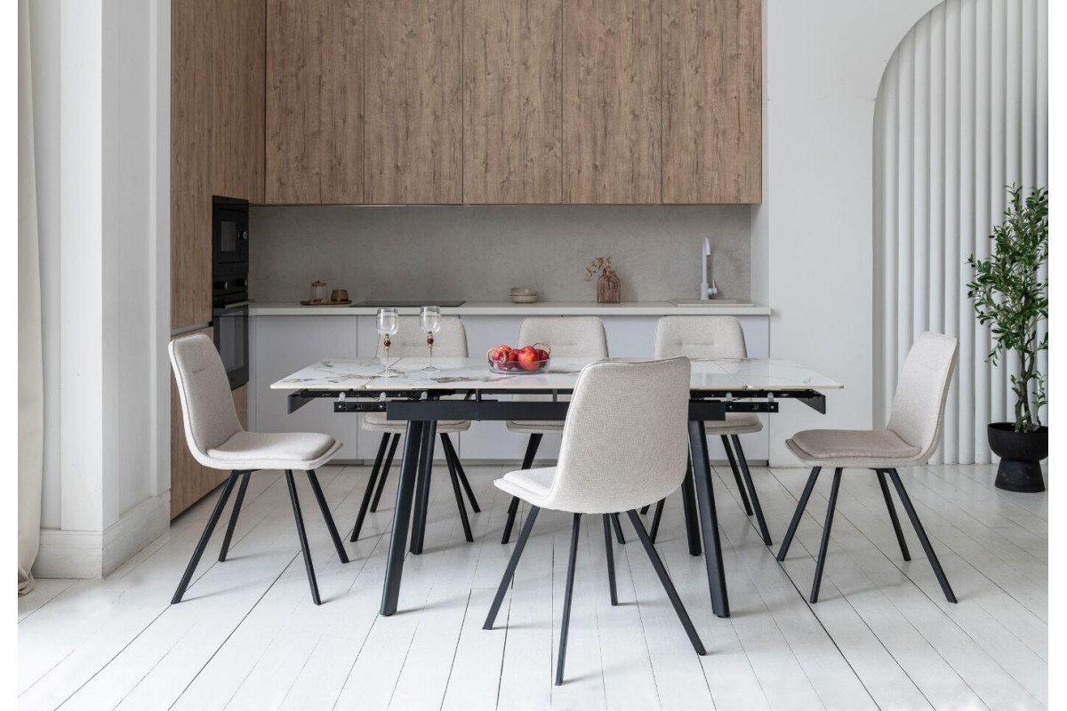 Цей стілець стане чудовим доповненням як до обідньої зони, так і до робочого місця, завдяки своїй універсальності та надійності. Поєднання кольорів айворі та чорного створює сучасний і елегантний вигляд, який легко вписується в будь-який інтер'єр, додаючи йому витонченості. Ширина сидіння (46 см) і глибина (55. 5 см) забезпечують достатній простір для комфортного сидіння. Висота до сидіння 49. 5 см є стандартною і підходить для більшості обідніх столів. Основу виготовлено з фарбованого металу, що гарантує надійність і стійкість стільця. Фарбування також захищає метал від корозії та пошкоджень.