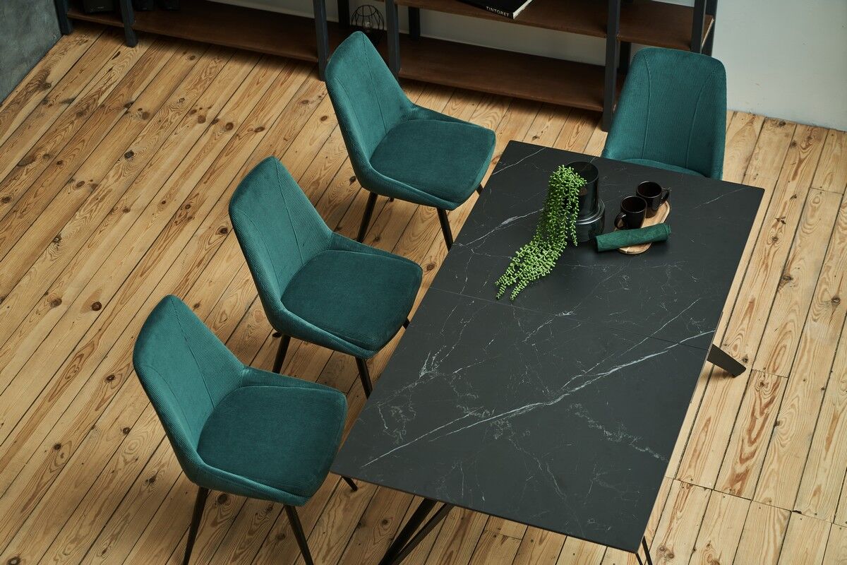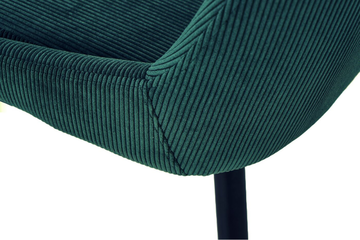 Смарагдовий відтінок оббивки надає стільцю розкішний і яскравий вигляд. Цей насичений колір ідеально підходить для інтер’єрів, де потрібно додати акцент і глибину. Матеріал оббивки: вельвет рубчик — це м'який, приємний на дотик матеріал із текстурованою поверхнею, який надає стільцю унікального й стильного вигляду. Вельвет відрізняється міцністю й довговічністю, а також легко чиститься. Широке сидіння (48,5 см) і максимальна глибина (59 см) забезпечують зручність сидіння. Висота сидіння (49 см) відповідає стандартам ергономіки, що робить стілець комфортним для тривалого сидіння. Цей стілець — чудовий вибір для сучасних кухонь, обідніх зон або віталень. Він поєднує стиль і функціональність, створюючи затишок і зручність у використанні.