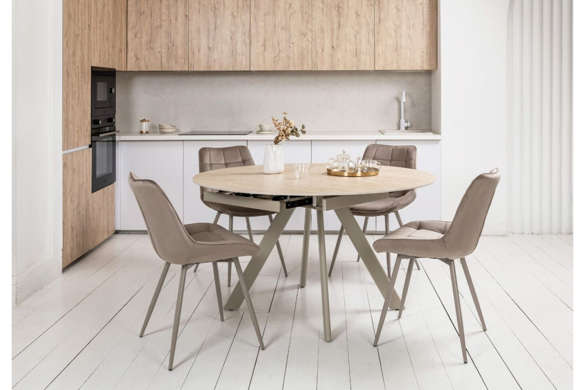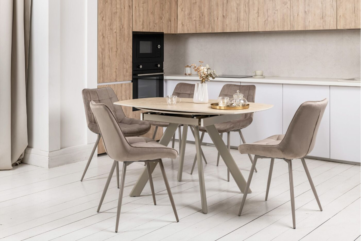 Стілець N-45 у кольорі \"капучино велюр\" — це гармонійне поєднання стилю, комфорту та практичності. Його сидіння, обтягнуте ніжним велюром у теплом відтінку капучино, створює відчуття затишку та розкоші. М’яка текстура оббивки дарує комфорт і додає елегантності, роблячи стілець центральним акцентом будь-якого інтер’єру. Особливістю моделі є металеві ніжки, пофарбовані в колір капучино. Це рішення додає виробу цілісного вигляду, підкреслюючи його сучасний дизайн. Завдяки металевій основі стілець має чудову стійкість і довговічність, поєднуючи міцність із витонченим виглядом.