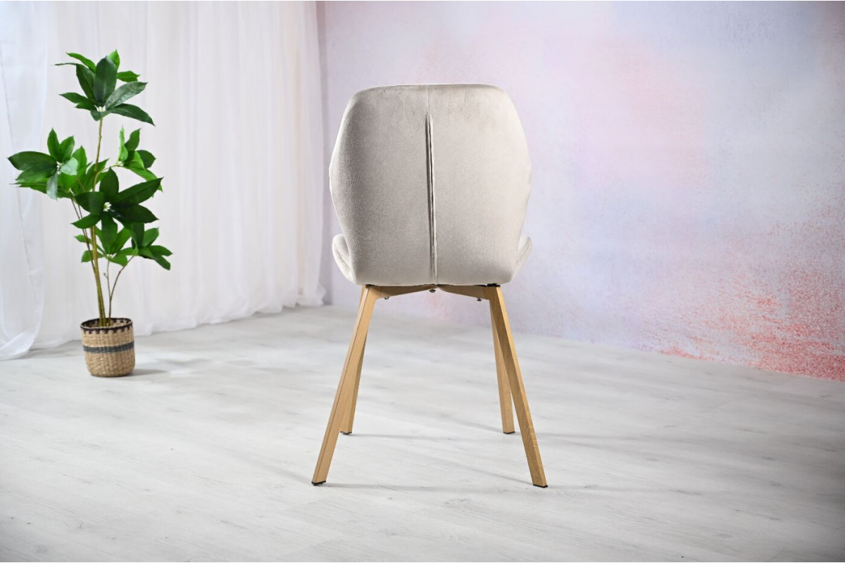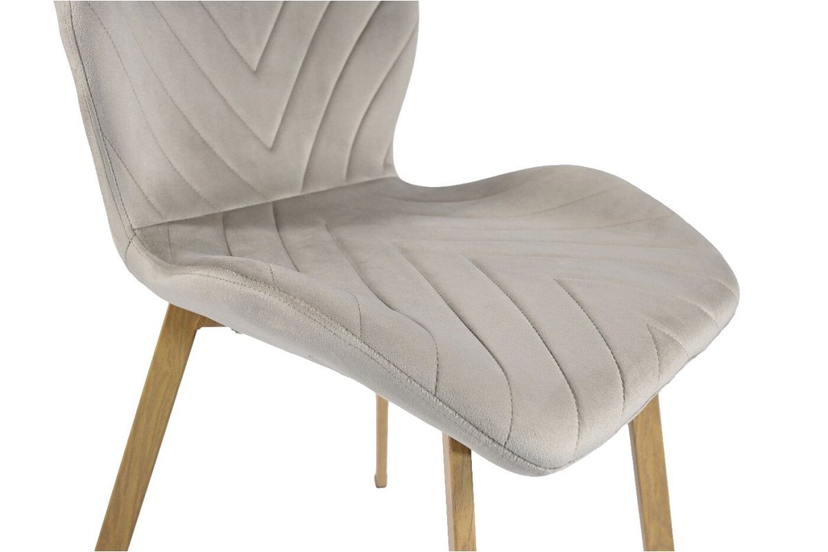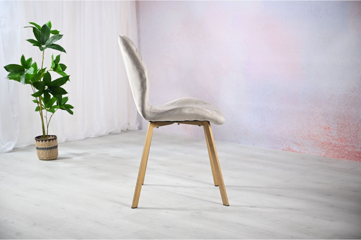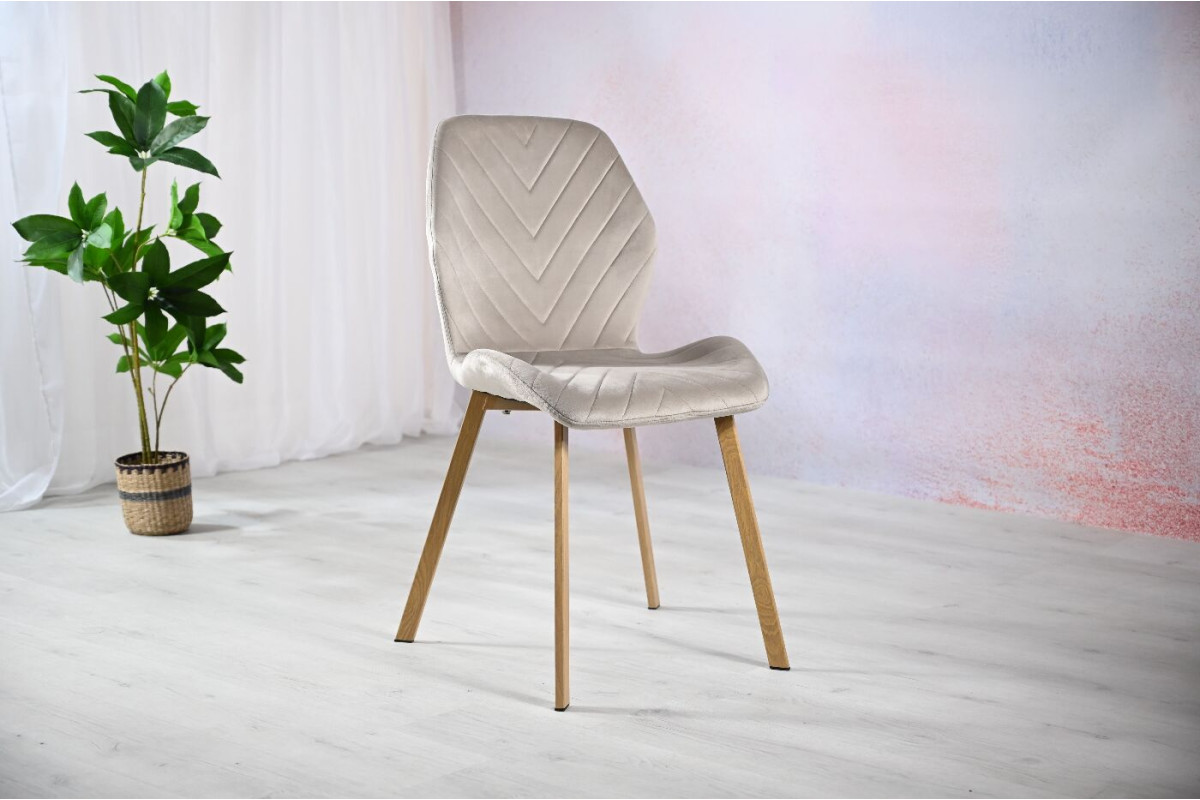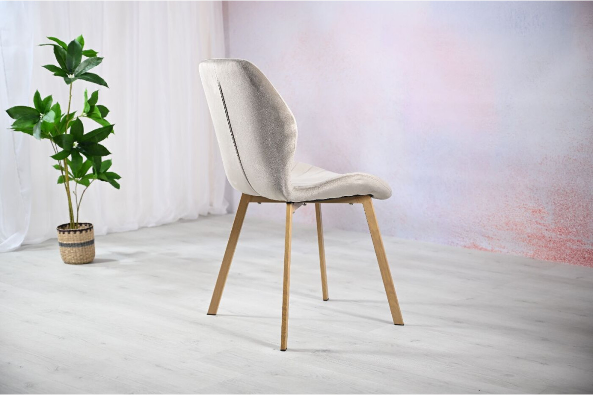 Стілець N-54 капучино велюр + дуб — це зразок елегантності й комфорту, який легко впишеться в інтер’єр сучасного дому. Відтінок капучино, який використано в оббивці з м’якого велюру, створює атмосферу тепла і затишку. Велюрова поверхня не лише додає вишуканості, але й приємна на дотик, що робить кожне сидіння комфортним та розслаблюючим. Основа стільця виготовлена з міцного фарбованого металу, що надає конструкції стабільності та витриманості, але при цьому не робить її громіздкою. Колір дуба, який використано у відтінках основи, додає природності й гармонії, що підкреслює сучасний, але водночас органічний характер цього стільця.