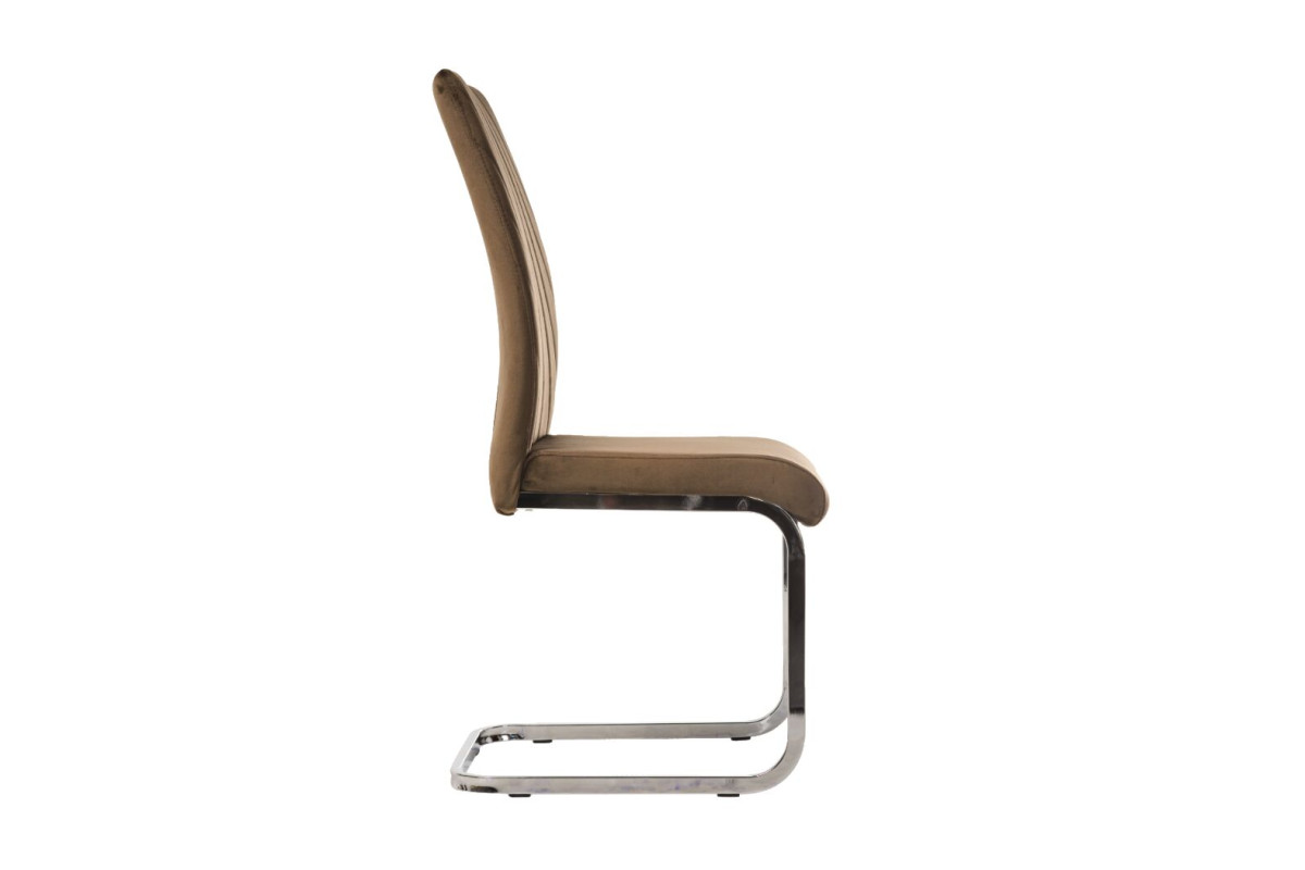 Стілець S-118 — це стильна модель з сучасним дизайном, яка поєднує естетику та комфорт. Його сидіння та спинка оббиті розкішним коричневим велюром, що додає тепла і м'якості в інтер'єр. Матеріал оббивки виглядає елегантно, забезпечуючи приємні тактильні відчуття та легкість у догляді. Основною особливістю стільця є його металева ніжка у формі літери «S». Ця конструкція не тільки виглядає сучасно і динамічно, але й забезпечує стійкість і витривалість. Форма бази робить стілець відмінним вибором для інтер'єрів у стилі модерн, лофт або хай-тек. Сидіння з плавним переходом у спинку створює ергономічну посадку, яка забезпечує комфорт навіть при тривалому використанні. Завдяки такому дизайну стілець стане не тільки функціональним елементом, але й стильним акцентом у вашому просторі.