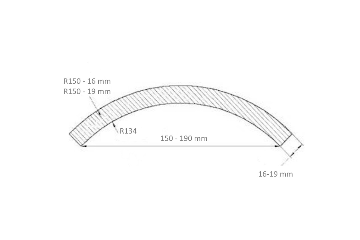 Радіусний МДФ фасад R150 зовнішній хорда 190 мм