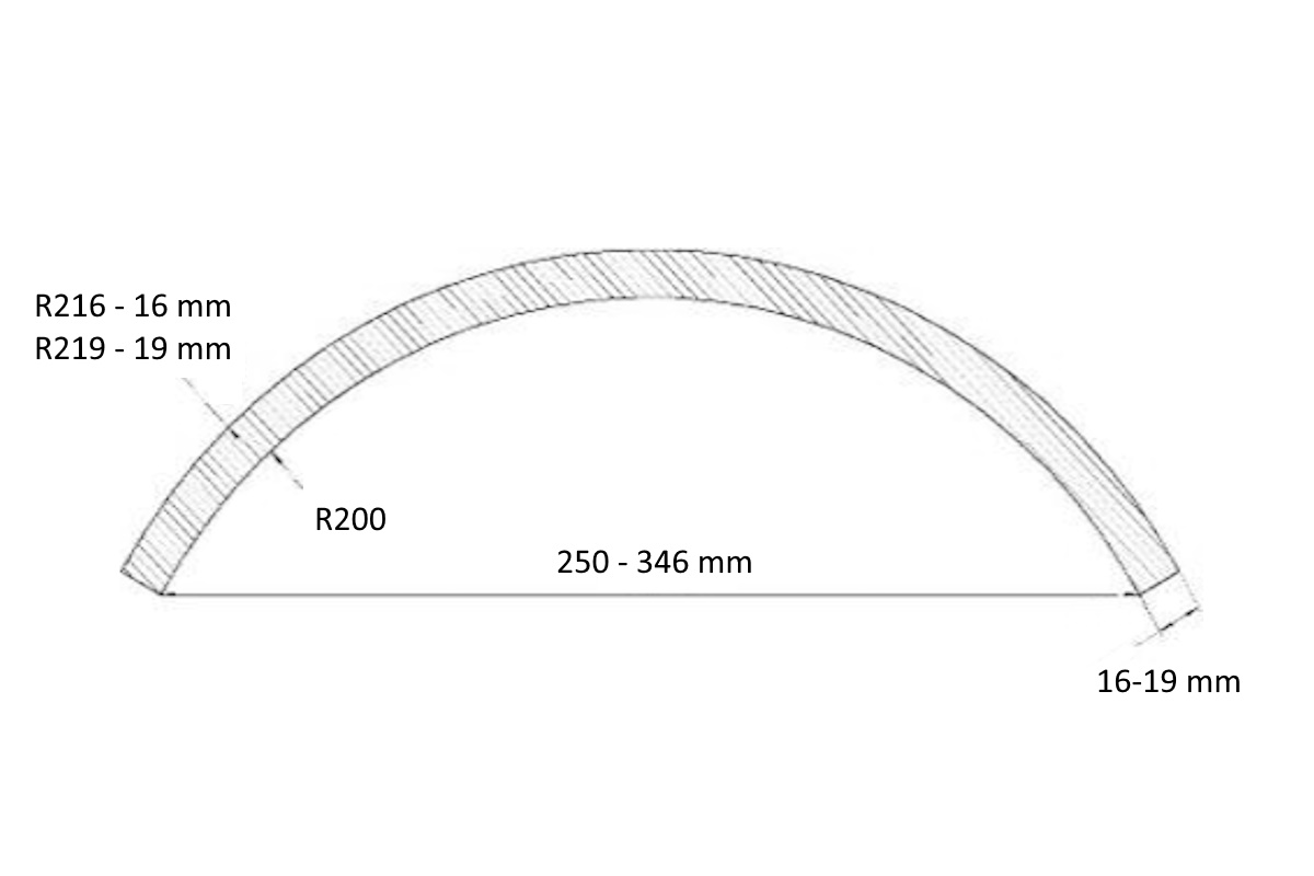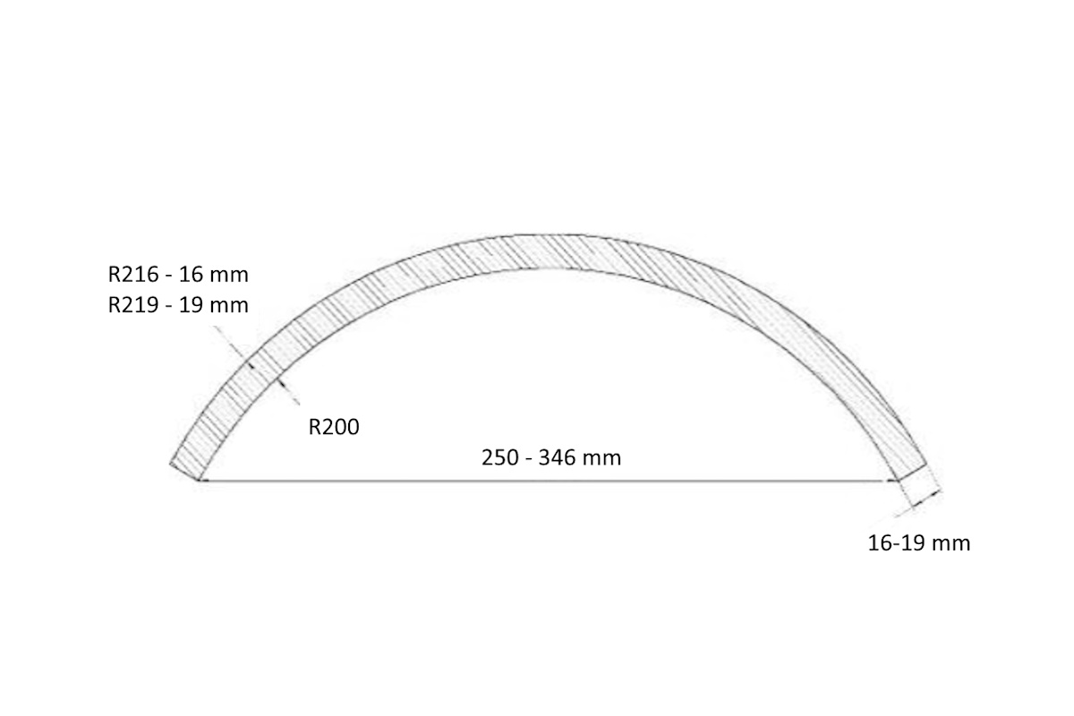 Радіусний МДФ фасад R200 зовнішній хорда 346 мм