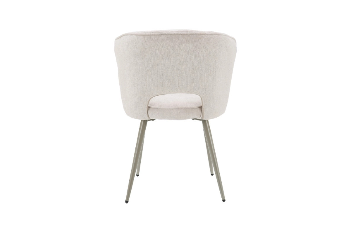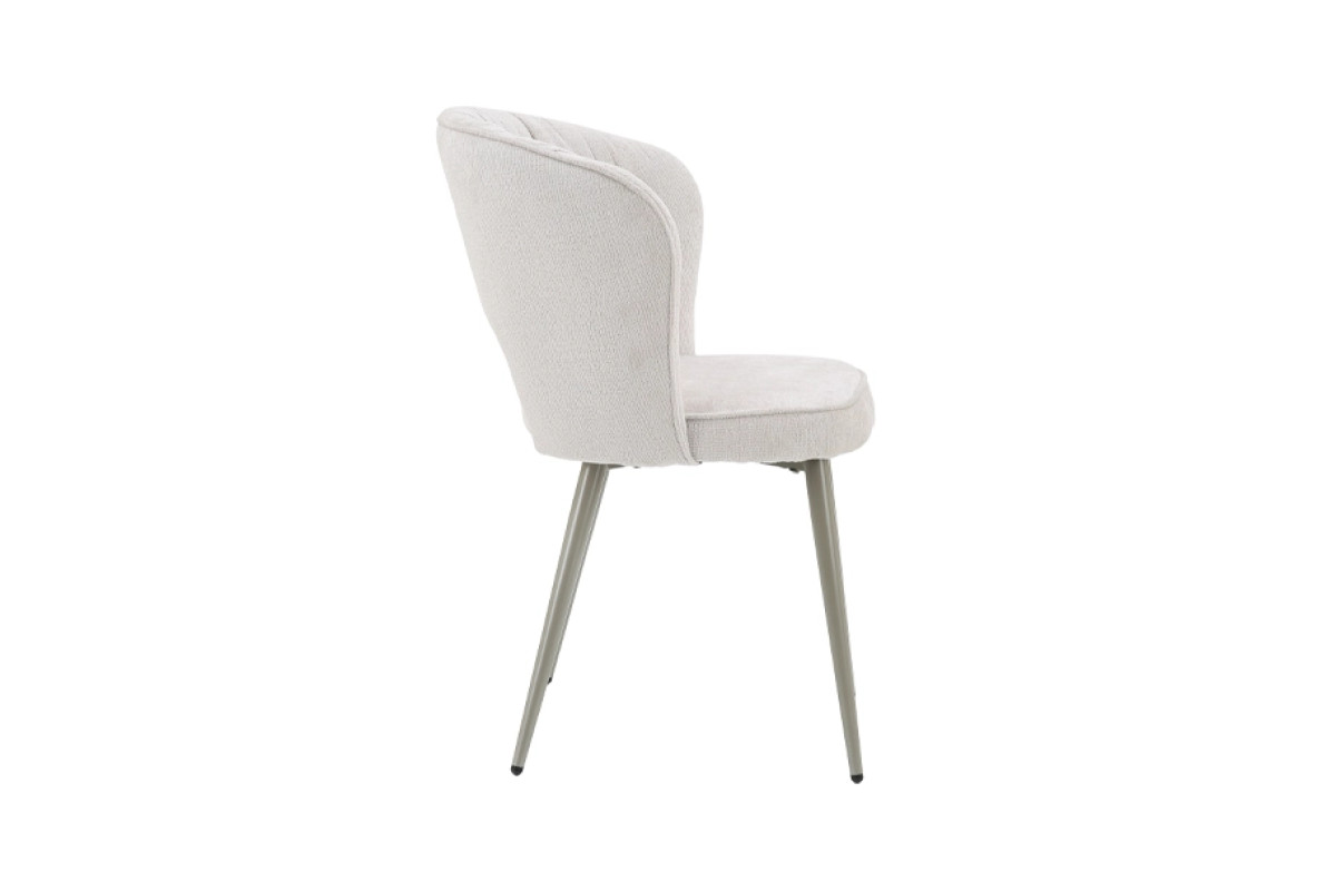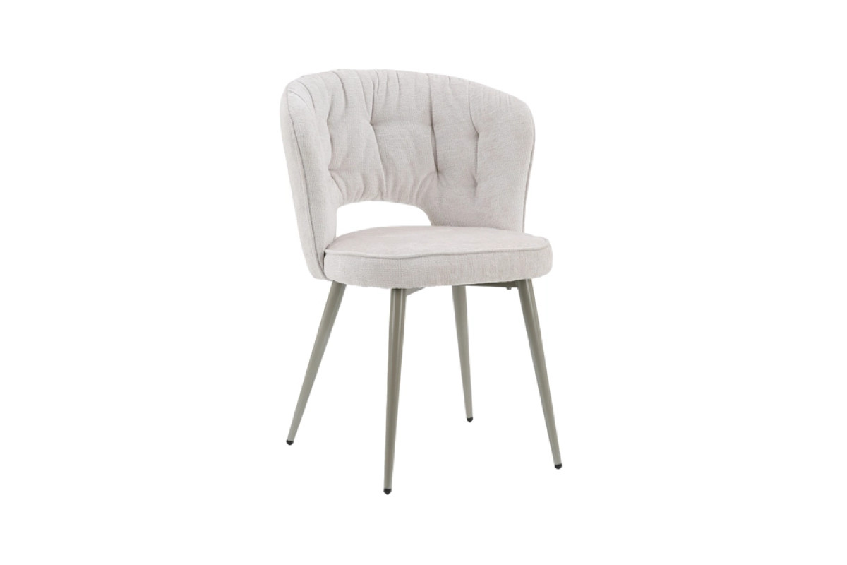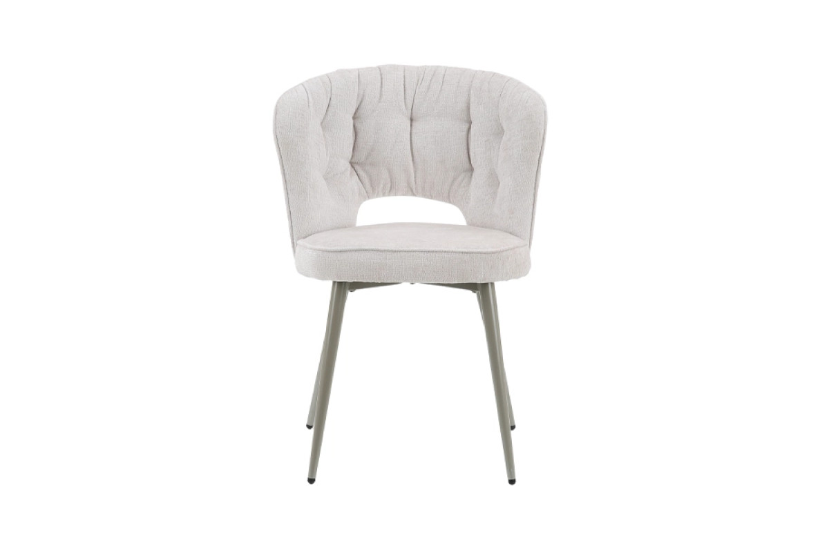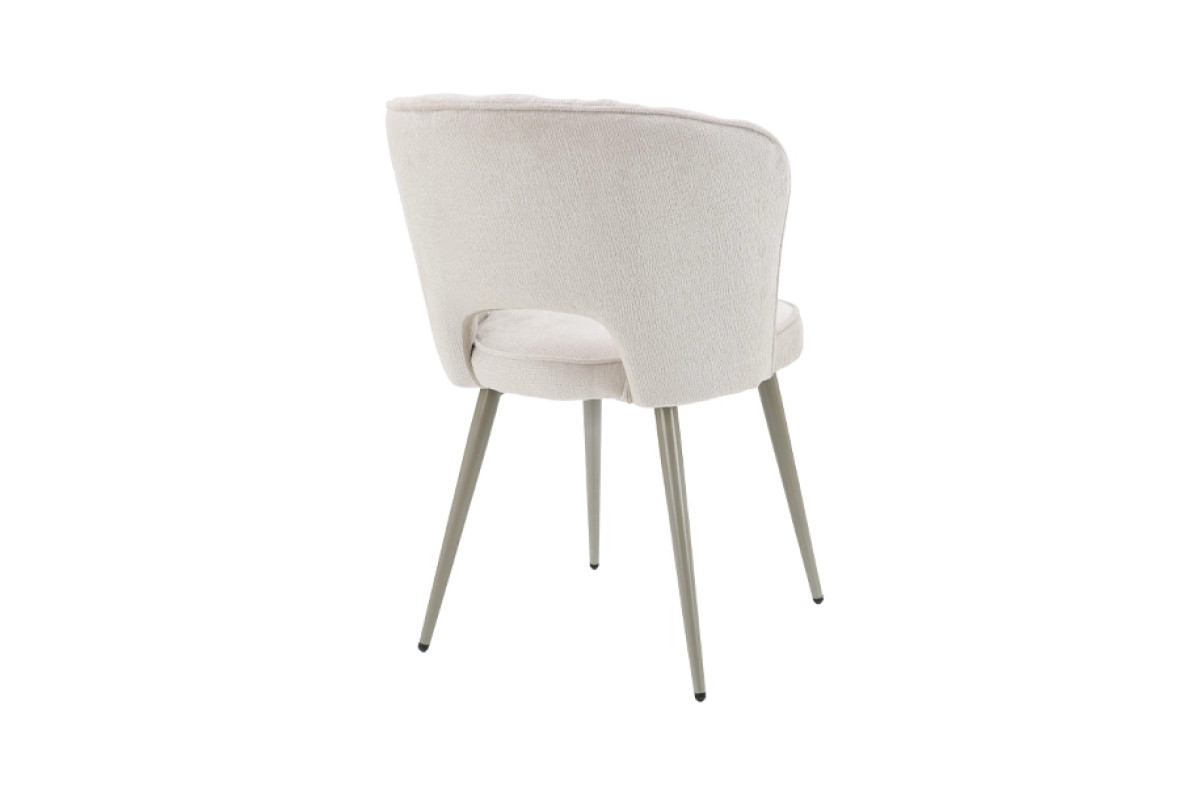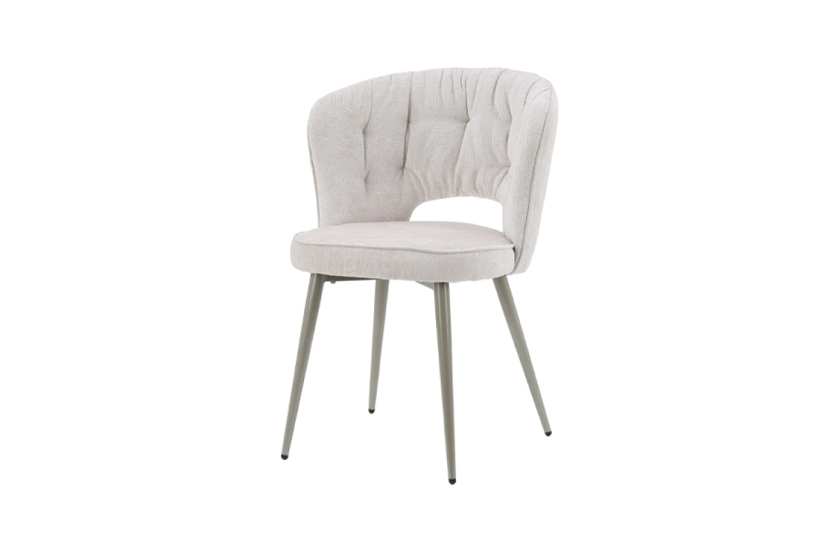 Сучасний кухонний стілець із м’якою посадкою та елегантною металевою опорою. Світла молочна оббивка в поєднанні з ніжками кольору шампань створює збалансований вигляд, який легко інтегрується в сучасні інтер’єри кухні або обідньої зони.