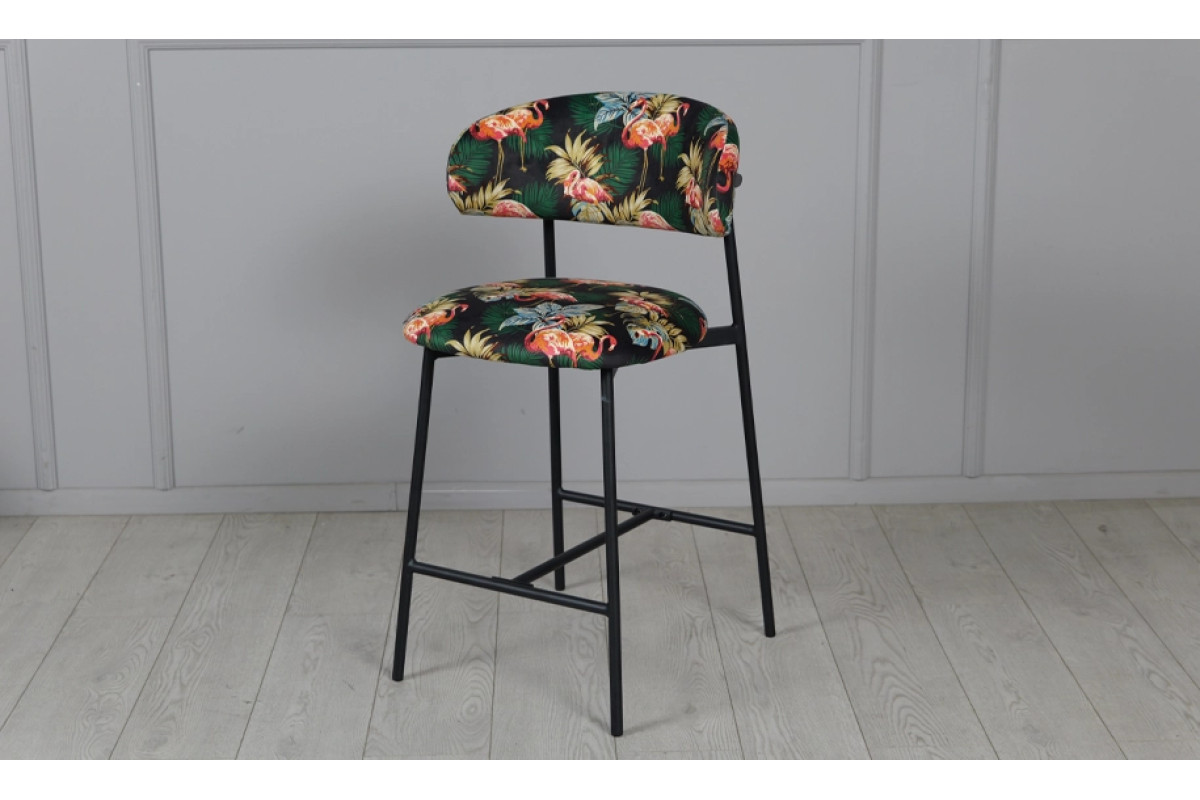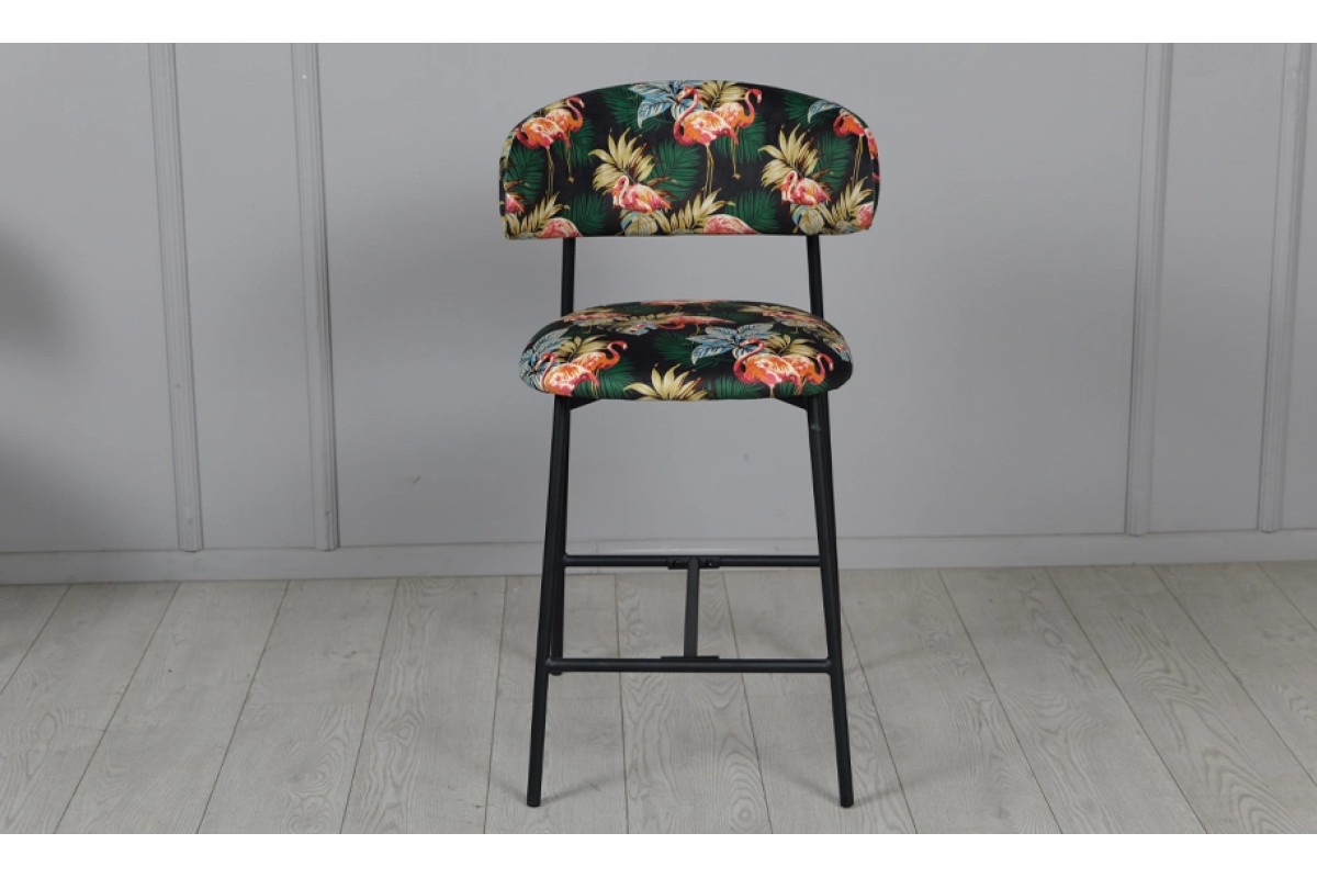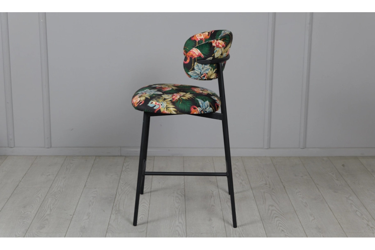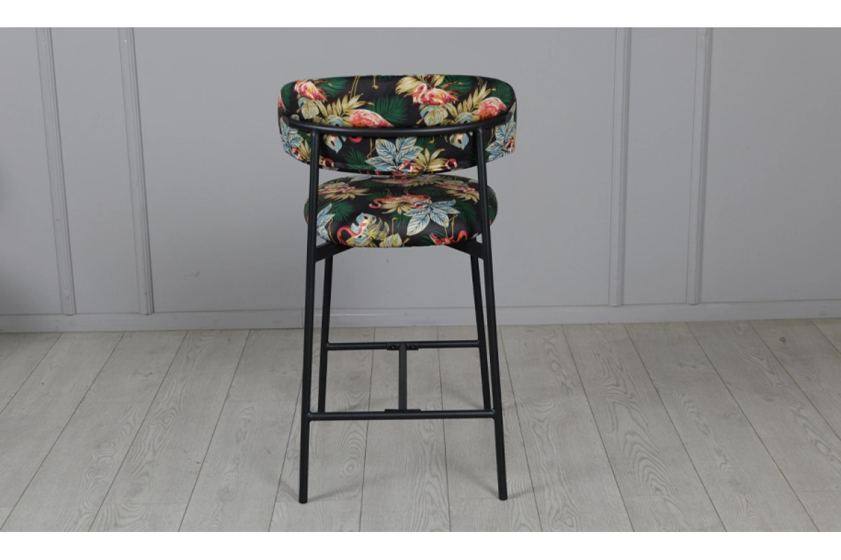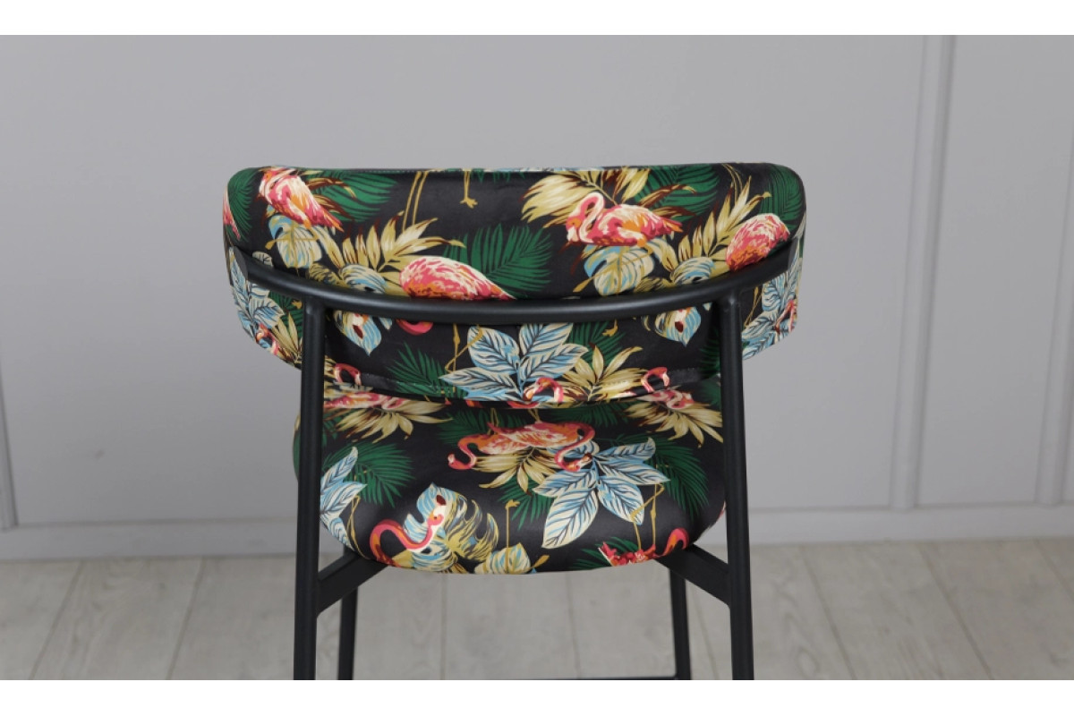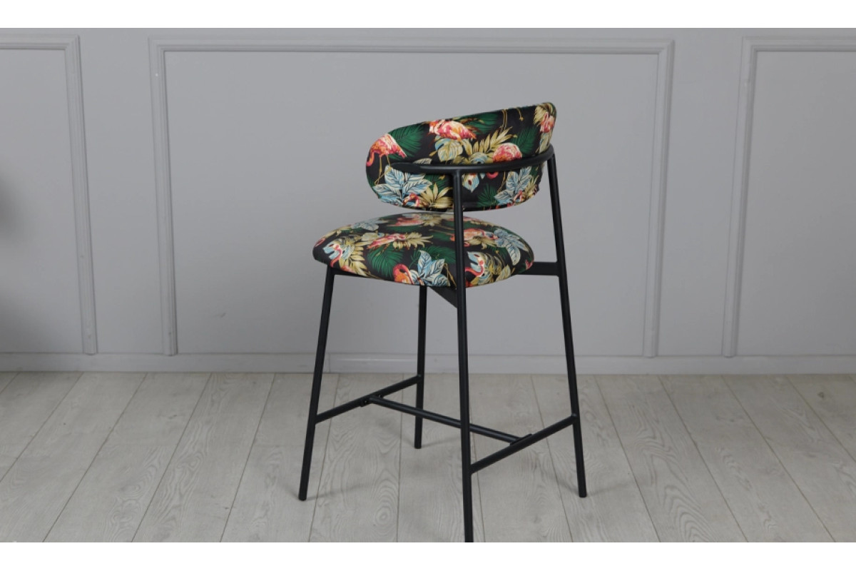 Напівбарний стілець Дакс поєднує дизайнерський підхід із практичністю. Темна палітра підкреслює елегантність, а яскравий тропічний візерунок додає інтер’єру індивідуальності. Модель органічно вписується у стилі modern, loft чи contemporary, стаючи головним акцентом у просторі.