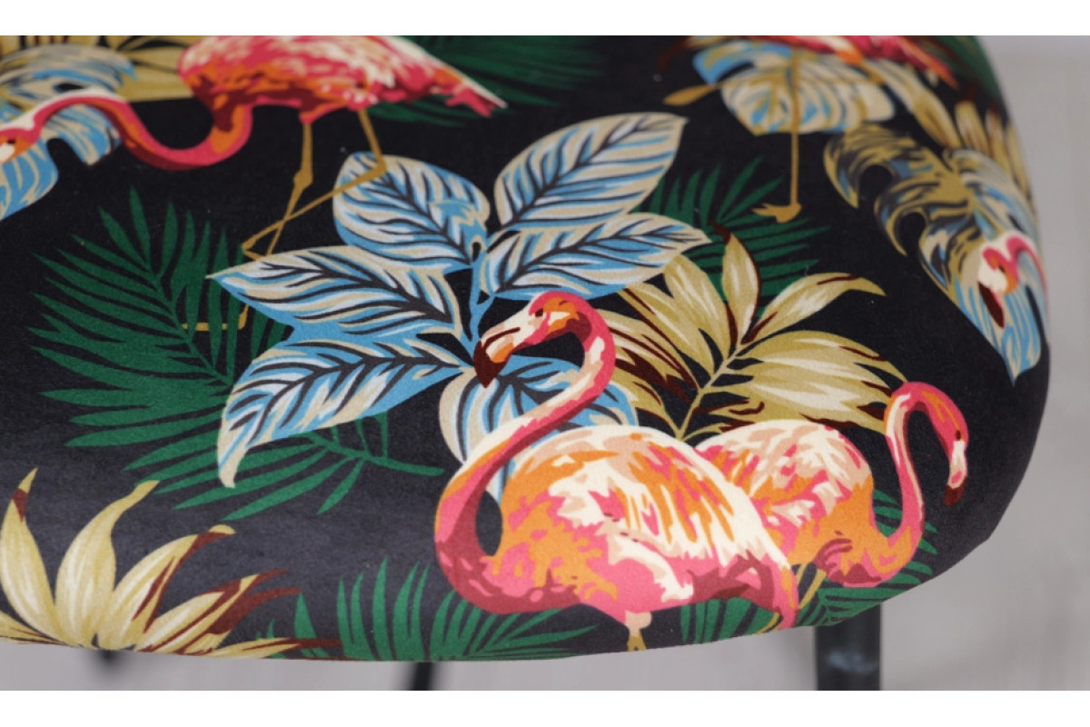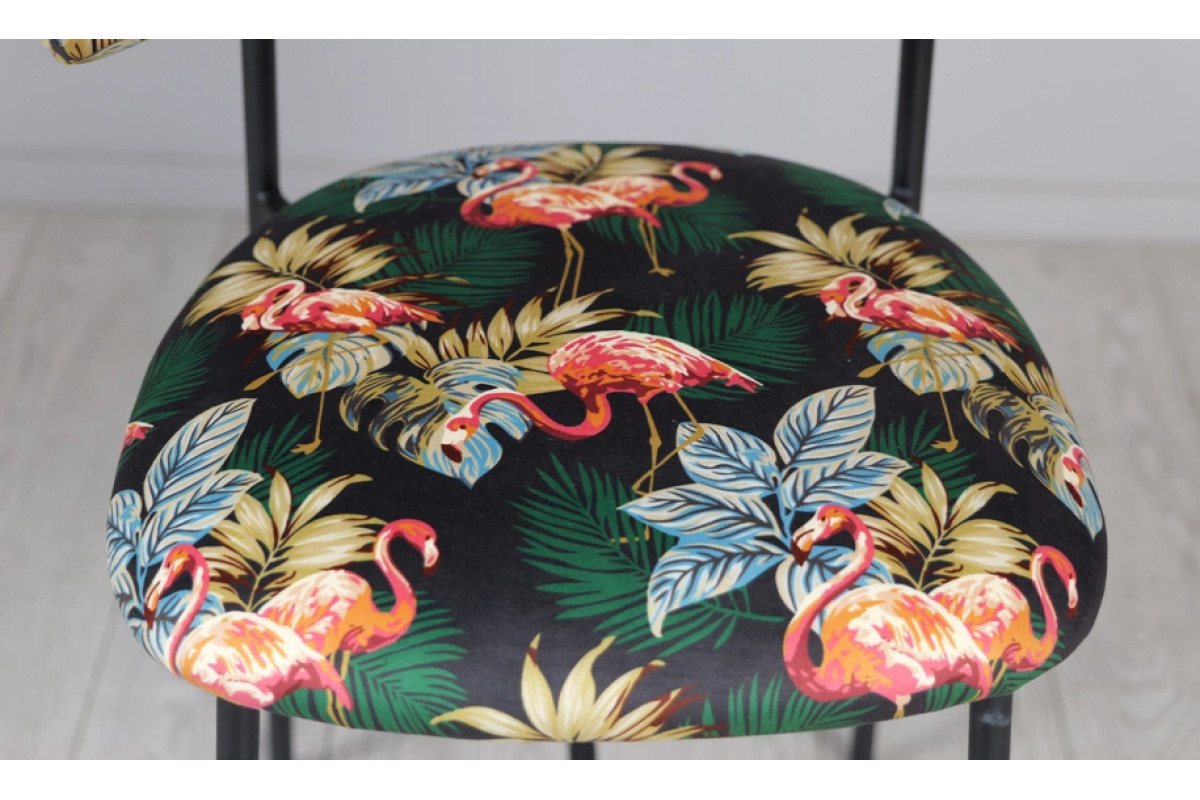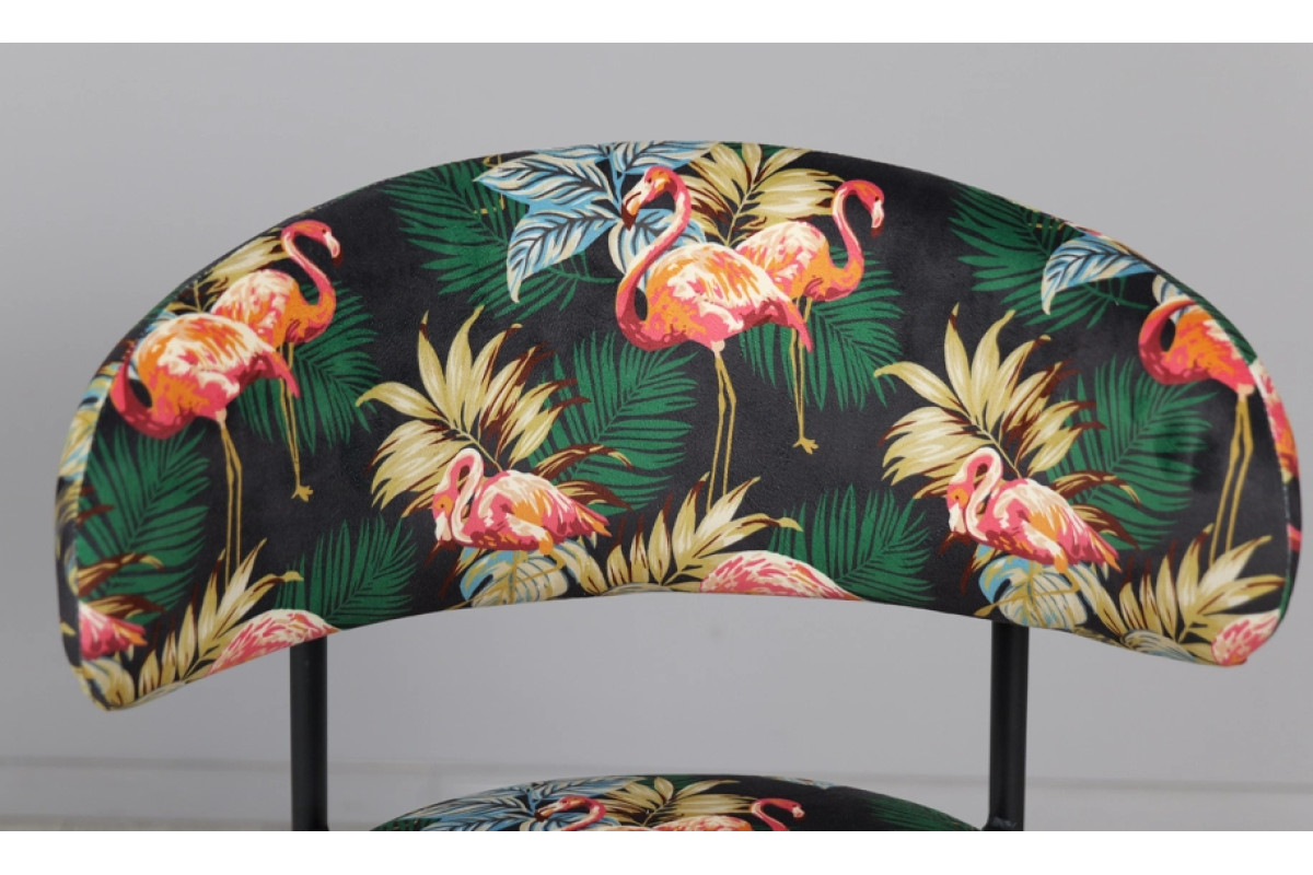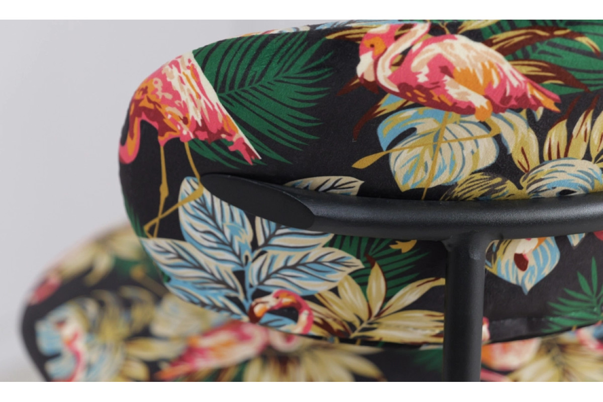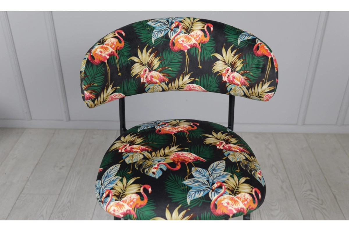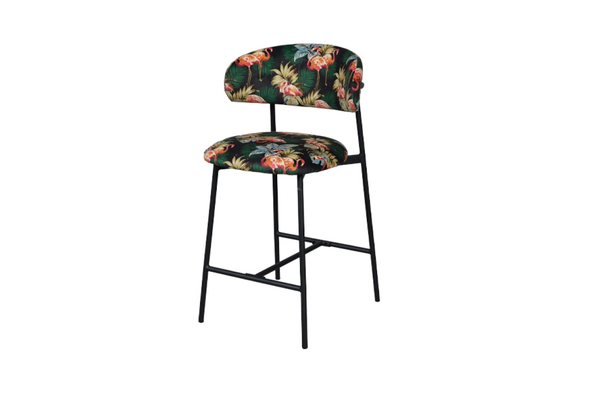 Напівбарний стілець Дакс поєднує дизайнерський підхід із практичністю. Темна палітра підкреслює елегантність, а яскравий тропічний візерунок додає інтер’єру індивідуальності. Модель органічно вписується у стилі modern, loft чи contemporary, стаючи головним акцентом у просторі.