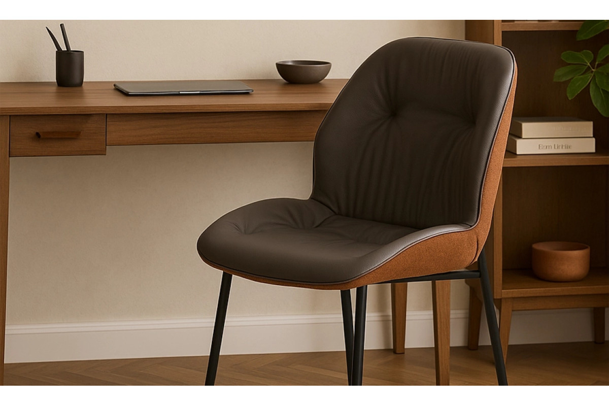 Стілець Девід у сіро-рудому поєднанні підкреслює сучасний характер інтер’єру завдяки контрасту відтінків.