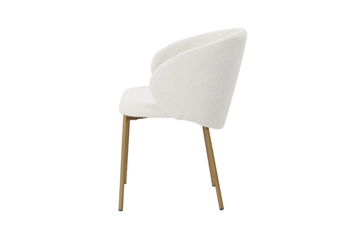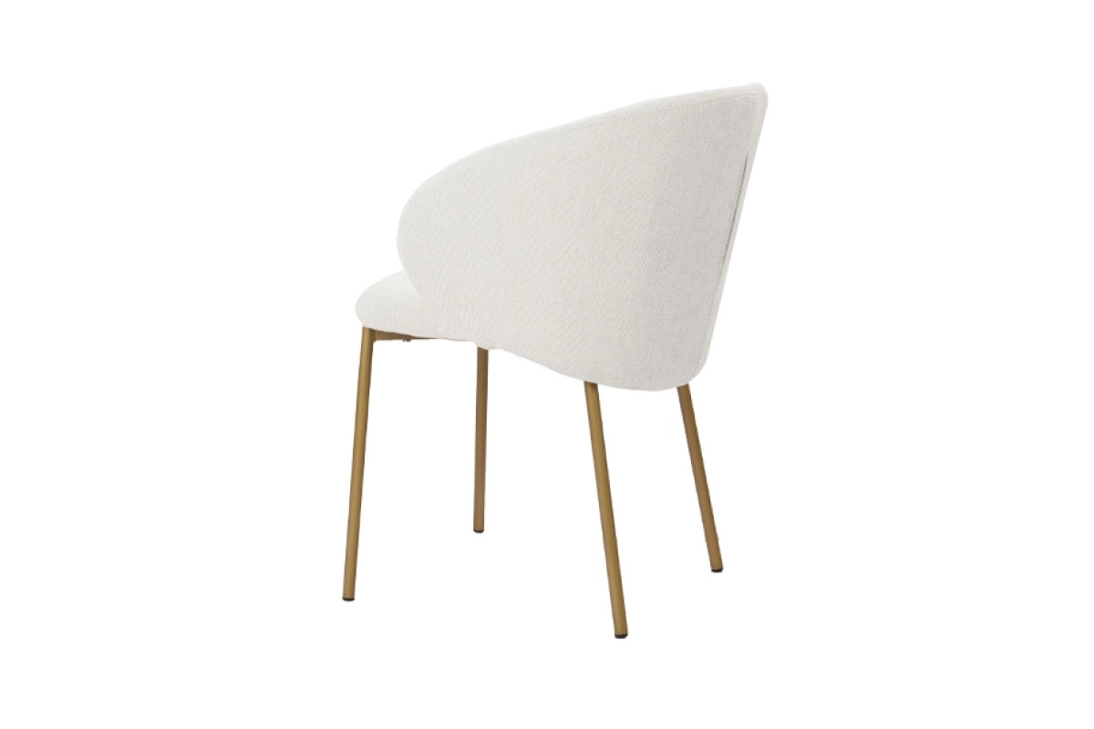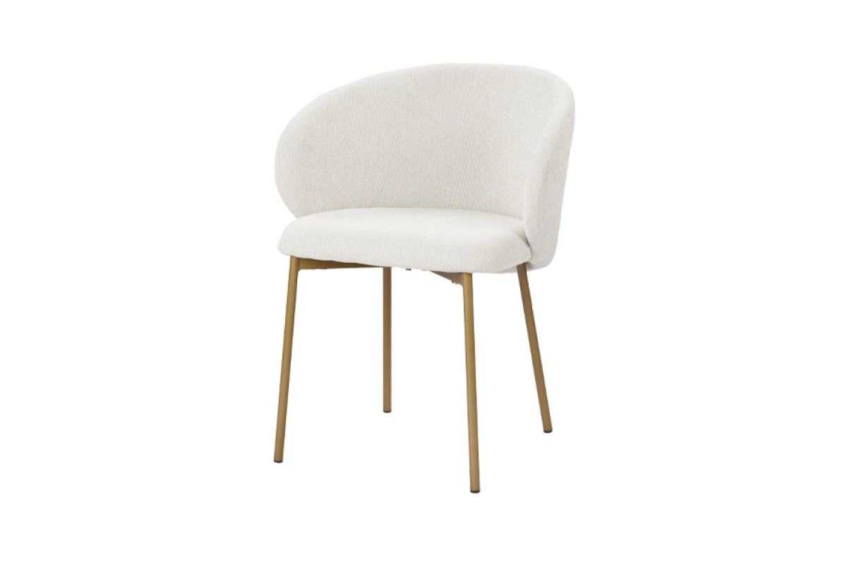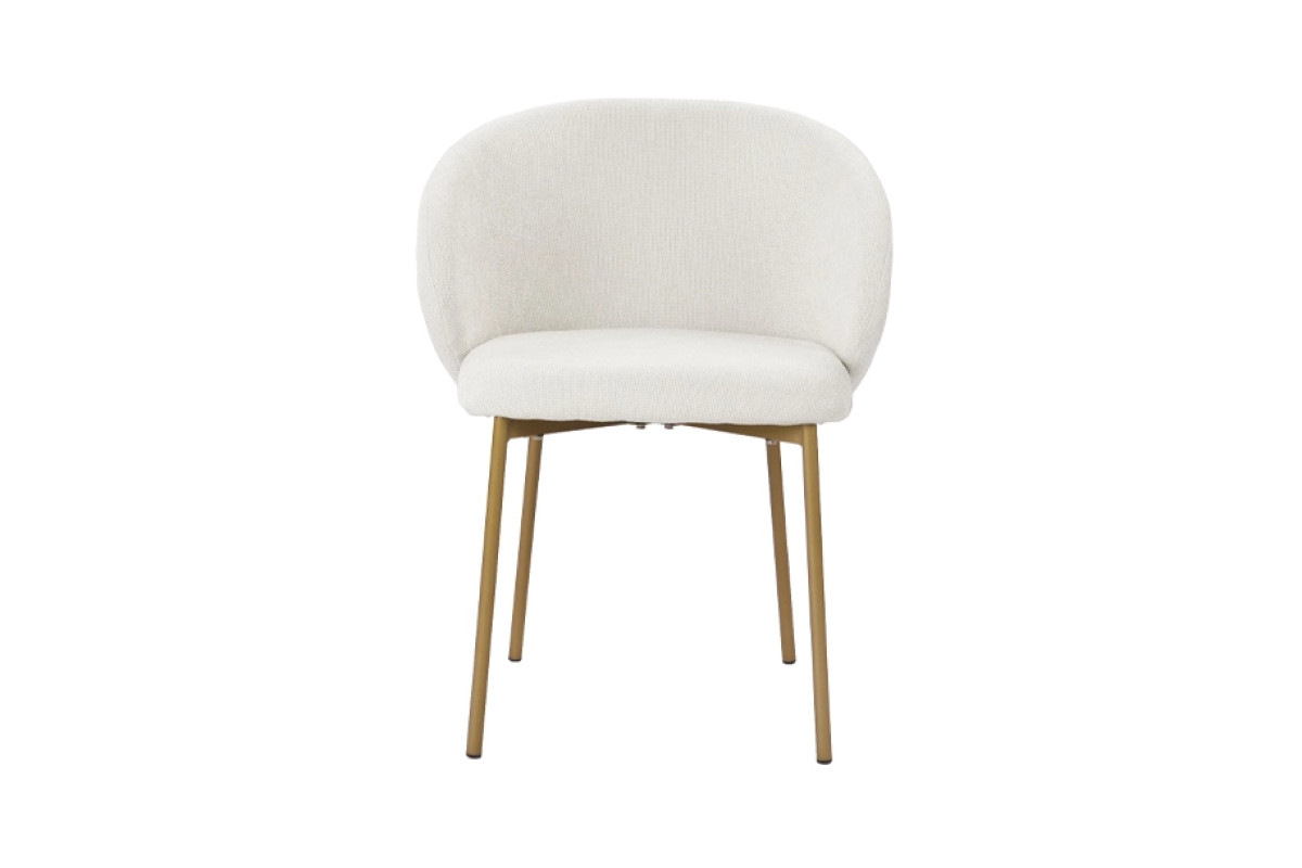 Стілець Софі у відтінку айворі вирізняється плавними лініями та легким силуетом. Завдяки універсальному кольору він гармонійно поєднується з будь-якими меблями, а золотисте покриття металевих ніжок додає інтер’єру витонченого акценту. Модель поєднує сучасний дизайн і практичність, забезпечуючи комфорт щоденного використання у кухні, обідній зоні чи вітальні.