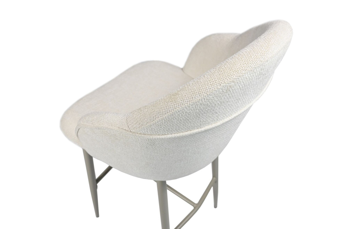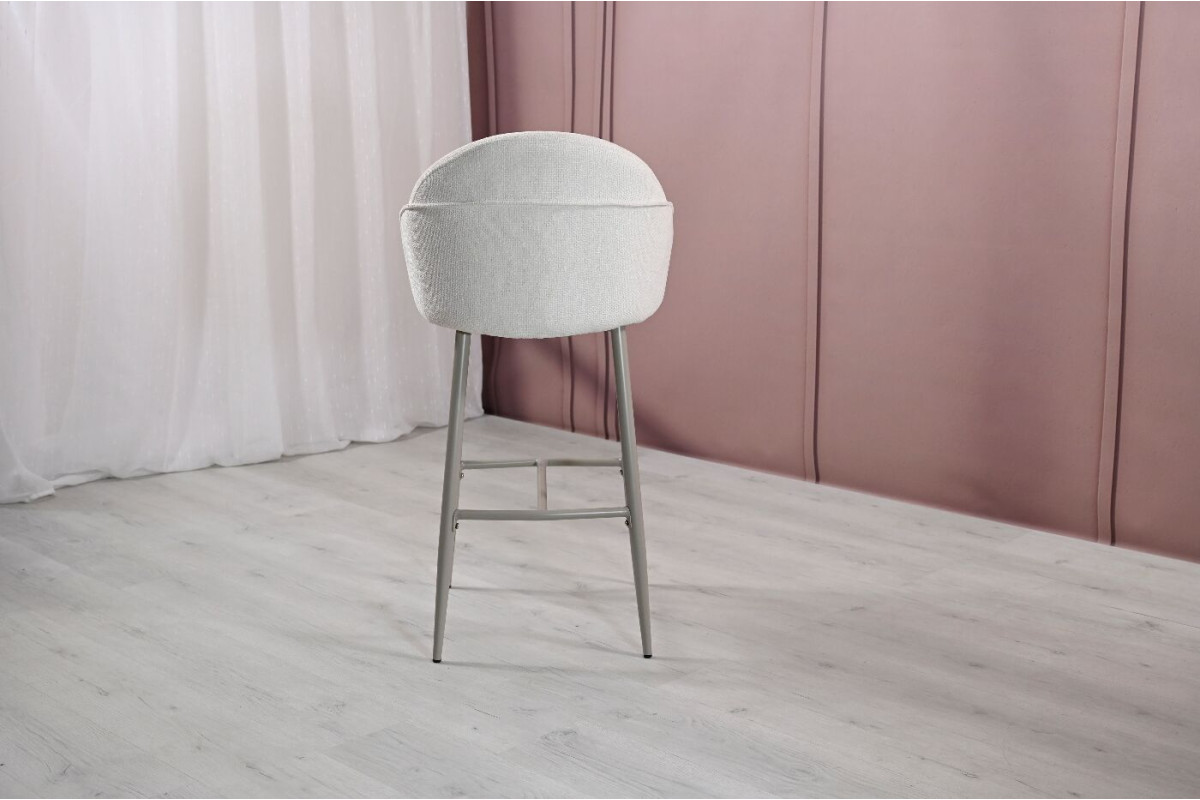 Напівбарний стілець B-236 у відтінку маршмеллоу – це стильне та комфортне рішення для кухні або зони відпочинку. Його м’яке сидіння, оббите приємною на дотик рогожкою, забезпечує зручність під час сидіння, а витончена форма спинки додає елегантності. Стілець має міцну металеву основу, пофарбовану в колір капучино, що надає йому гармонійного вигляду та універсальності в поєднанні з різними інтер'єрними стилями. Завдяки висоті сидіння 68,5 см модель ідеально підходить для напівбарних столів або кухонних островів.