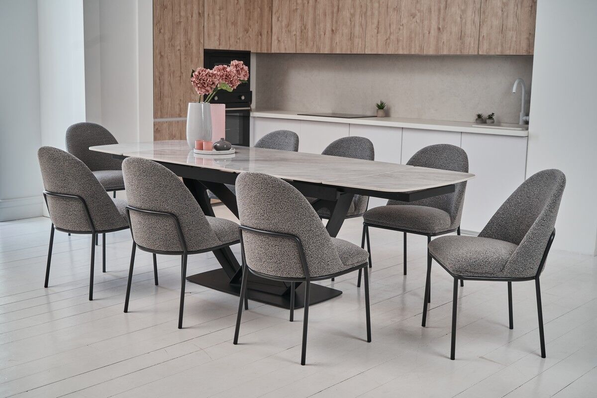 Сірий букле – це матеріал, який поєднує в собі елегантність, текстуровану поверхню та нейтральний відтінок, що дозволяє йому гармонійно вписуватися в різні стилі інтер'єру. Сірий колір є універсальним, що робить його легко поєднуваним з іншими кольорами та матеріалами. Приклади поєднань:• Сірий букле + Білий інтер'єр: Світлі стіни, білі меблі, сірі подушки і килимок. • Сірий букле + Чорний метал: Чорні металеві деталі меблів, сірі штори і декоративні елементи. • Сірий букле + Пастельні тони: Пастельні подушки, картини з м'якими кольорами, світлі килими. • Сірий букле + Природні відтінки: Дерев'яні меблі, зелень у вазонах, бежеві текстильні вироби. Поєднання сірого букле з іншими кольорами та матеріалами дозволяє створювати різні настрої та стилі інтер'єру, від сучасного мінімалізму до затишної класики.