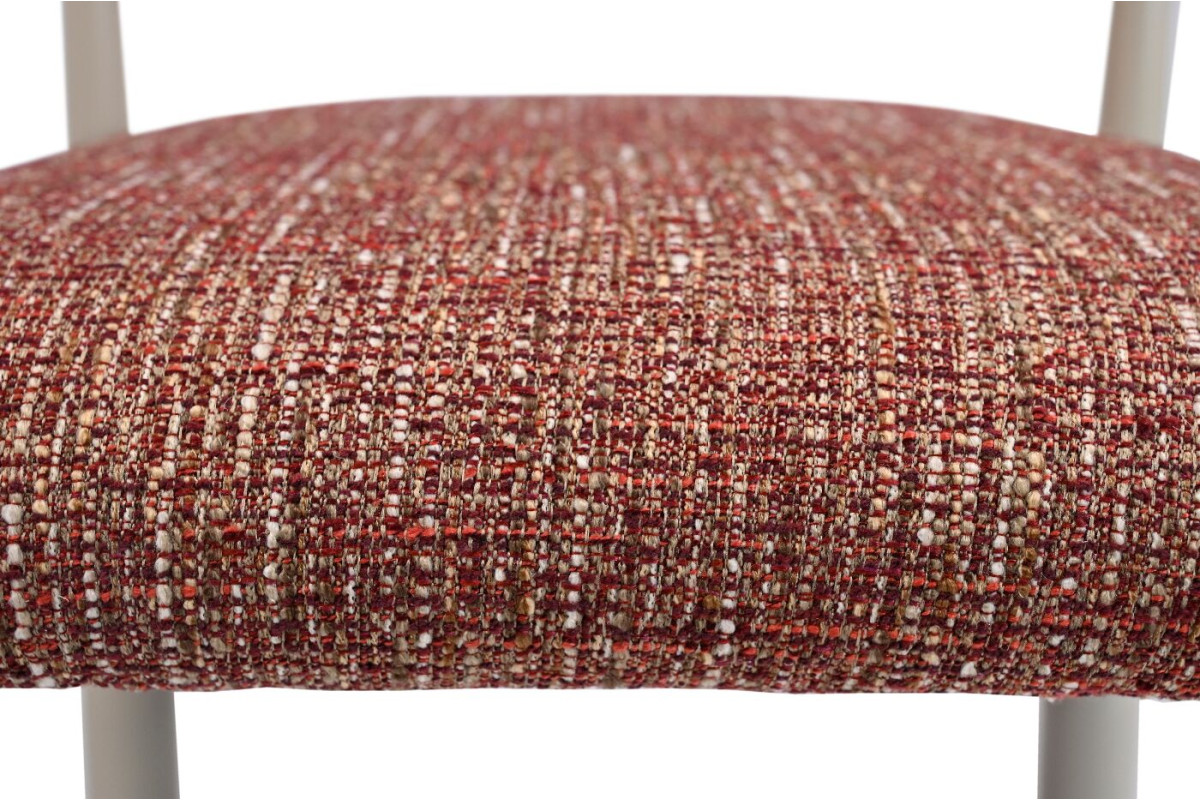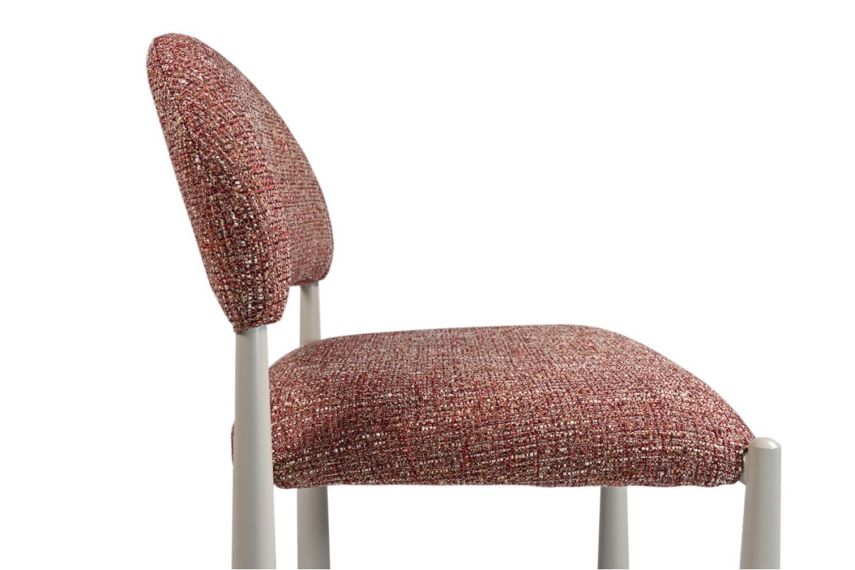 Стілець M-125 чилі + кремовий — ідеальне поєднання елегантності та комфорту для вашого інтер'єру. Оббивка з фактурної тканини в насиченому відтінку «чилі» додає яскравих акцентів, а кремові металеві ніжки забезпечують легкість та витонченість дизайну. Тканина в кольорі чилі — це глибокий, насичений відтінок червоного, що нагадує колір пекучого перцю чилі. Цей колір є дуже виразним і додає інтер'єру яскравих акцентів, привертаючи увагу і створюючи атмосферу енергійності та тепла. Тканина в кольорі чилі добре поєднується з іншими теплими відтінками, такими як кремовий, бежевий чи золотистий, а також з більш темними відтінками, такими як темно-сірий чи чорний, створюючи стильний баланс між яскравістю та елегантністю. Це ідеальний вибір для тих, хто цінує стильні, але функціональні деталі в інтер'єрі.