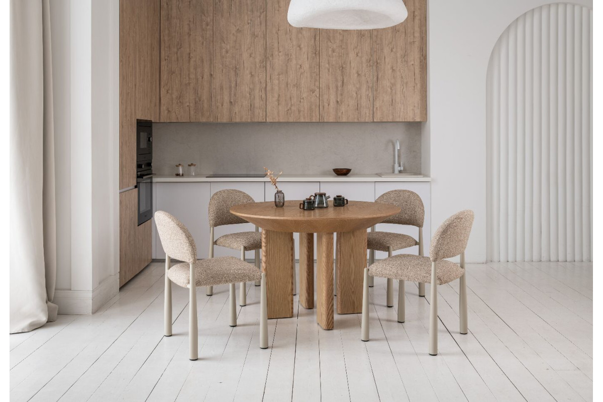 Стілець M-125 мигдаль + кремовий — вишукане поєднання комфорту та сучасного стилю. М’яка фактурна оббивка у теплому відтінку «мигдаль» створює затишну атмосферу, а кремові металеві ніжки додають легкості та елегантності. Широке сидіння дарує відчуття простору та зручності, а висота до сидіння ідеально підходить для комфортного розташування за столом. M-125 — це стильний акцент для вашого інтер’єру та щоденне задоволення від використання.