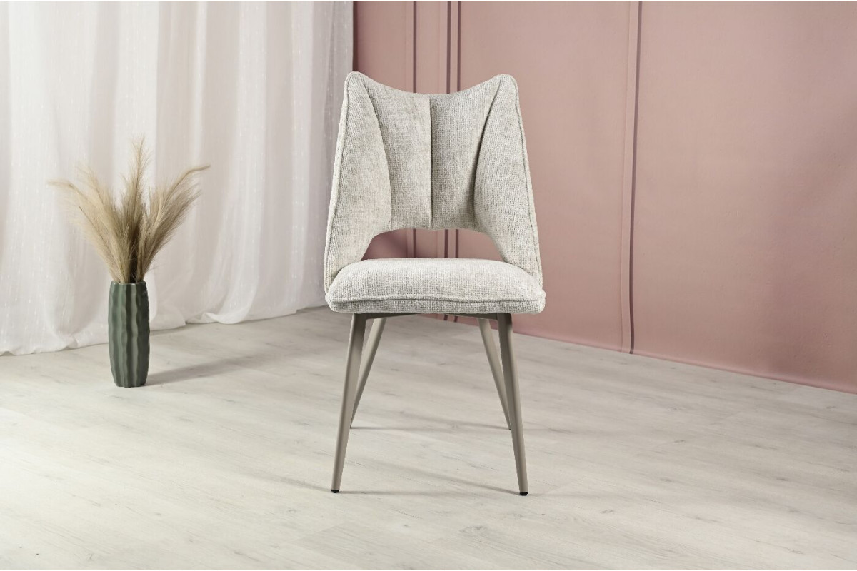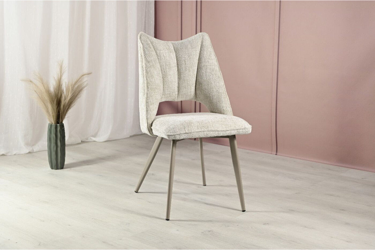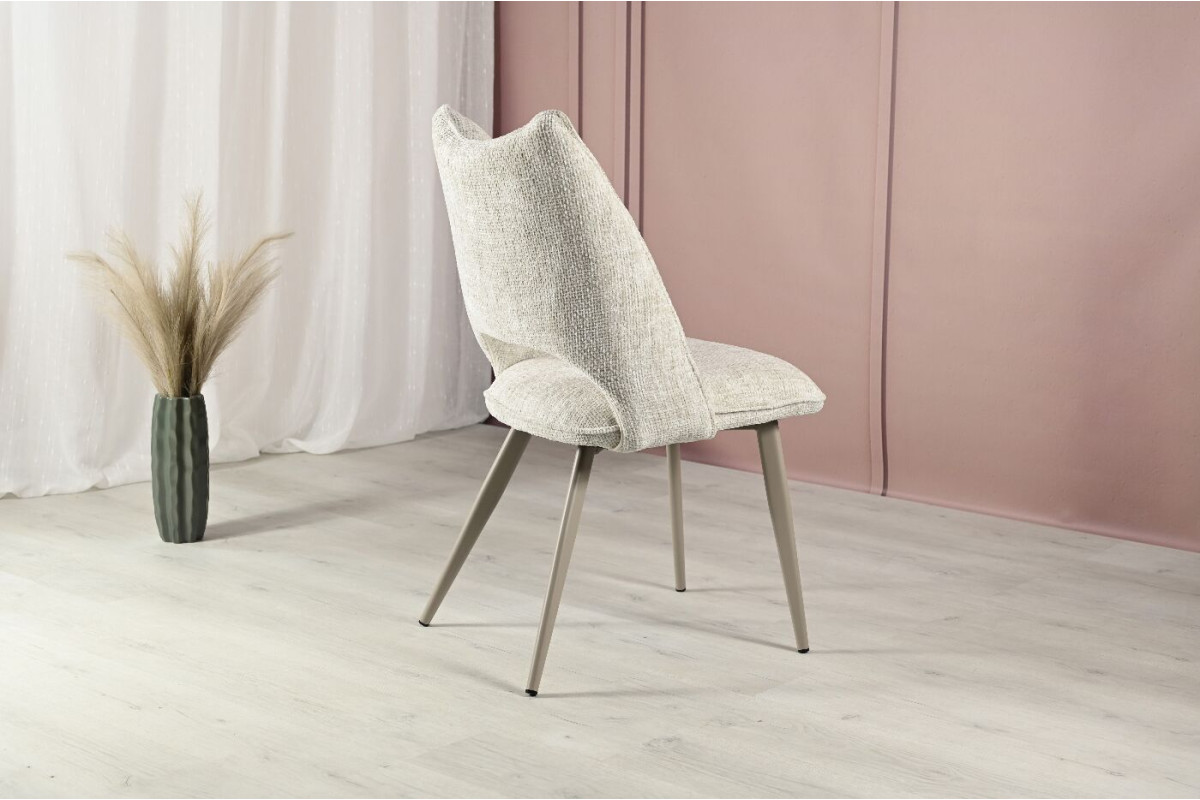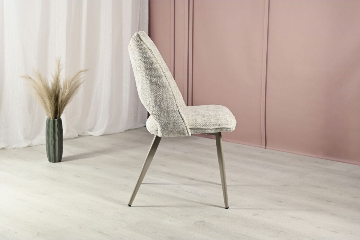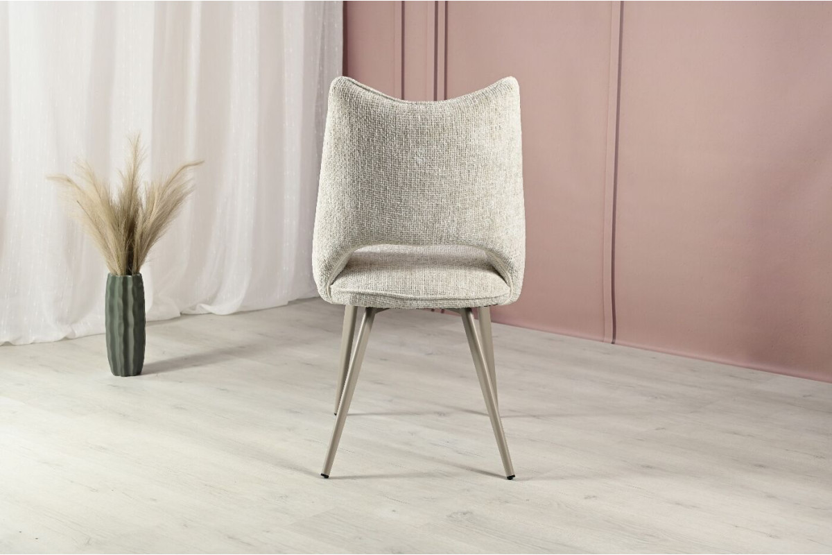 Колір «тофу» має м'який, нейтральний відтінок, який легко вписується в різні стилі декору. Він додає атмосферу затишку та спокою, що робить приміщення більш комфортним. Стілець з оббивкою з твида шамбрей забезпечує високий рівень комфорту завдяки м'якій текстурі. Він стане зручним місцем для відпочинку, спілкування з друзями або роботи, забезпечуючи підтримку протягом тривалого часу. Оббивка з твида шамбрей в кольорі «тофу» додає меблям елегантності та сучасності. Цей стілець може стати центральним елементом вашого інтер'єру, підкреслюючи його стиль і створюючи враження вишуканості.