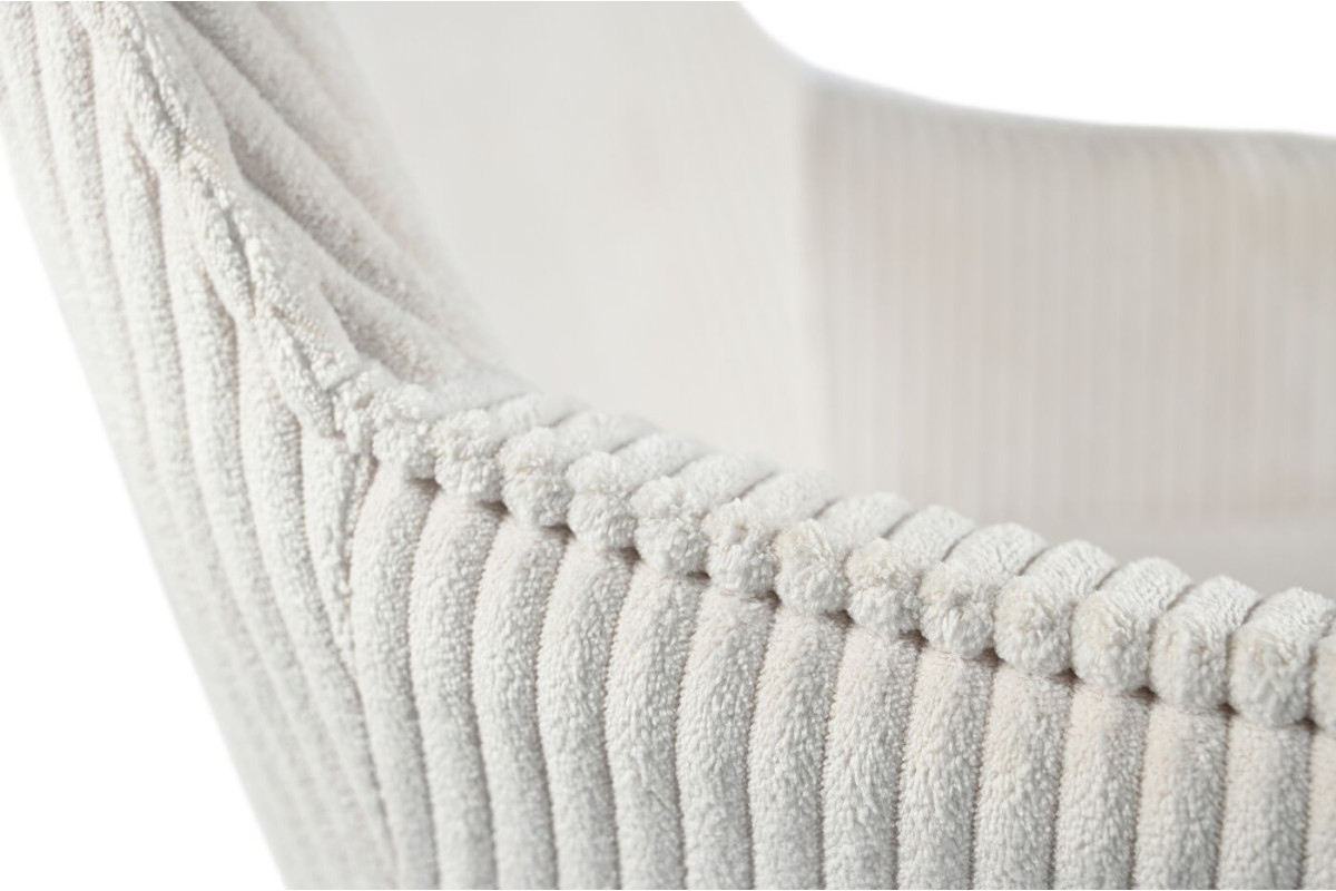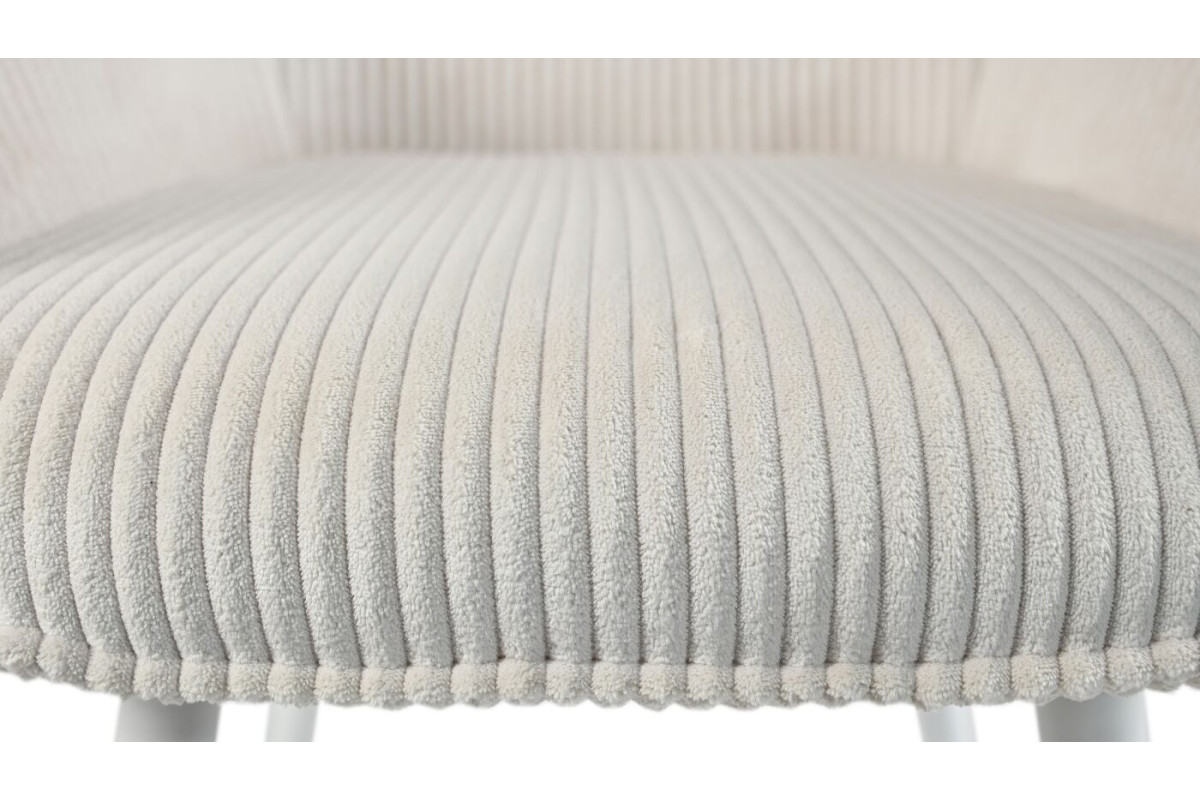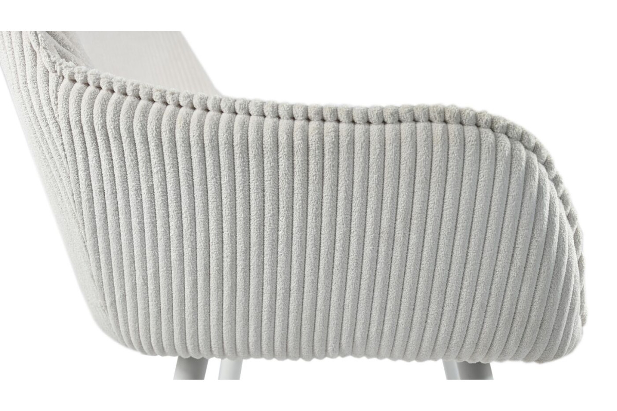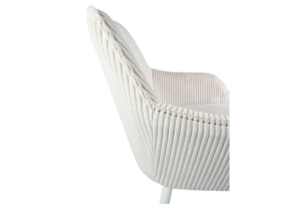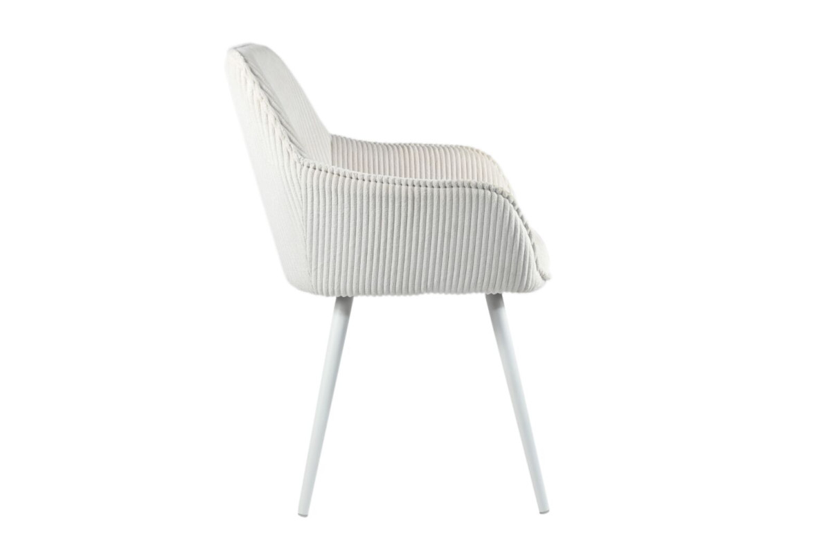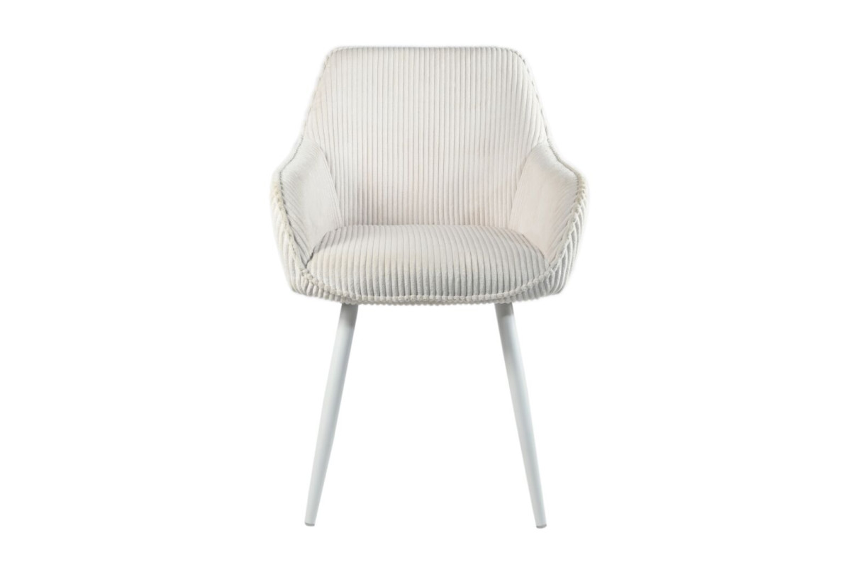 Стілець M-240 білий антік + білий — елегантний акцент для сучасного інтер’єру. Ця модель поєднує м’яку візуальність і практичний комфорт. Оббивка з вельвету рубчик у відтінку \"білий антік\" має виразну текстуру, що додає глибини образу й приємна на дотик. Відтінок м’який, спокійний, із легкою ноткою ретро — виглядає вишукано та водночас невимушено. Широке сидіння з підлокітниками створює відчуття простору та підтримки, дозволяючи розслабитись навіть під час тривалого перебування. Основа з фарбованого металу у білому кольорі додає легкості зовнішньому вигляду, не втрачаючи при цьому стійкості конструкції. M-240 — чудовий вибір для інтер'єрів, де цінується світло, повітряність і тактильний комфорт.