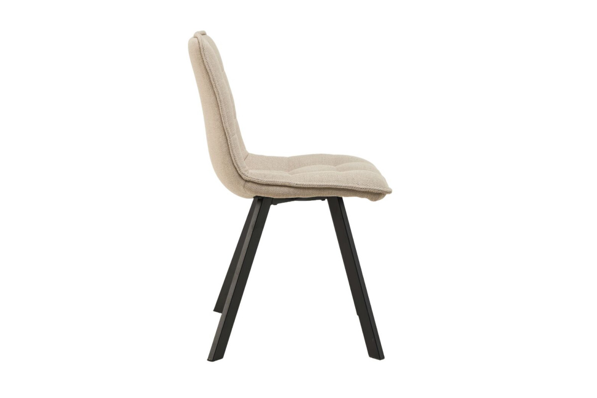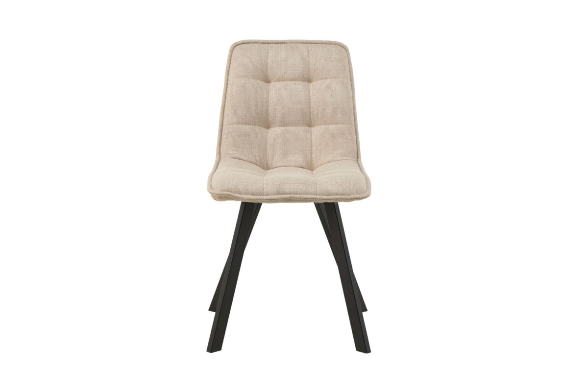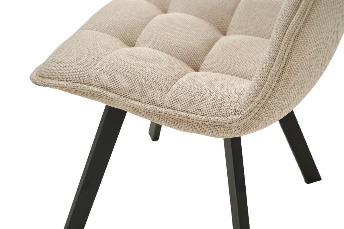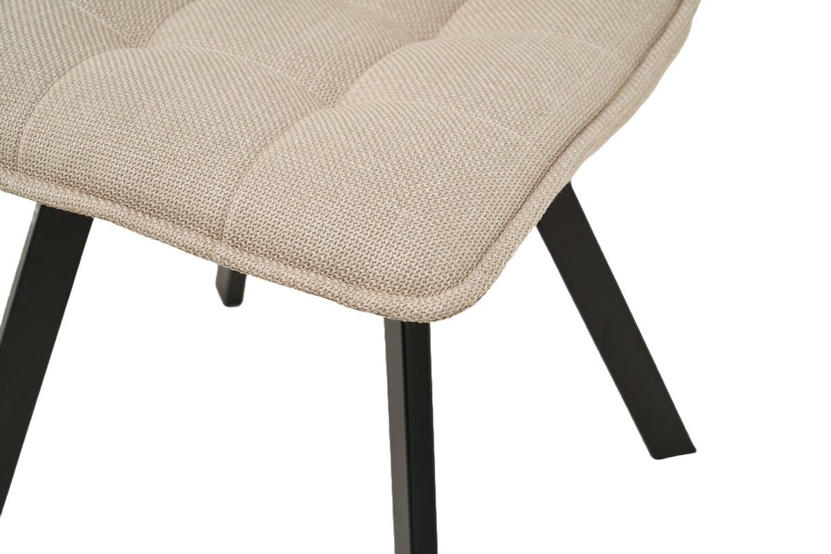 Колір айворі додає ніжності та світла будь-якому приміщенню, створюючи відчуття простору та легкості. Айворі легко поєднується з іншими кольорами та стилями — від класичного до сучасного. Тканина оббивки приємна на дотик і забезпечує комфорт під час сидіння. Вона має достатню стійкість до зношування, що робить стілець довговічним і легким у догляді. Чорна металева основа надає стільцю сучасного вигляду та забезпечує його стійкість і міцність. Контраст між оббивкою айворі та чорними ніжками створює стильний і збалансований образ. Поєднання кольору айворі з чорними металевими ніжками створює вишуканий і сучасний вигляд.