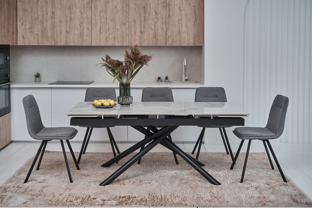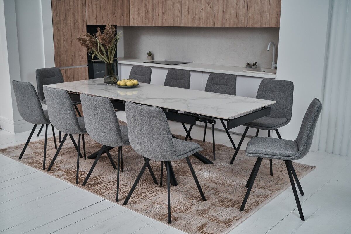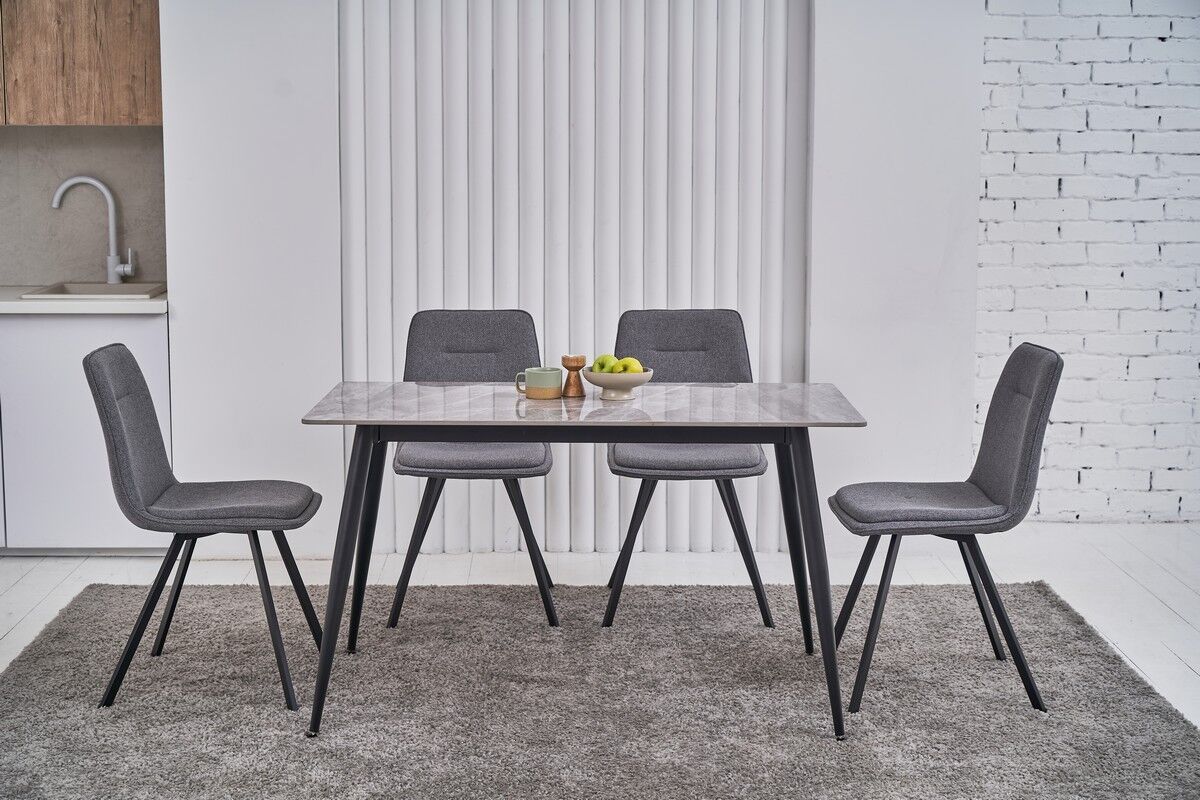 Сірий колір оббивки в поєднанні з чорною основою створює стриманий і елегантний образ. Такий стілець легко впишеться в будь-який інтер'єр, від мінімалістичного до класичного, завдяки своїй нейтральній кольоровій гамі. Основа стільця виготовлена з пофарбованого металу, що гарантує його стійкість і надійність. Металева основа захищена фарбою, що підвищує її стійкість до корозії та пошкоджень. Оббивка з тканини не тільки приємна на дотик, але й забезпечує довговічність і легкість у догляді. Тканина стійка до зношування, що подовжує термін служби стільця.
