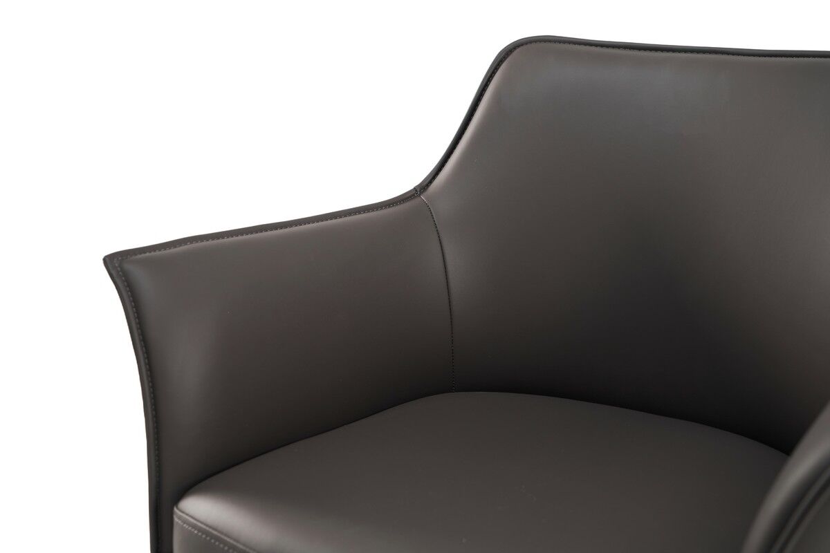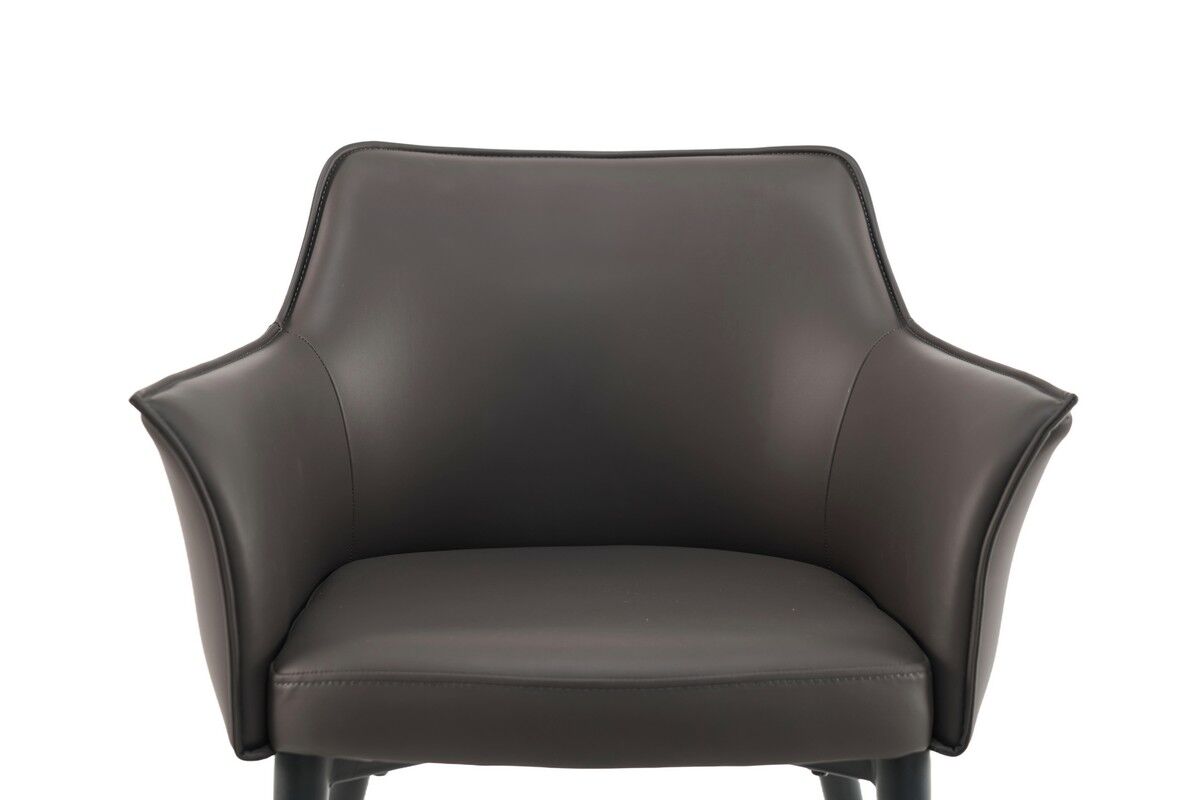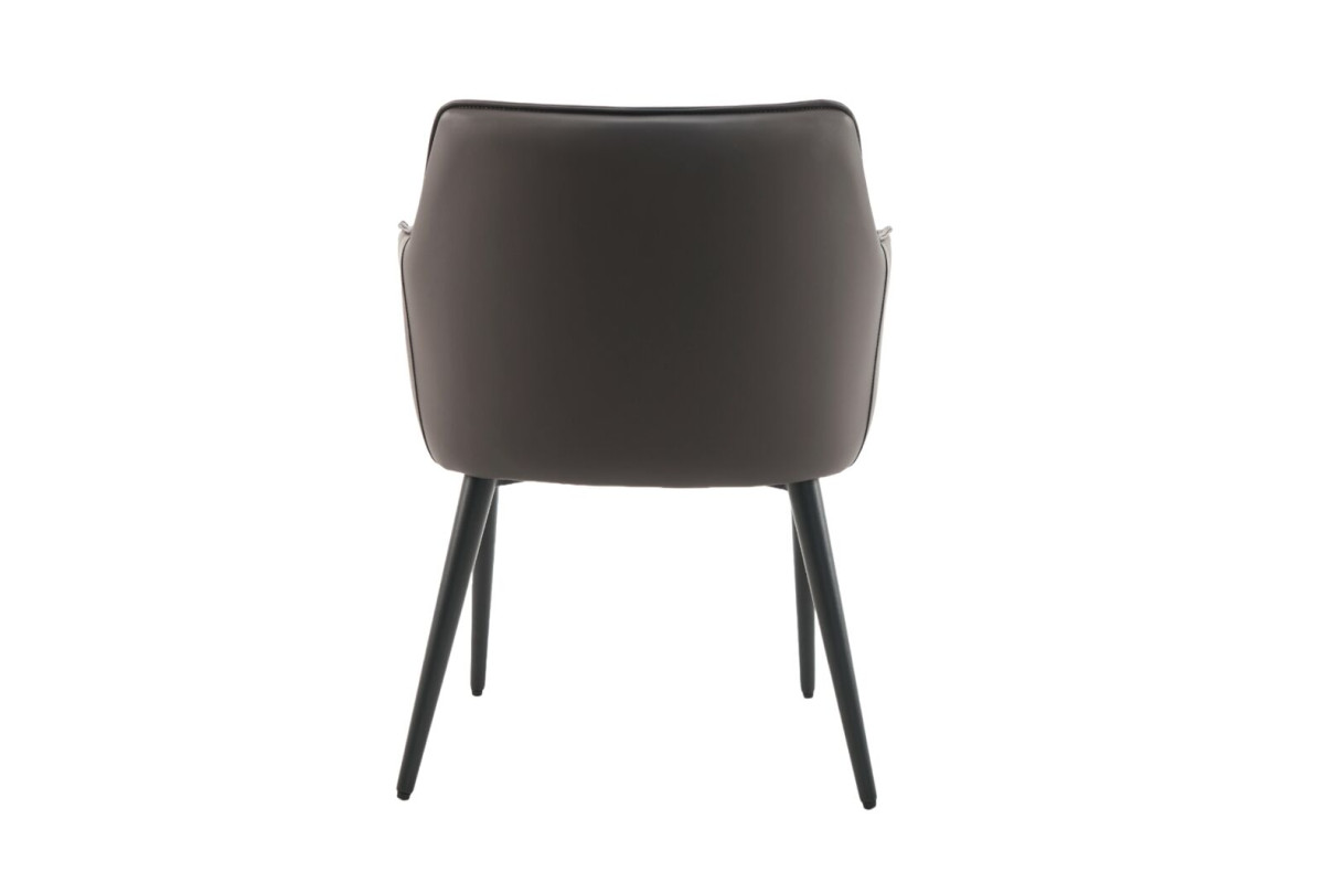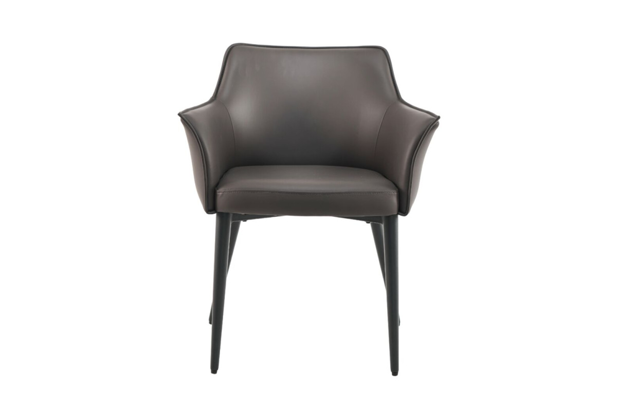 Сірий колір оббивки надає стільцю нейтральний і сучасний вигляд, який легко вписується в будь-які інтер’єри. Чорна металева основа створює контраст і додає стільцю сучасності. Шкірзамінник — це практичний і довговічний матеріал, який легко чиститься і зберігає свій зовнішній вигляд. Він імітує натуральну шкіру, але при цьому є більш доступним за ціною і простішим у догляді. Фарбований метал забезпечує міцність і стабільність конструкції, а чорний колір додає елегантності та гармонійно поєднується з оббивкою. Стілець має підлокітники, що додає додатковий комфорт і підтримує руки в зручному положенні. Цей стілець ідеально підходить для офісів, робочих кабінетів або сучасних обідніх зон, пропонуючи стильне оформлення і високий рівень комфорту.