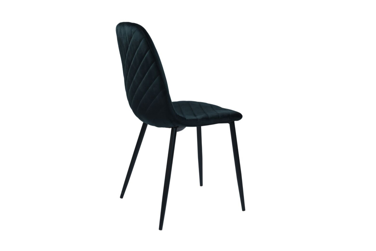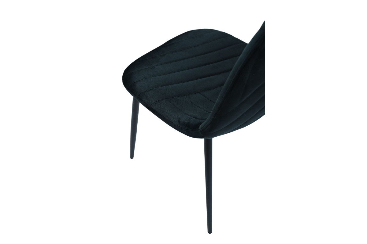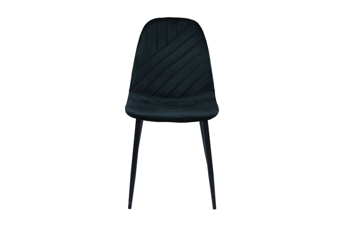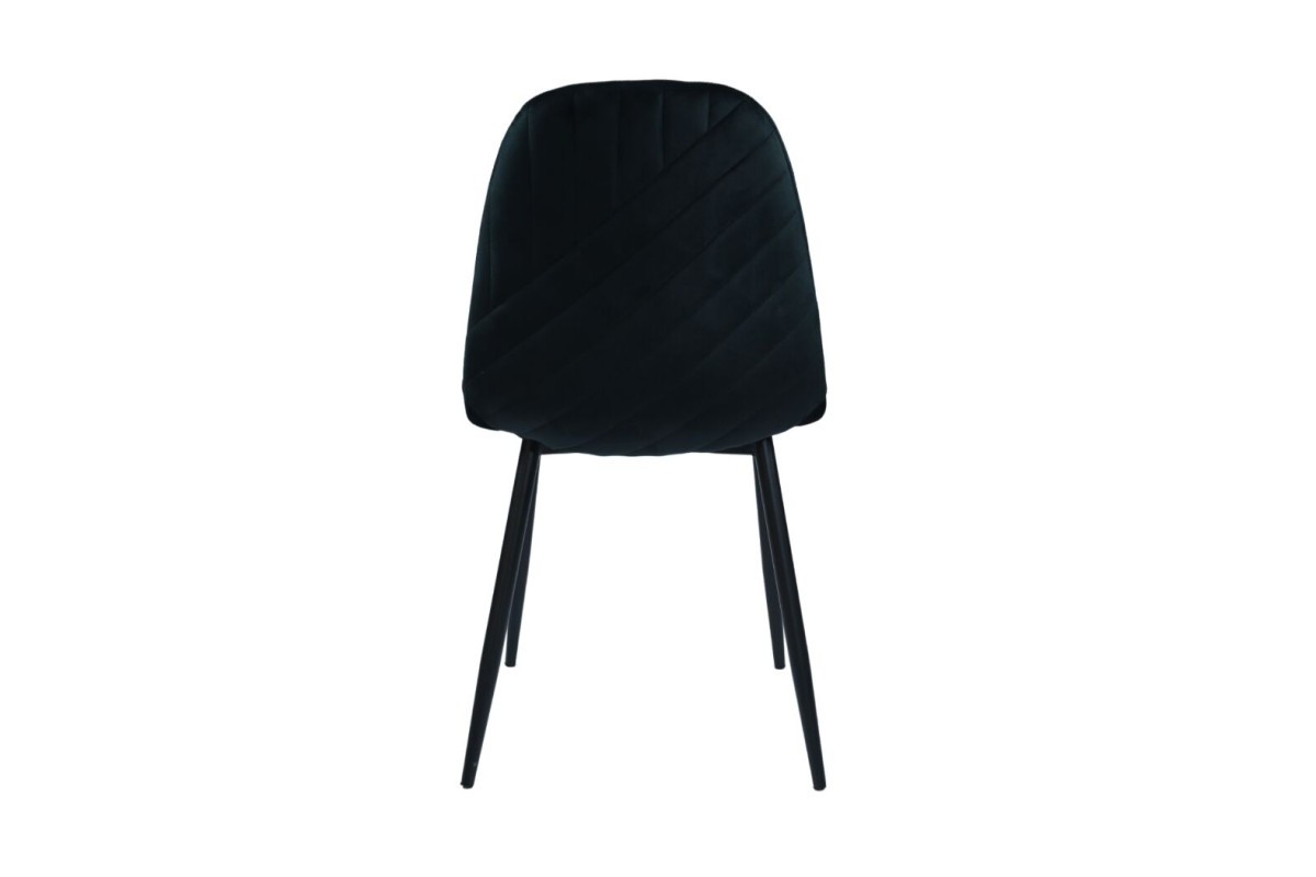 Сидіння та оббивка стільця виконані в глибоких чорних відтінках, що надає стільцю сучасний і елегантний вигляд. Чорний велюр створює ефект розкоші та стриманої витонченості, а чорна металева основа додає строгості та сучасності. Оббивка з велюру — це м’яка і приємна на дотик тканина з багатою текстурою. Велюр відрізняється високою зносостійкістю, що робить стілець не тільки стильним, але й довговічним. Він зберігає свою привабливість навіть при регулярному використанні. Стілець має металеву основу, пофарбовану в чорний колір. Це надає конструкції міцності та стабільності, а також створює єдиний стильний образ. Чорний колір і велюрова оббивка роблять стілець універсальним елементом, який легко вписується як у сучасні, так і в класичні інтер'єри. Він додасть елегантності та стилю будь-якому інтер'єру, будь то дім чи офіс.