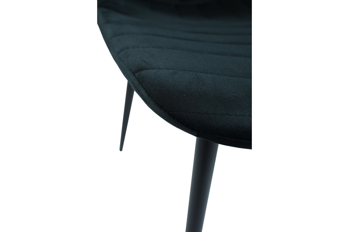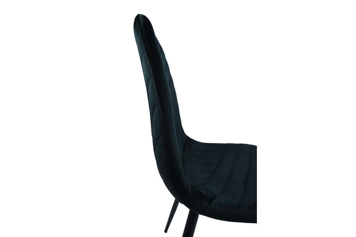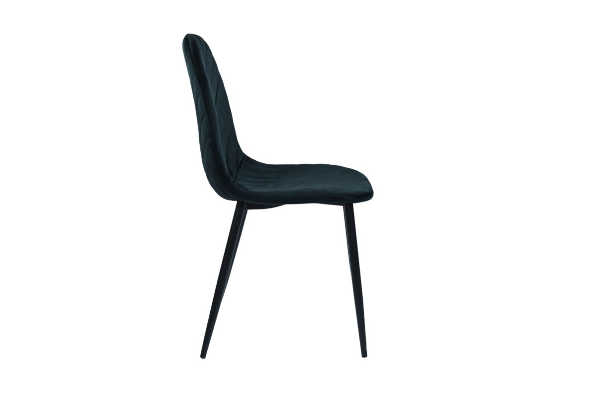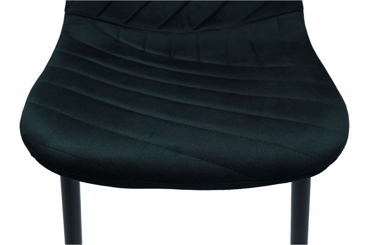 Сидіння та оббивка стільця виконані в глибоких чорних відтінках, що надає стільцю сучасний і елегантний вигляд. Чорний велюр створює ефект розкоші та стриманої витонченості, а чорна металева основа додає строгості та сучасності. Оббивка з велюру — це м’яка і приємна на дотик тканина з багатою текстурою. Велюр відрізняється високою зносостійкістю, що робить стілець не тільки стильним, але й довговічним. Він зберігає свою привабливість навіть при регулярному використанні. Стілець має металеву основу, пофарбовану в чорний колір. Це надає конструкції міцності та стабільності, а також створює єдиний стильний образ. Чорний колір і велюрова оббивка роблять стілець універсальним елементом, який легко вписується як у сучасні, так і в класичні інтер'єри. Він додасть елегантності та стилю будь-якому інтер'єру, будь то дім чи офіс.