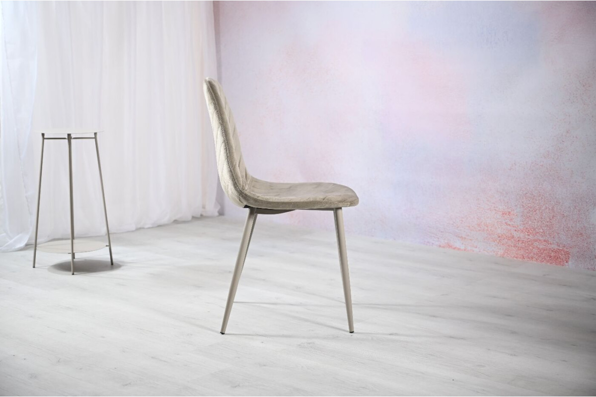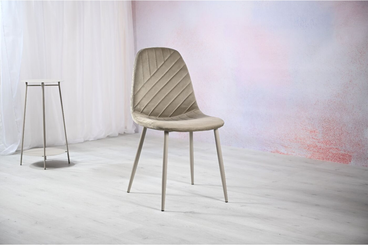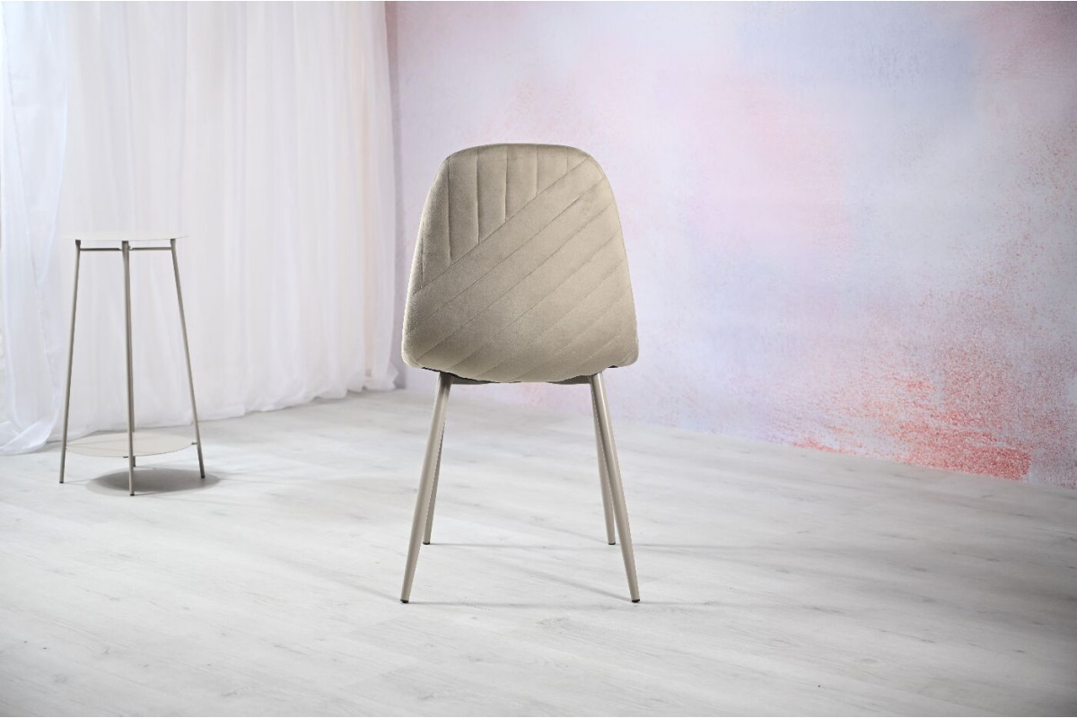 Сидіння та оббивка виконані в теплому відтінку капучино, який надає стільцю затишний і елегантний вигляд. Цей нейтральний колір легко поєднується з різними інтер'єрами, будь то сучасний чи класичний стиль. Оббивка з велюру не тільки виглядає розкішно, але й приємна на дотик. Велюр має м’яку текстуру та стійкий до зносу, що робить стілець не лише красивим, але й довговічним. Металева основа пофарбована в колір капучино, що завершує стильний образ стільця та надає йому міцності. З вагою всього 4,45 кг, стілець легко переміщати по кімнаті, при цьому він залишається стійким і міцним завдяки металевій основі. Цей стілець стане чудовим вибором для тих, хто шукає комфортне та стильне рішення, яке гармонійно впишеться в будь-який інтер'єр.