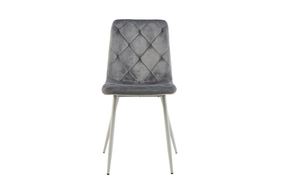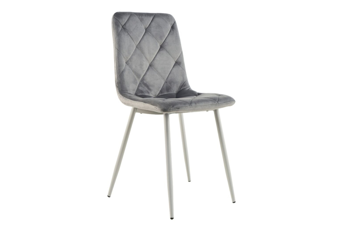 Стілець поєднує світло-сірий велюр з білим фарбованим металевим каркасом, створюючи гармонійний і витончений вигляд. Світло-сірий колір оббивки додає інтер'єру м'якості і спокою, а білий металевий каркас підкреслює чист... Читать далее...