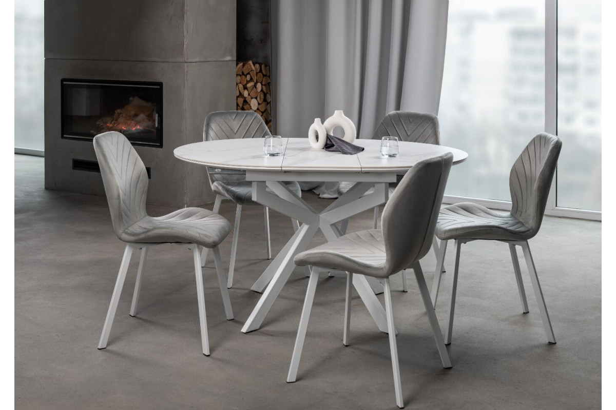 Світло-сірий - це універсальний та сучасний відтінок, який чудово поєднується з різними кольорами інтер'єру. Комбінація світло-сірого велюру та білої основи створює свіжий та стильний вигляд, який підходить до будь-якого стилю приміщення. Велюр - це м'який та приємний на дотик матеріал, який надає стільцю розкішний вигляд і забезпечує комфорт при сидінні. Ширина сидіння: 53 см - оптимальна ширина сидіння забезпечує комфортне розташування і підтримку для вашого тіла. Цей стілець стане відмінним доповненням до вашого інтер'єру, надаючи йому стиль та комфорт, а також забезпечуючи зручність у використанні.