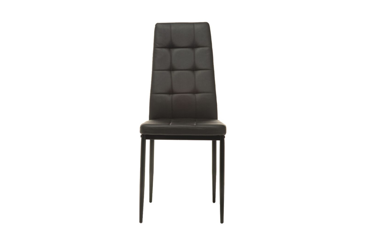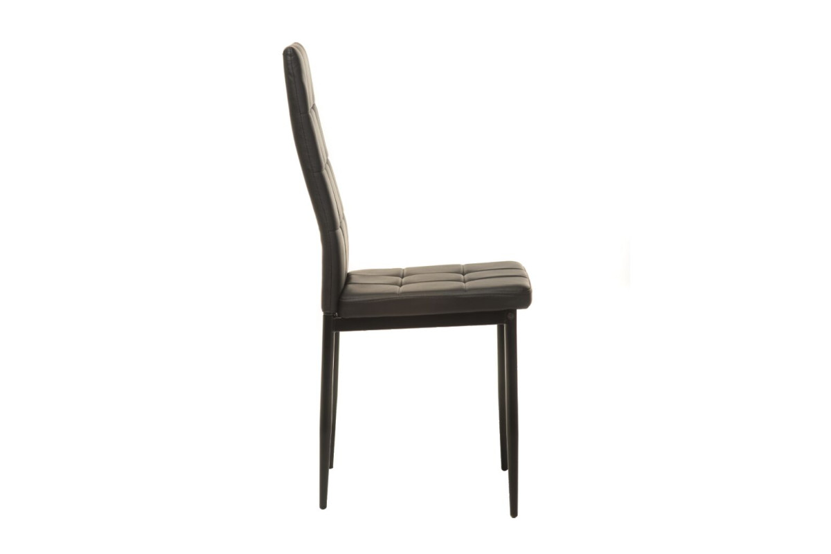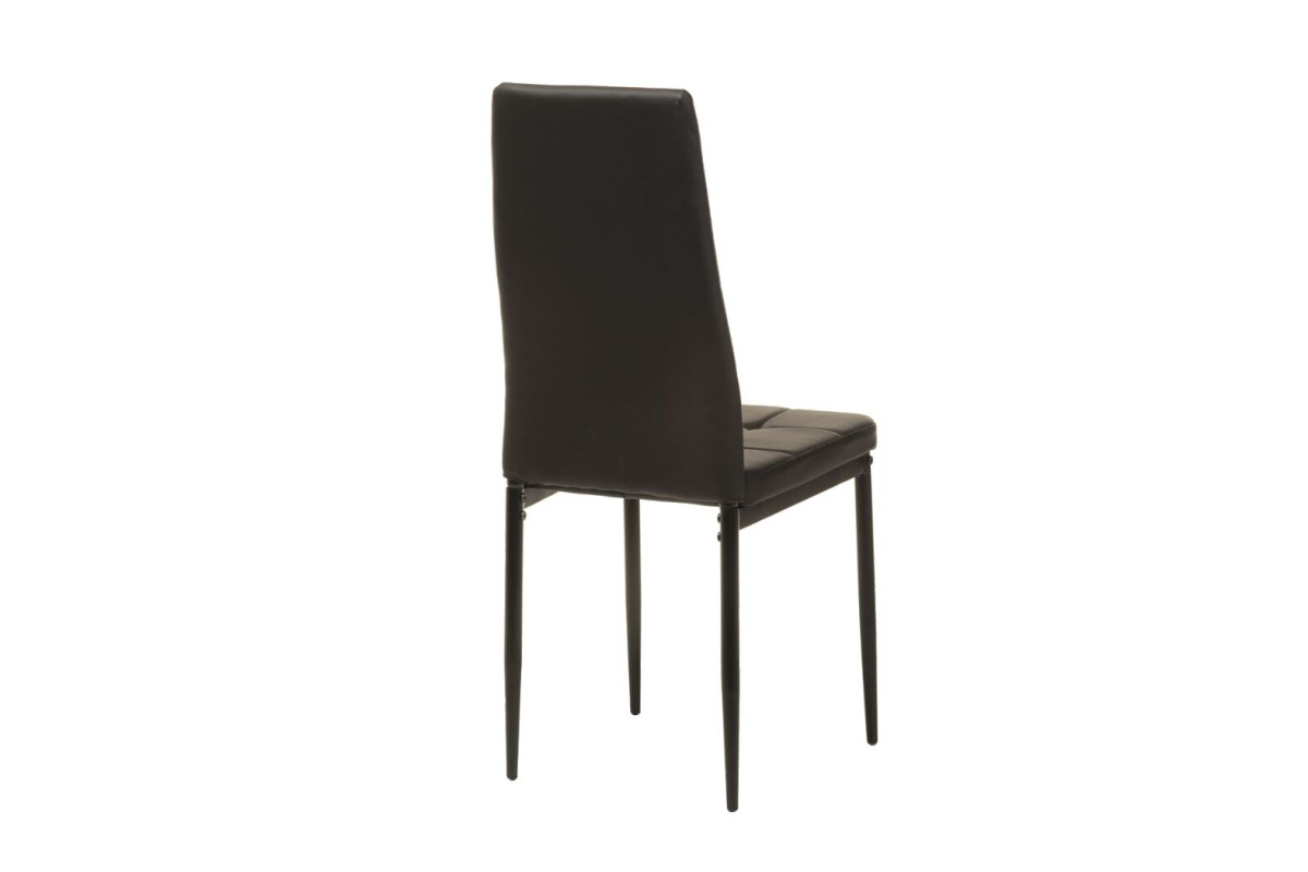 Стілець N-66-2 чорна екошкіра + чорний — це стильний, сучасний стілець, який поєднує елегантність і практичність. Його оббивка з чорної екошкіри надає виробу лаконічного вигляду та робить його легким в догляді, оскільки матеріал не вимагає спеціальних умов при чищенні. Металеві ніжки чорного кольору додають стійкості і витривалості, роблячи стілець надійним для щоденного використання.