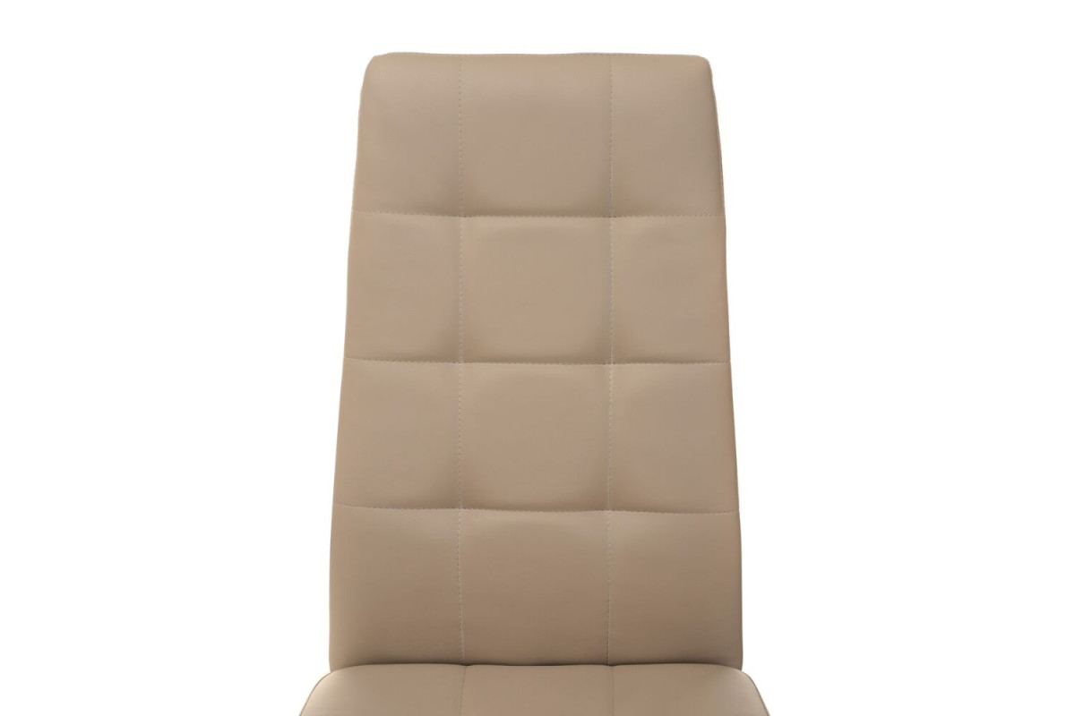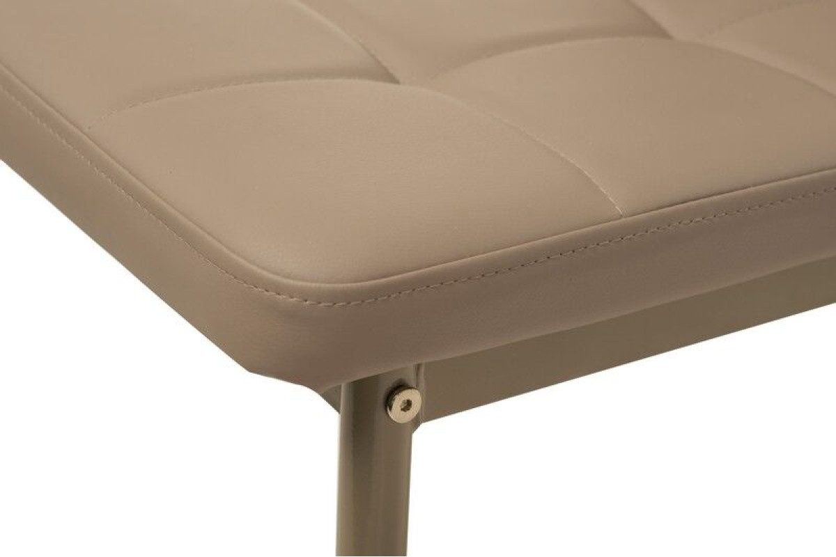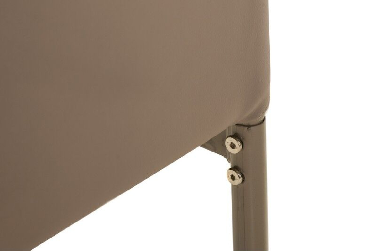Оббивка з екошкіри благородного кольору капучино надає відчуття м'якості й затишку, додаючи теплі акценти в будь-який інтер’єр. Матеріал легко очищується та зберігає бездоганний вигляд навіть після тривалого використання. Металева основа забезпечує стійкість і надійність конструкції, а делікатне фарбування в тон оббивки створює гармонійний образ. Ергономічна форма спинки підтримує природне положення спини, даруючи комфорт навіть під час тривалого сидіння.