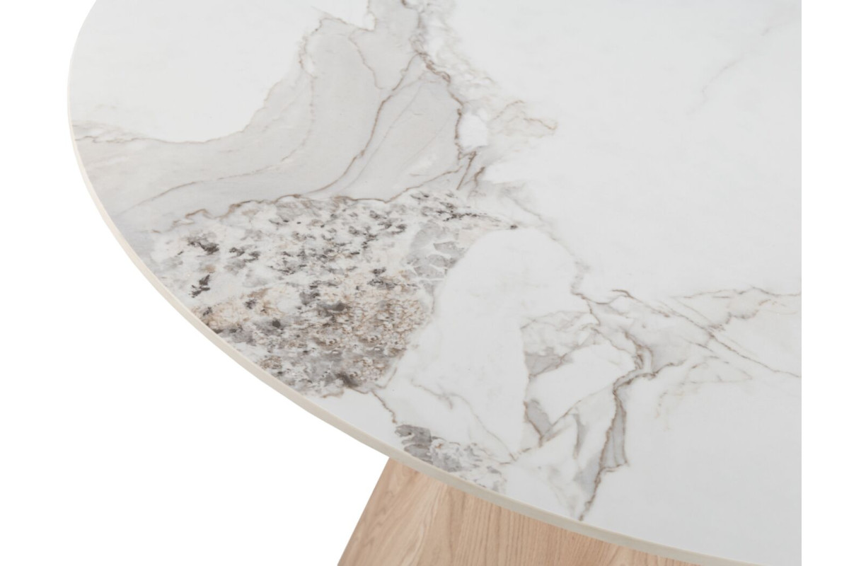 Керамічний стіл Квінто TМ-300 голден сенд + дуб — це стильне та функціональне рішення для сучасного інтер’єру. Його кругла форма сприяє затишній атмосфері та комфортному розташуванню за столом, що робить його ідеальним вибором для обідньої зони або вітальні.Стільниця виконана з глянцевої кераміки у вишуканому відтінку голден сенд, що надає столу елегантного вигляду, а також забезпечує довговічність і стійкість до подряпин і вологи. Основа з ламінованого МДФ у відтінку дуба додає конструкції природної теплоти та гармонійно поєднується із загальним дизайном.Завдяки поєднанню натуральних текстур і сучасних матеріалів цей стіл стане яскравим акцентом в інтер’єрі, додаючи йому витонченості та комфорту.