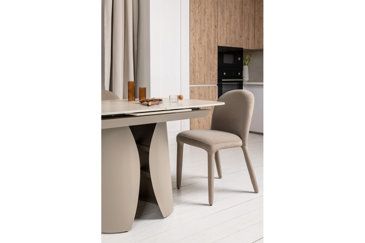 Керамічний стіл Лунаріо TML-1322 крема марфіль + капучино — це вишукане поєднання природної краси та сучасних технологій. Його матова стільниця в теплій палітрі крема марфіль нагадує текстуру натурального каменю: ніжні відтінки створюють атмосферу затишку та гармонії, а водночас надають інтер’єру благородного шарму. Поверхня не лише ефектна, а й практична — стійка до подряпин, високих температур і проста у догляді.Унікальний автоматичний механізм розкладки перетворює цей стіл на справжнього помічника: одним плавним рухом він збільшується зі 120 до 160 см, даруючи більше простору для святкових вечерь, зустрічей з друзями чи родинних обідів.Основу у відтінку капучино виконано з фарбованого металу — вона додає конструкції сучасного вигляду, підкреслює витонченість ліній і водночас гарантує стабільність та довговічність. Завдяки гармонійному поєднанню кольорів і форм Лунаріо TML-1322 стане не просто меблями, а стильним центром вашої оселі, що підкреслить індивідуальність і сучасний характер простору.
