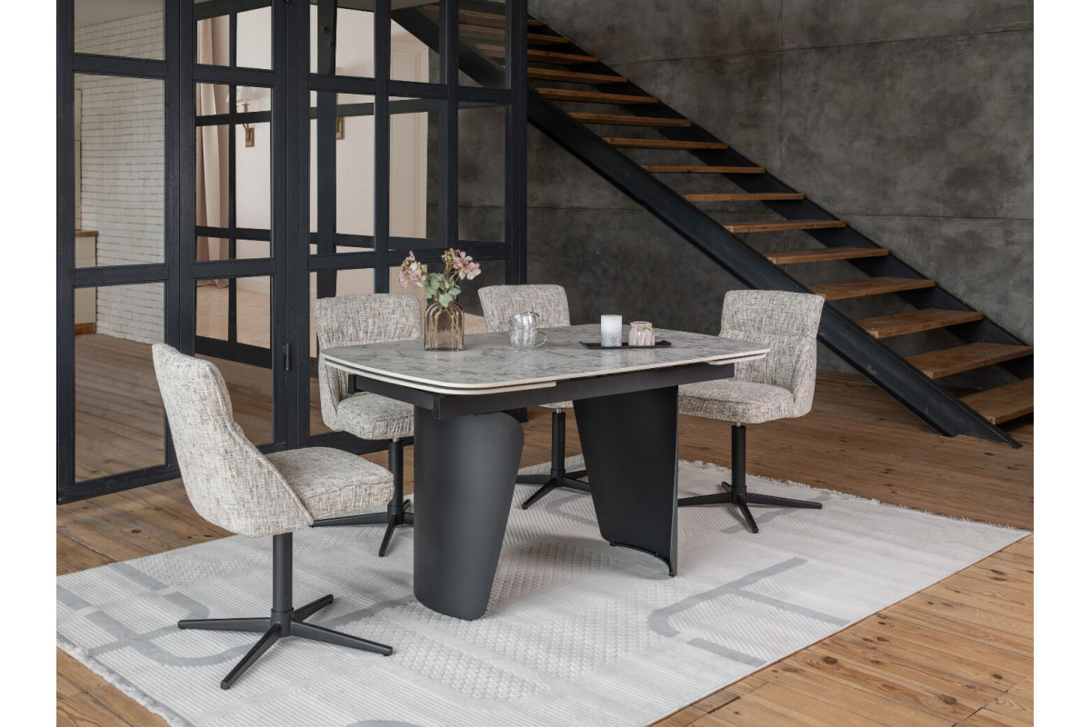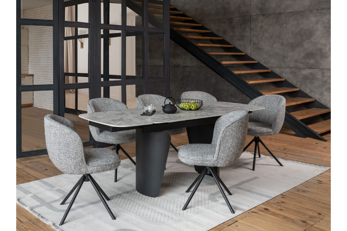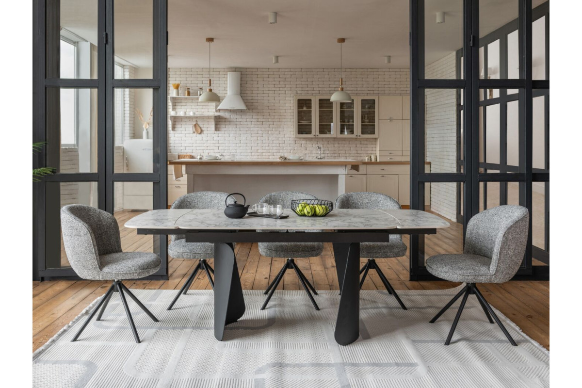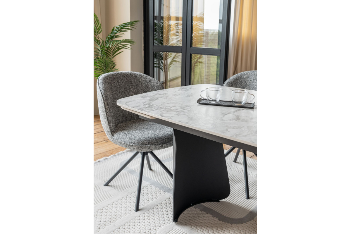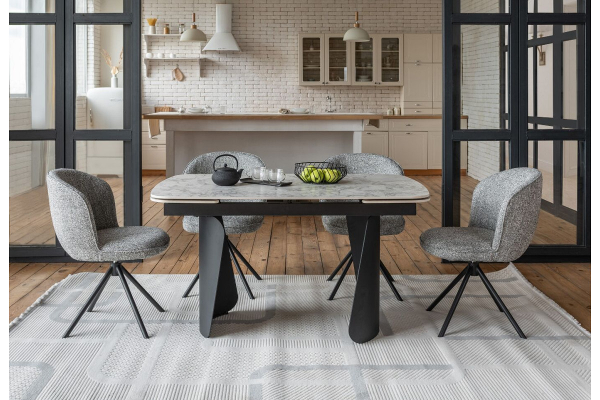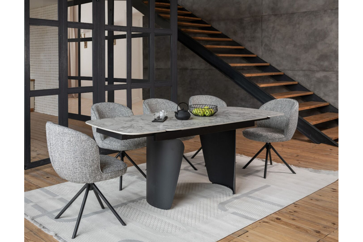 Керамічний стіл Нардо TML-1270 клауді грей + чорний — це поєднання мінімалізму, міцності та сучасних матеріалів.Стільниця з матової кераміки у відтінку клауді грей не лише виглядає елегантно, а й відзначається високою стійкістю до подряпин, вологи та температурних коливань.Основа з фарбованого металу у чорному кольорі додає столу виразності та забезпечує надійну стійкість.Розкладний механізм дозволяє легко збільшувати довжину столу з 140 до 200 см, адаптуючи його до будь-якого формату зустрічей.Цей стіл стане стильним центром вашої їдальні, доповнюючи інтер’єр гармонією форми та функціональності.