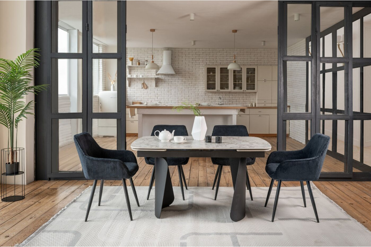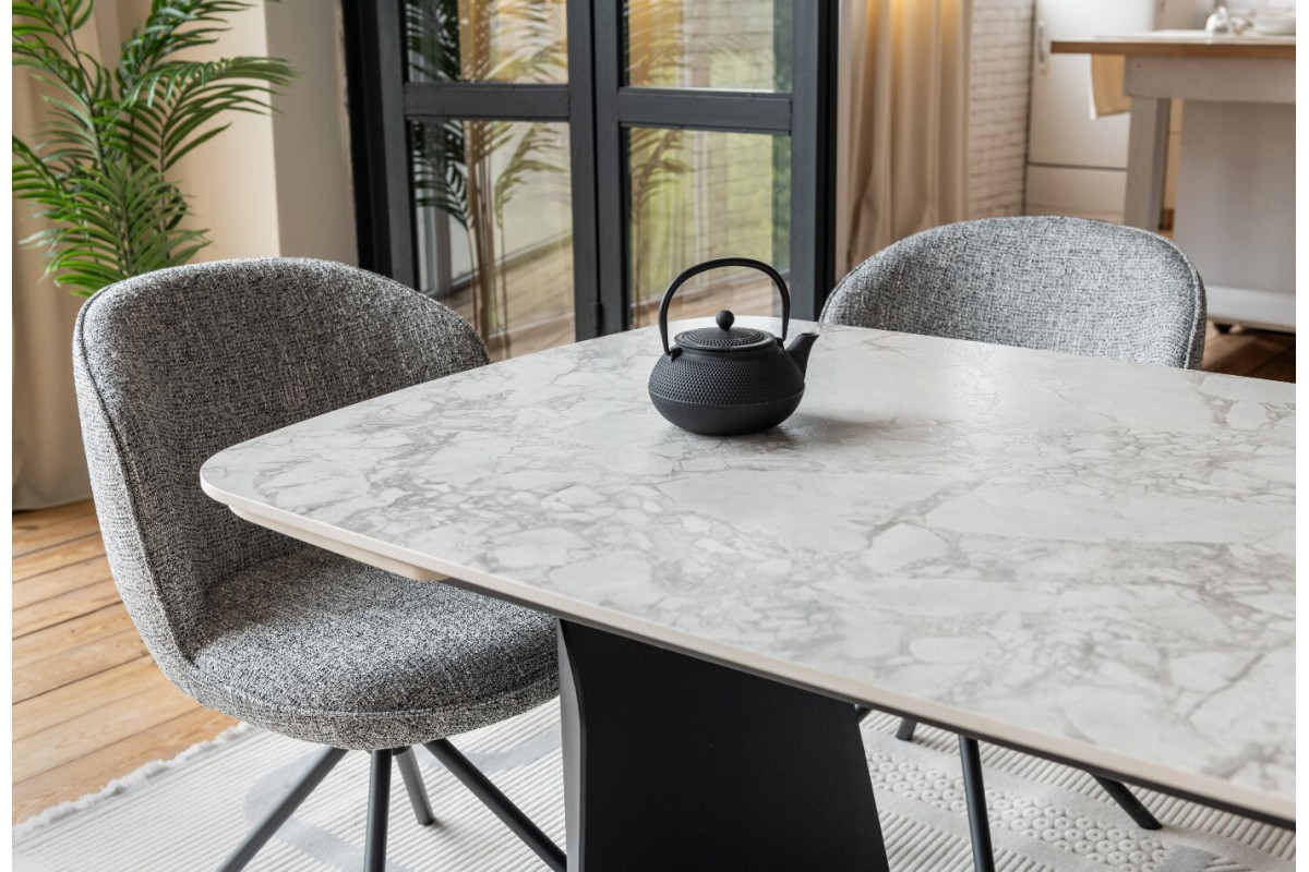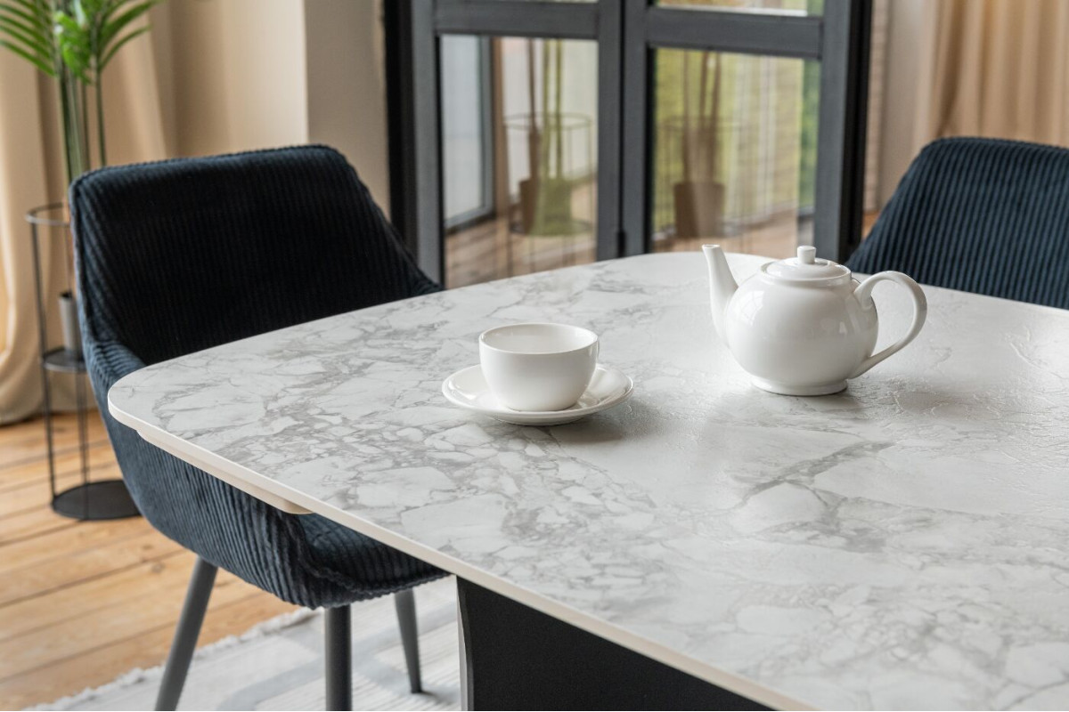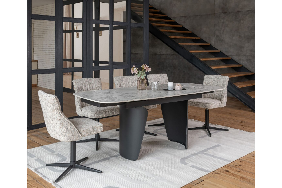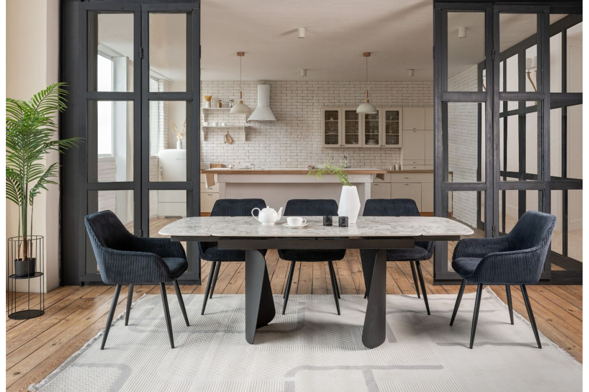 Керамічний стіл Нардо TML-1270 клауді грей + чорний — це поєднання мінімалізму, міцності та сучасних матеріалів.Стільниця з матової кераміки у відтінку клауді грей не лише виглядає елегантно, а й відзначається високою стійкістю до подряпин, вологи та температурних коливань.Основа з фарбованого металу у чорному кольорі додає столу виразності та забезпечує надійну стійкість.Розкладний механізм дозволяє легко збільшувати довжину столу з 140 до 200 см, адаптуючи його до будь-якого формату зустрічей.Цей стіл стане стильним центром вашої їдальні, доповнюючи інтер’єр гармонією форми та функціональності.