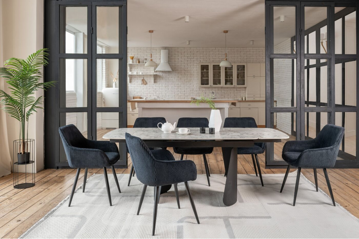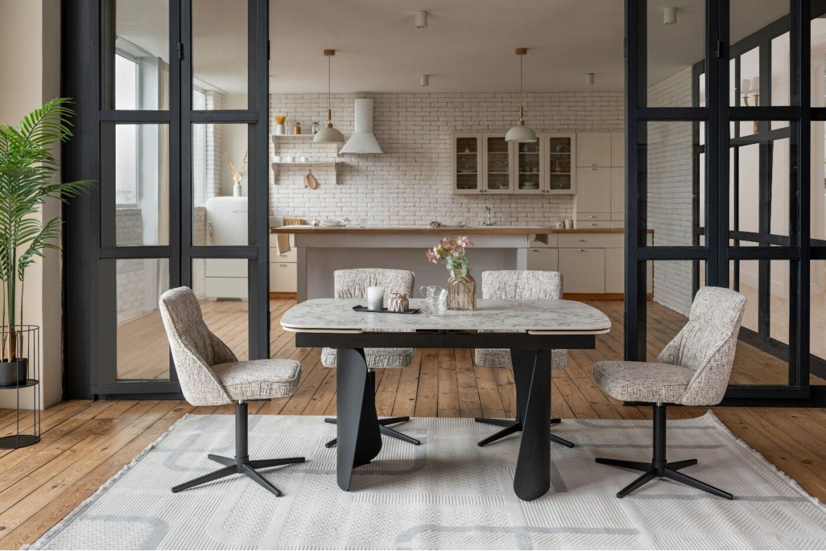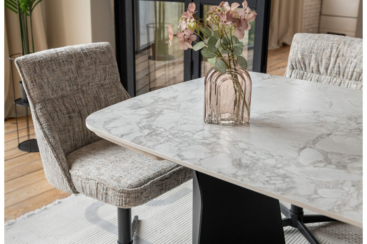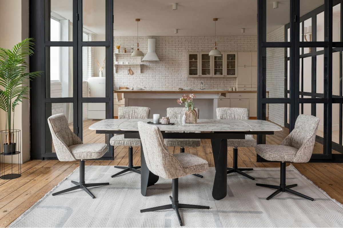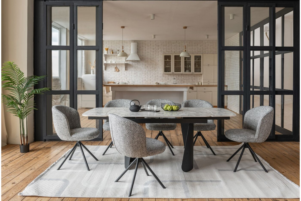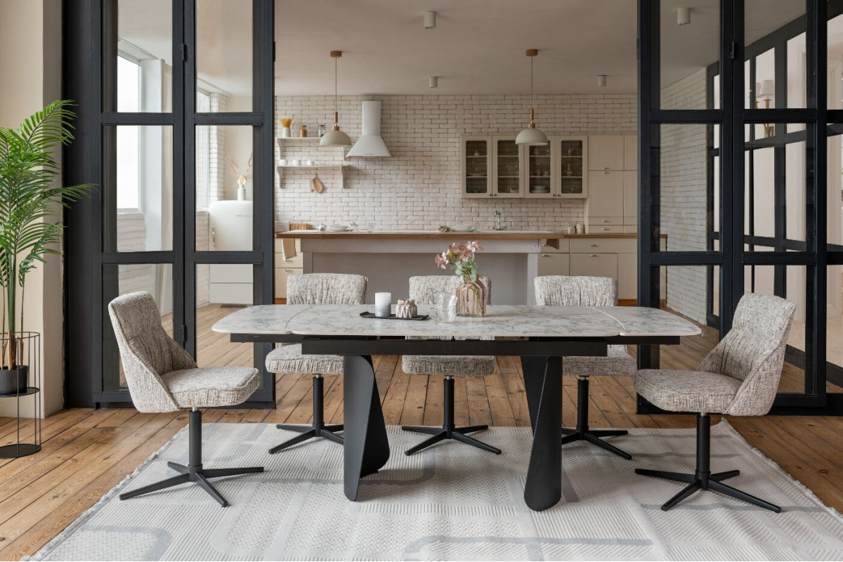 Керамічний стіл Нардо TML-1270 клауді грей + чорний — це поєднання мінімалізму, міцності та сучасних матеріалів.Стільниця з матової кераміки у відтінку клауді грей не лише виглядає елегантно, а й відзначається високою стійкістю до подряпин, вологи та температурних коливань.Основа з фарбованого металу у чорному кольорі додає столу виразності та забезпечує надійну стійкість.Розкладний механізм дозволяє легко збільшувати довжину столу з 140 до 200 см, адаптуючи його до будь-якого формату зустрічей.Цей стіл стане стильним центром вашої їдальні, доповнюючи інтер’єр гармонією форми та функціональності.