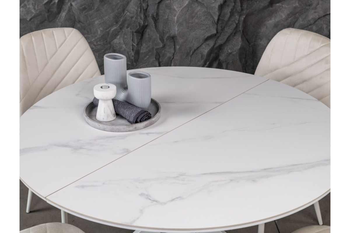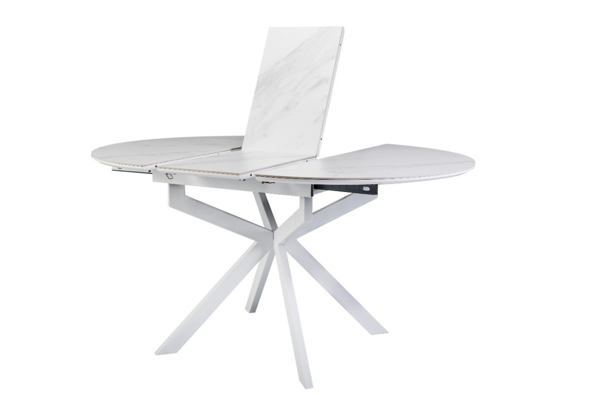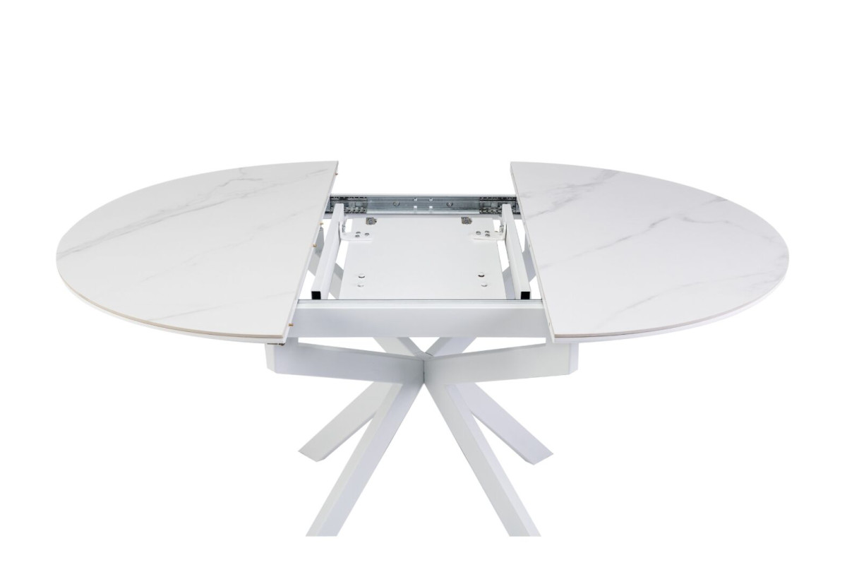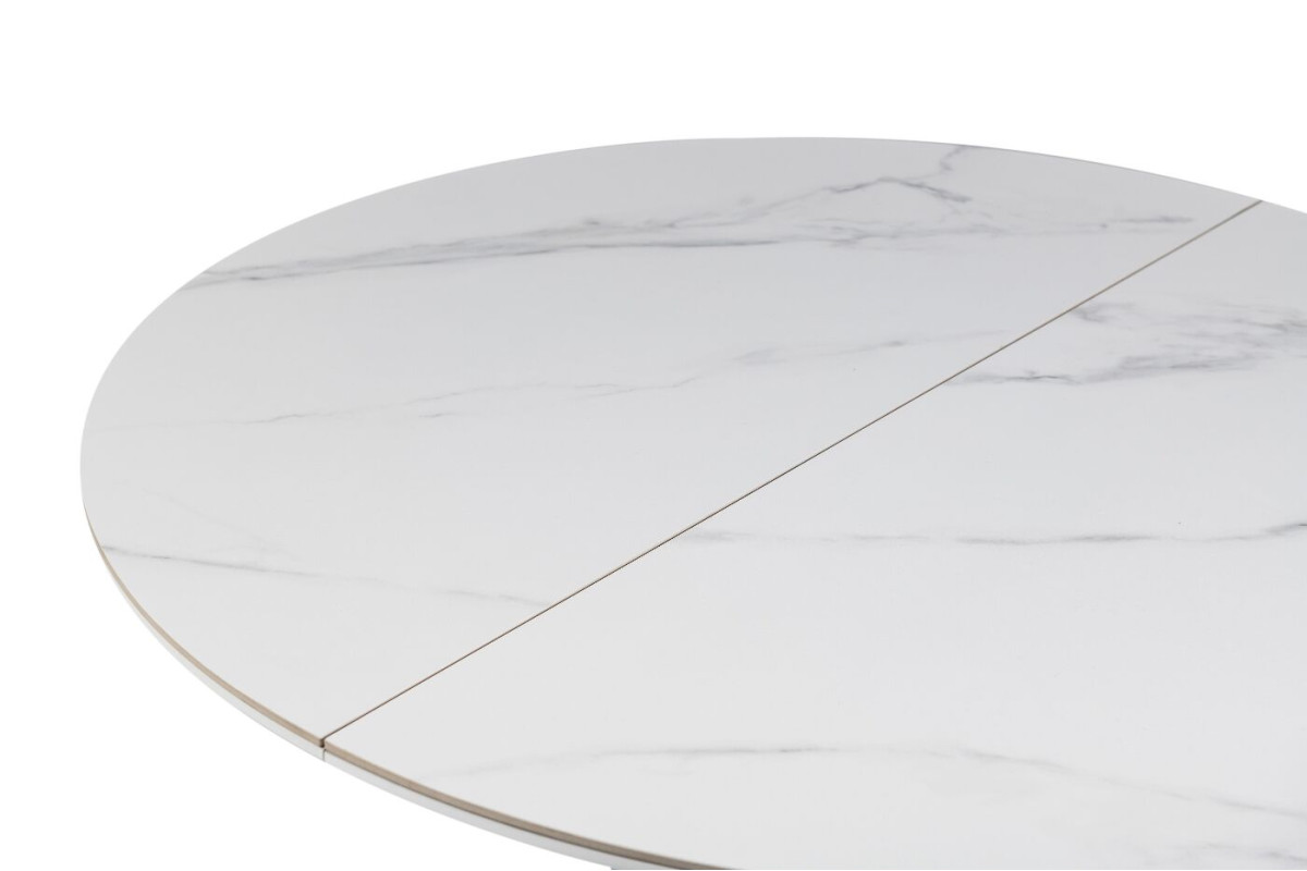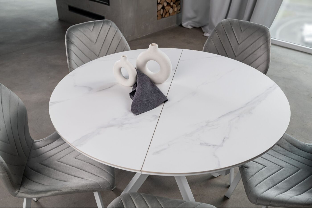 Керамічний стіл Офелія TML-1250 у кольорі калакатта крістал поєднує елегантний дизайн і практичність. Стільниця виконана з матової кераміки в комбінації з МДФ, що забезпечує її довговічність і стійкість до пошкоджень. Діаметр столу у складеному вигляді становить 105 см, а у розкладеному – 138 см, завдяки механізму розкладки книжка-автомат, який дозволяє легко змінювати розмір.Стіл має круглу форму, що додає затишку будь-якому інтер’єру.Основа виконана з фарбованого металу, що забезпечує надійність і стійкість.