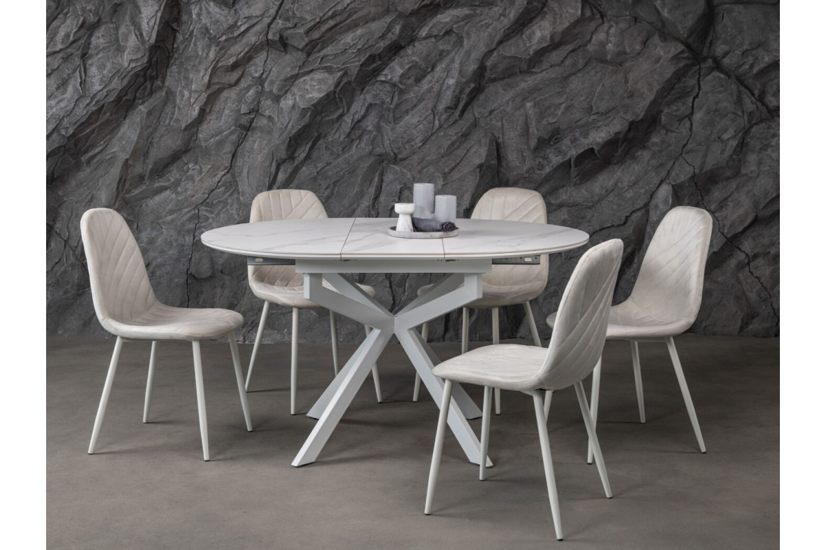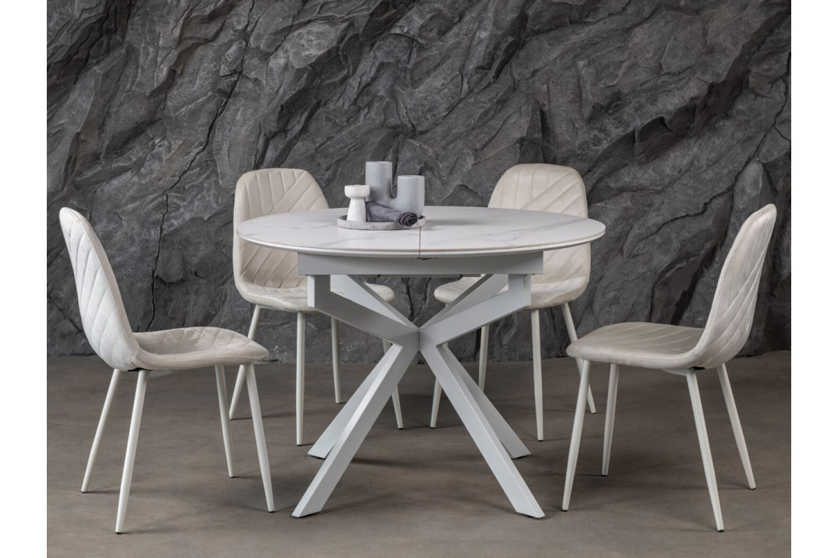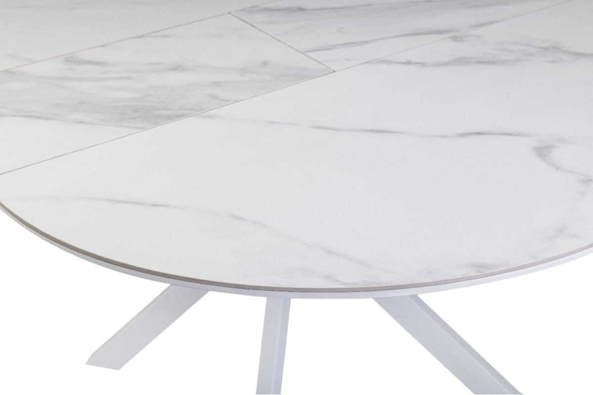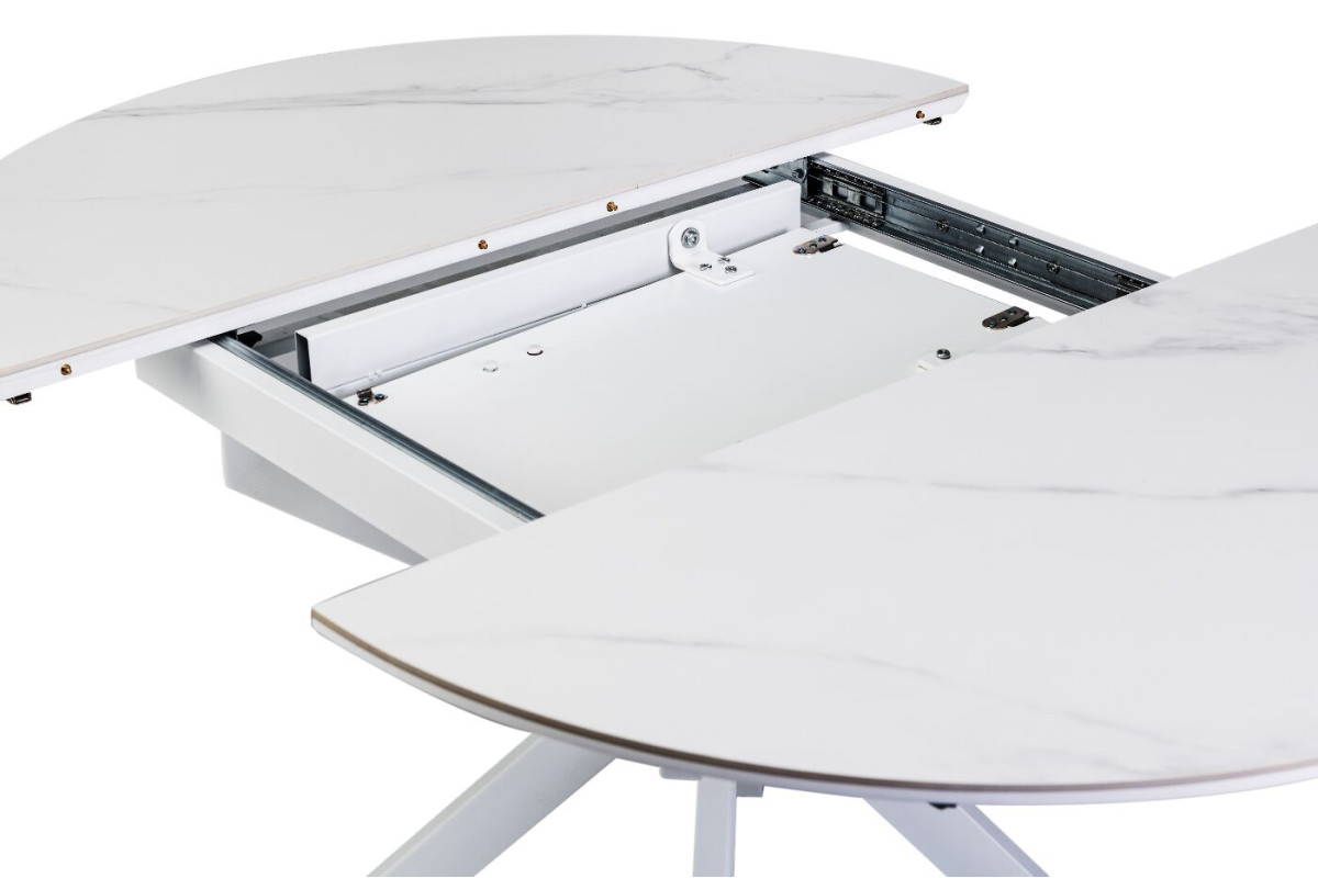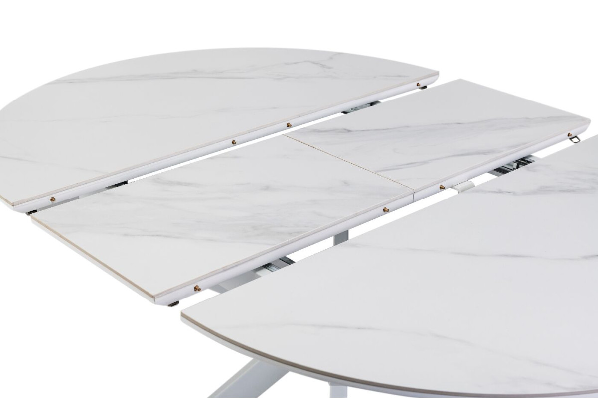 Керамічний стіл Офелія TML-1250 у кольорі калакатта крістал поєднує елегантний дизайн і практичність. Стільниця виконана з матової кераміки в комбінації з МДФ, що забезпечує її довговічність і стійкість до пошкоджень. Діаметр столу у складеному вигляді становить 105 см, а у розкладеному – 138 см, завдяки механізму розкладки книжка-автомат, який дозволяє легко змінювати розмір.Стіл має круглу форму, що додає затишку будь-якому інтер’єру.Основа виконана з фарбованого металу, що забезпечує надійність і стійкість.