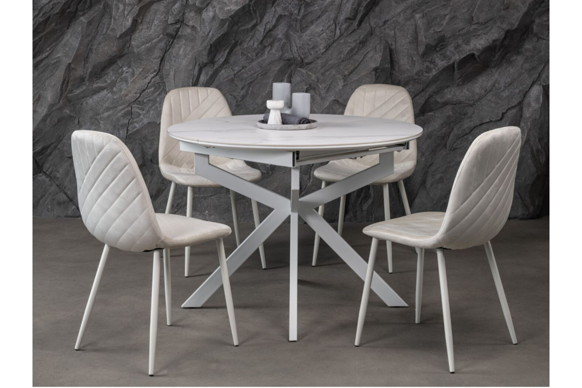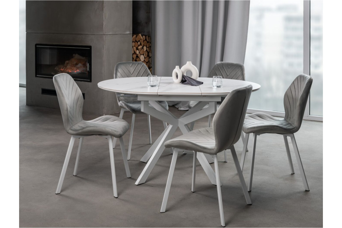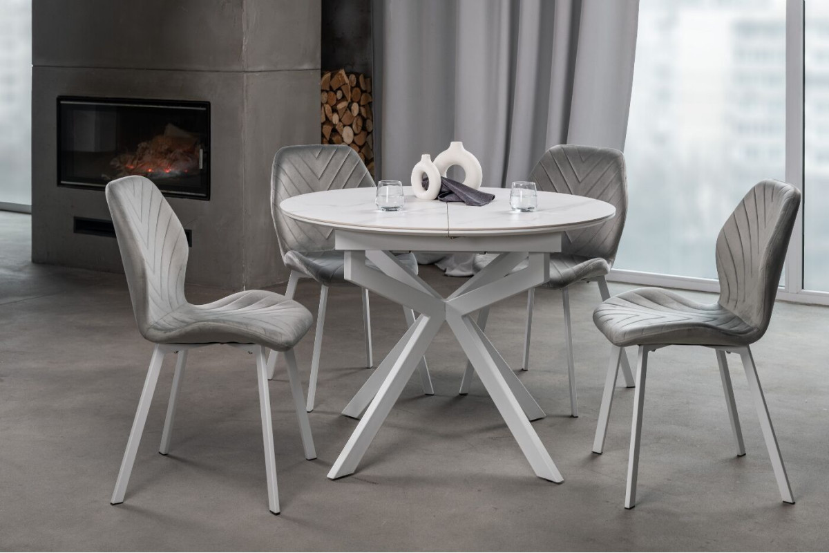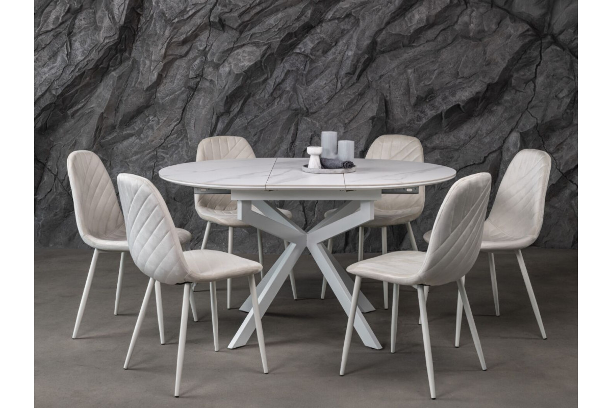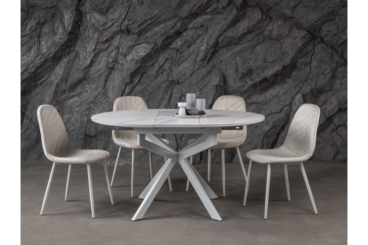 Керамічний стіл Офелія TML-1250 у кольорі калакатта крістал поєднує елегантний дизайн і практичність. Стільниця виконана з матової кераміки в комбінації з МДФ, що забезпечує її довговічність і стійкість до пошкоджень. Діаметр столу у складеному вигляді становить 105 см, а у розкладеному – 138 см, завдяки механізму розкладки книжка-автомат, який дозволяє легко змінювати розмір.Стіл має круглу форму, що додає затишку будь-якому інтер’єру.Основа виконана з фарбованого металу, що забезпечує надійність і стійкість.