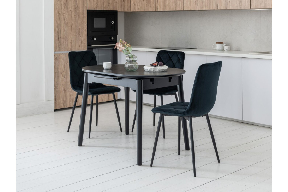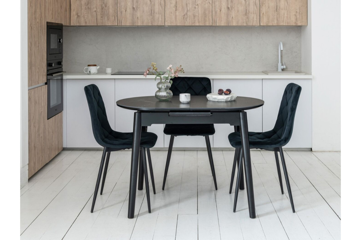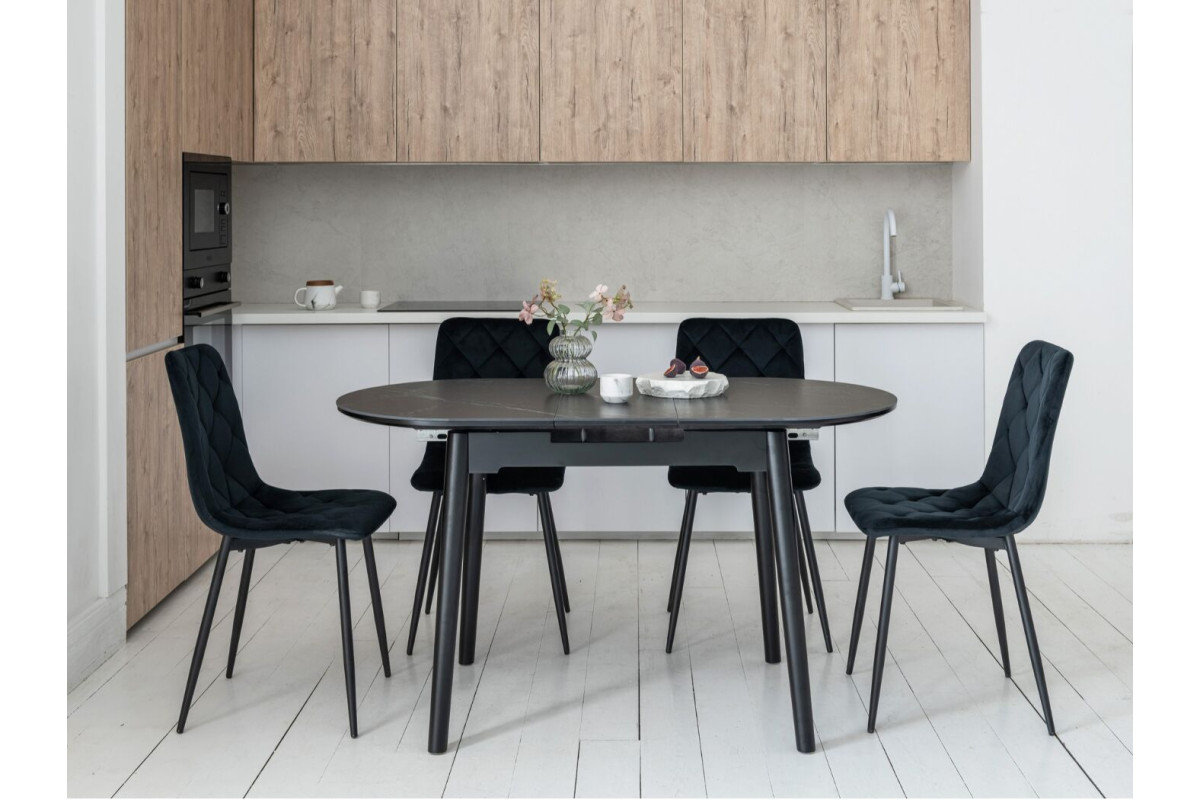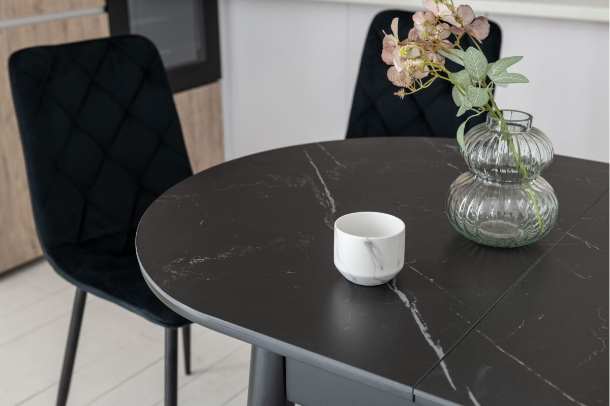 Обідній стіл у кольорі Чорний онікс привнесе стиль та вишуканість у ваш інтер'єр. Його овальна форма надає столу вишуканий вигляд, а чорний онікс додає елегантності та розкоші.Чорний онікс - це колір кераміки, який викор... Читать далее...