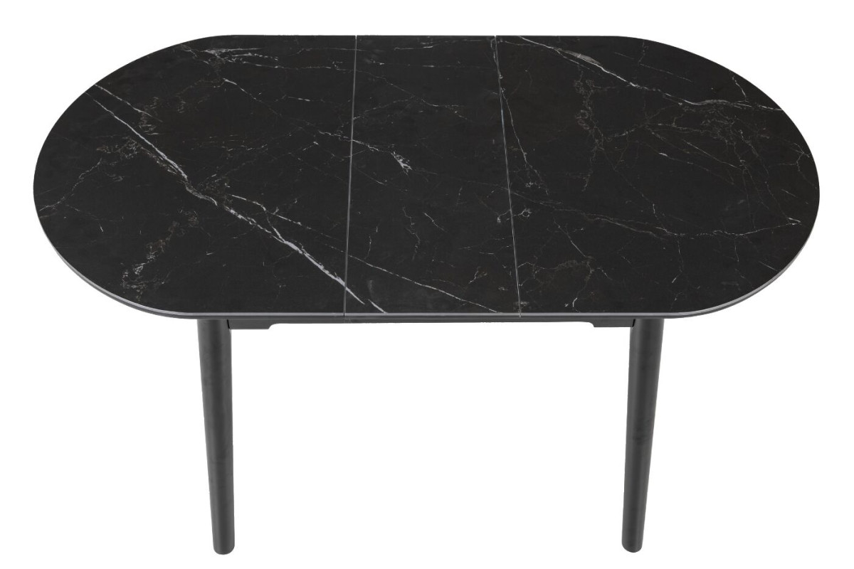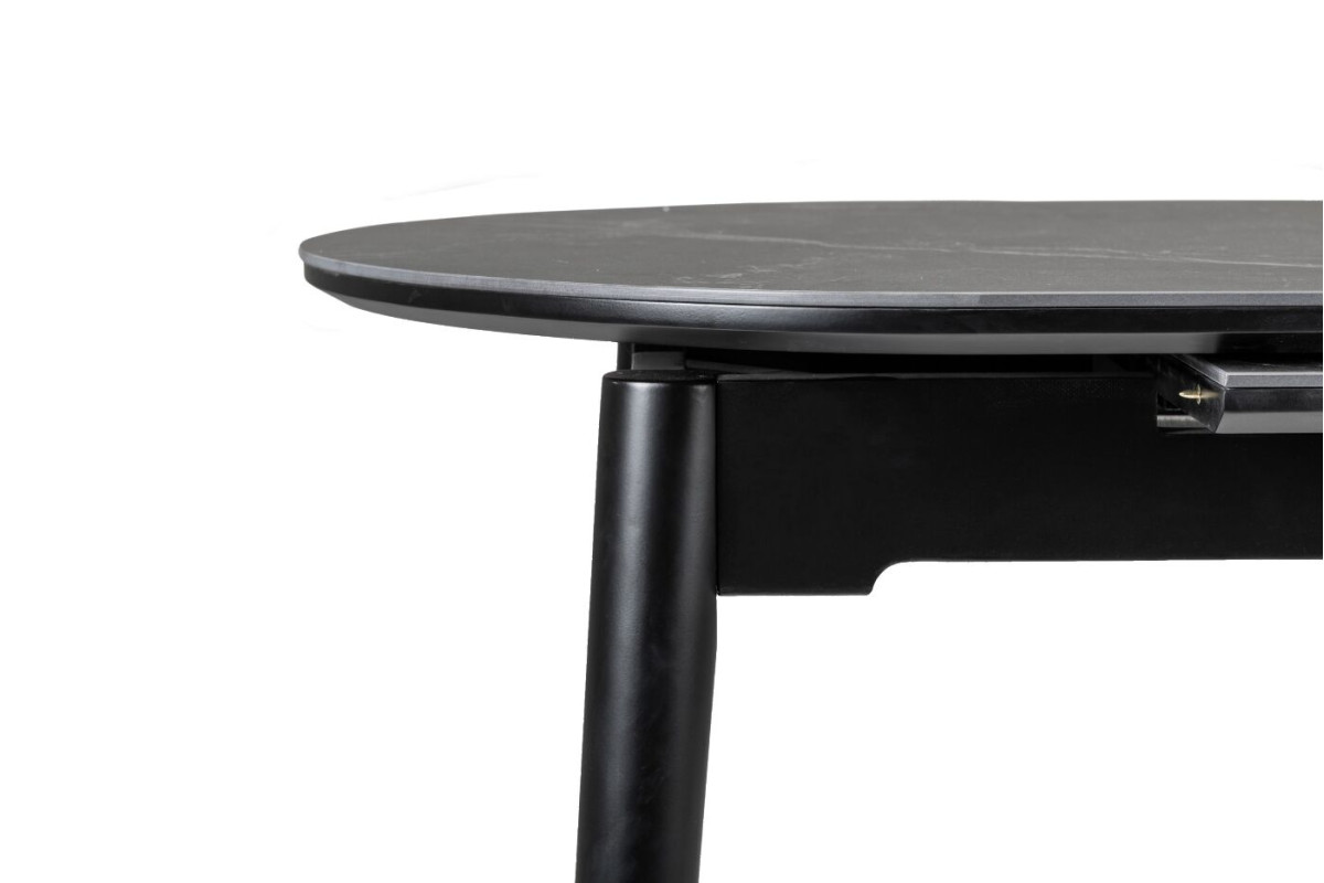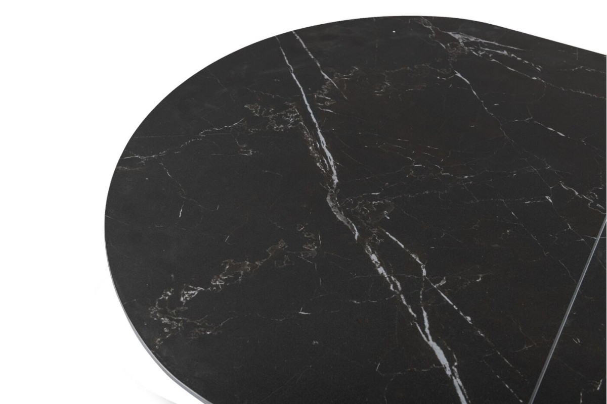 Обідній стіл у кольорі Чорний онікс привнесе стиль та вишуканість у ваш інтер'єр. Його овальна форма надає столу вишуканий вигляд, а чорний онікс додає елегантності та розкоші.Чорний онікс - це колір кераміки, який використовується в інтер'єрному дизайні та для створення різноманітних предметів інтер'єру, включаючи меблі, столешні, та інші декоративні елементи.