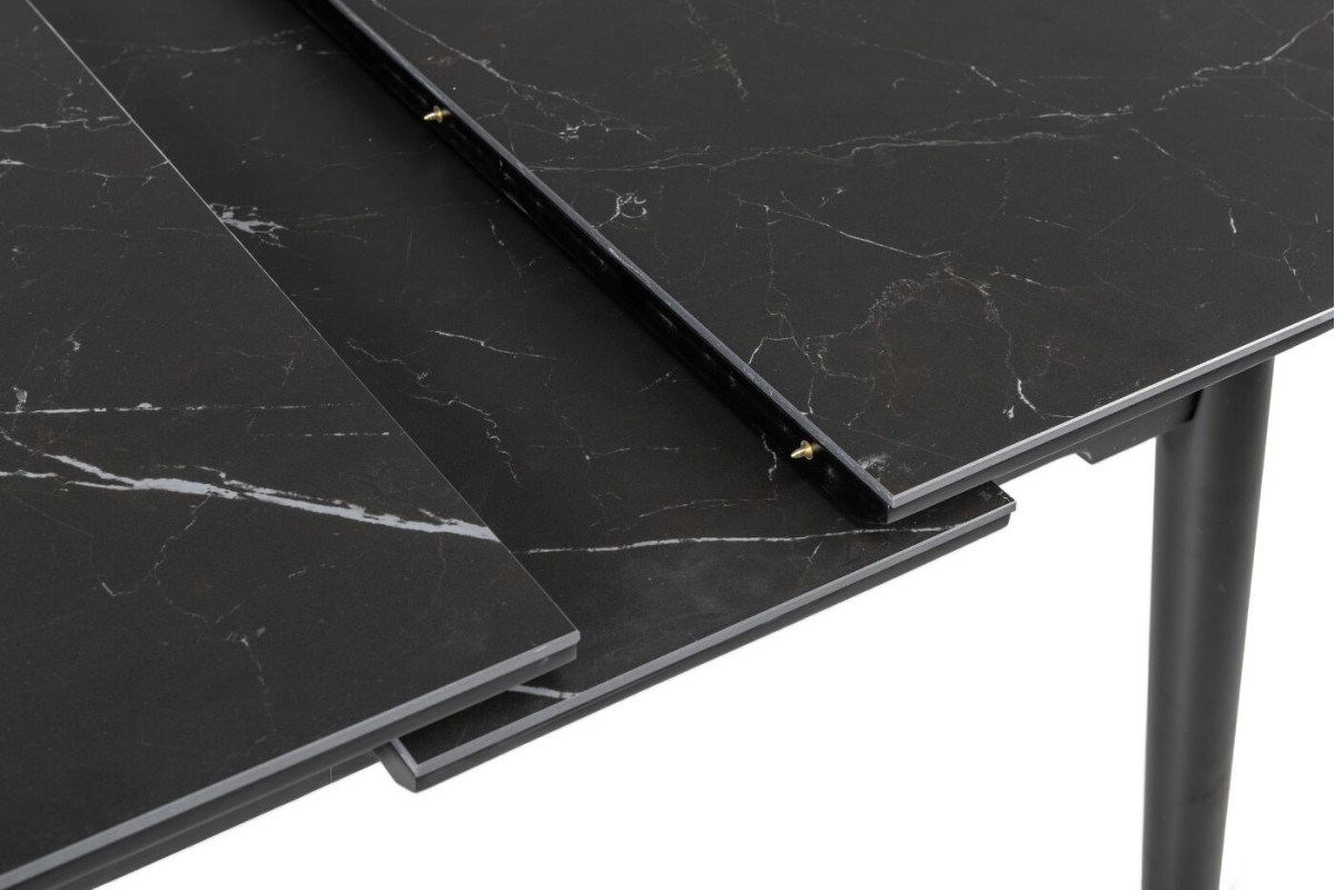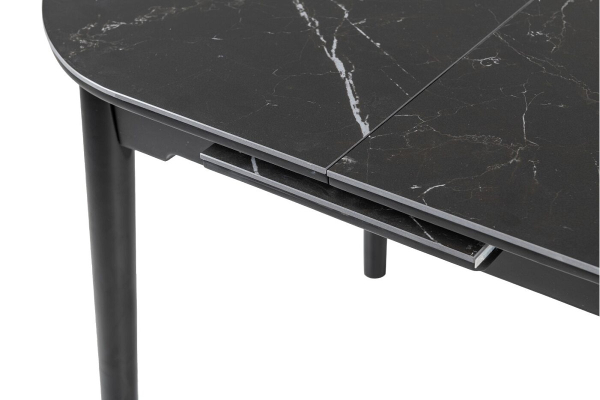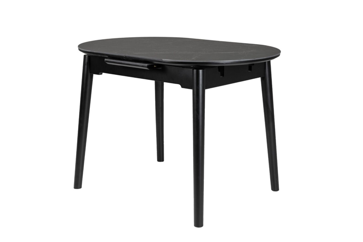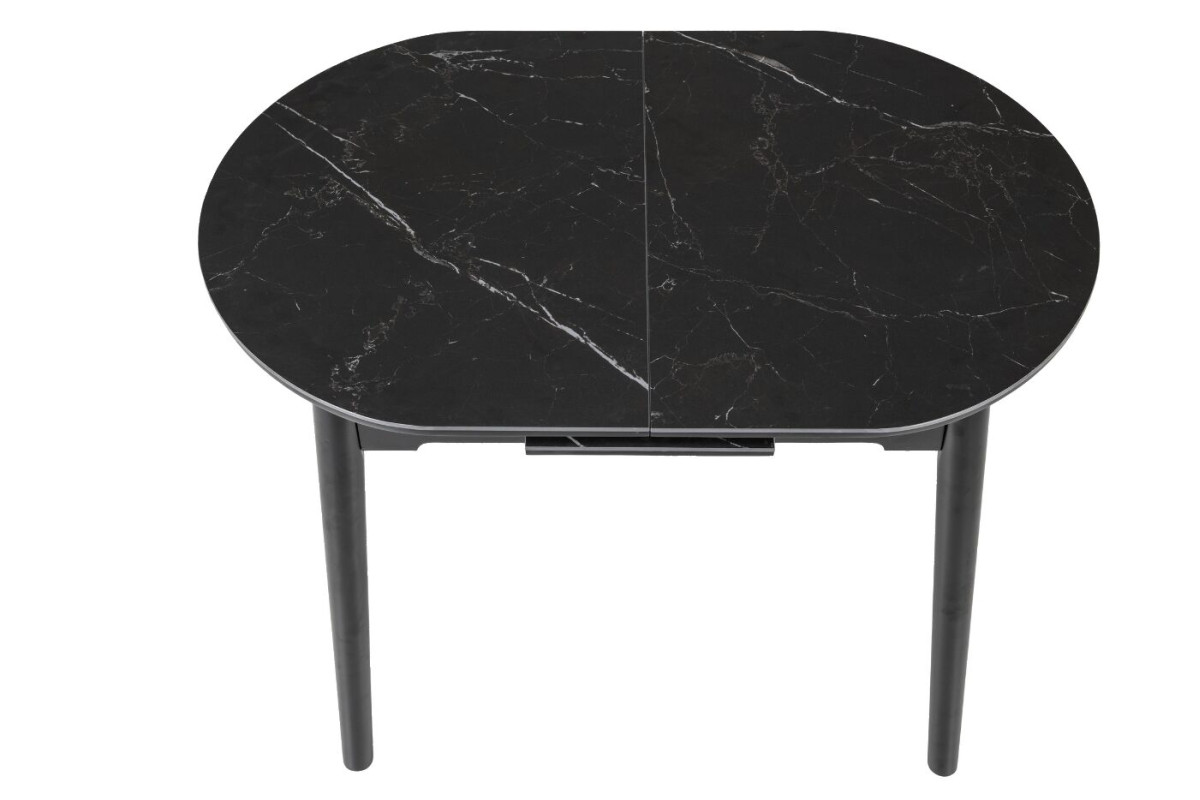 Обідній стіл у кольорі Чорний онікс привнесе стиль та вишуканість у ваш інтер'єр. Його овальна форма надає столу вишуканий вигляд, а чорний онікс додає елегантності та розкоші.Чорний онікс - це колір кераміки, який використовується в інтер'єрному дизайні та для створення різноманітних предметів інтер'єру, включаючи меблі, столешні, та інші декоративні елементи.