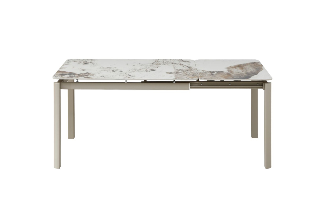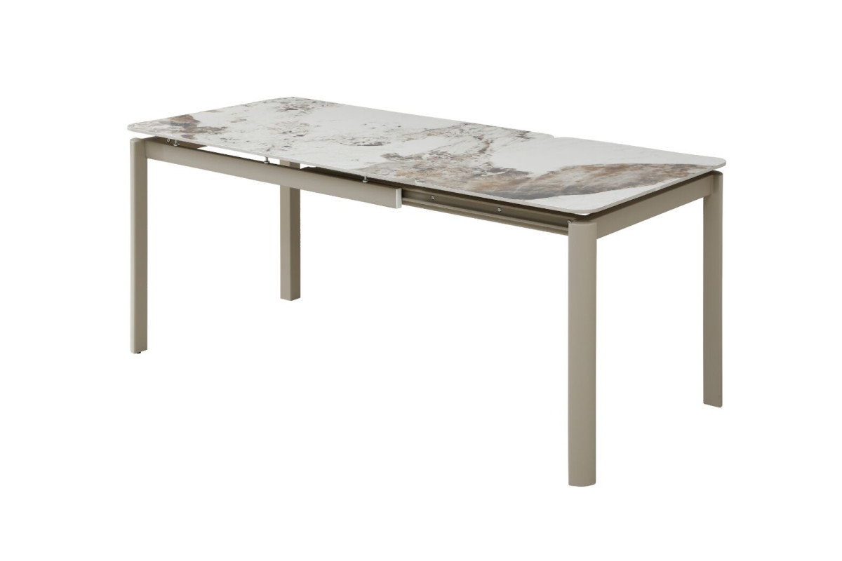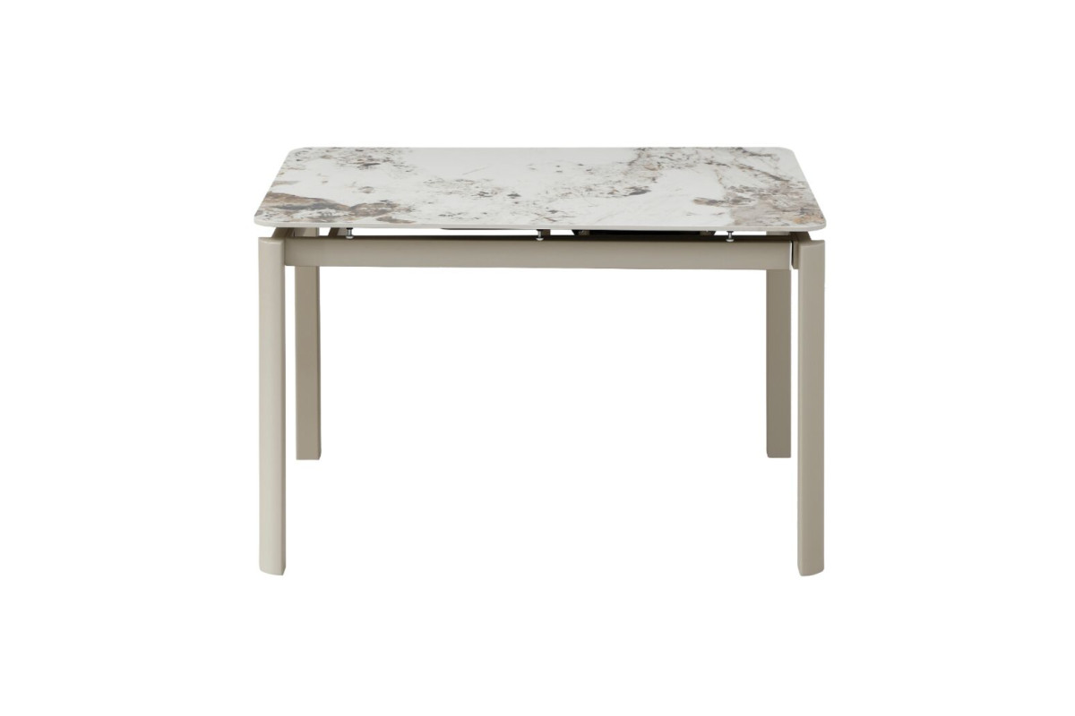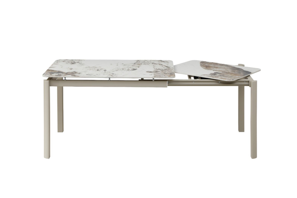 Керамічний стіл «Тревізо» TML-1350-1 у відтінку калакатта вінтаж + бежевий — це поєднання сучасної естетики, функціональності та преміальних матеріалів. Вишукана стільниця з ефектом натурального каменю додає інтер’єру глибини та характеру, а стримана бежева основа гармонійно доповнює загальний образ, створюючи відчуття легкості та балансу.Глянцева керамічна поверхня не лише виглядає розкішно, а й відзначається високою практичністю. Вона стійка до температурних впливів і щоденного використання, що робить стіл ідеальним як для щоденних обідів, так і для прийому гостей. Приємний блиск поверхні підсилює ефект натурального каменю та додає інтер’єру елегантності.Прямокутна форма столу є універсальною та зручною для організації простору. У складеному вигляді його розміри становлять 120×80 см, що ідеально підходить для компактних кухонь або їдалень. Завдяки боковому поворотному автоматичному механізму стіл легко трансформується до довжини 180 см, дозволяючи комфортно розмістити більше гостей без зайвих зусиль.Стіл «Тревізо» — це ідеальне рішення для тих, хто цінує стиль, практичність і можливість легко адаптувати простір під різні сценарії життя.