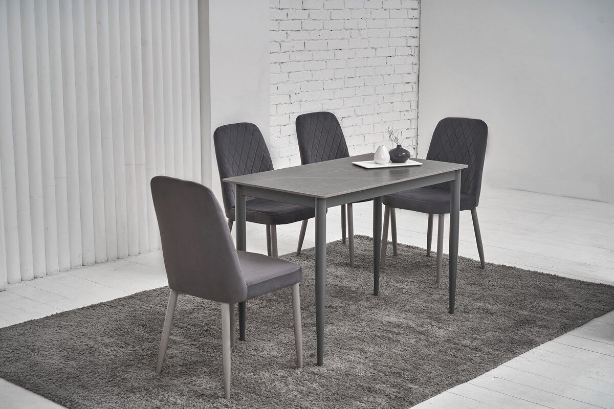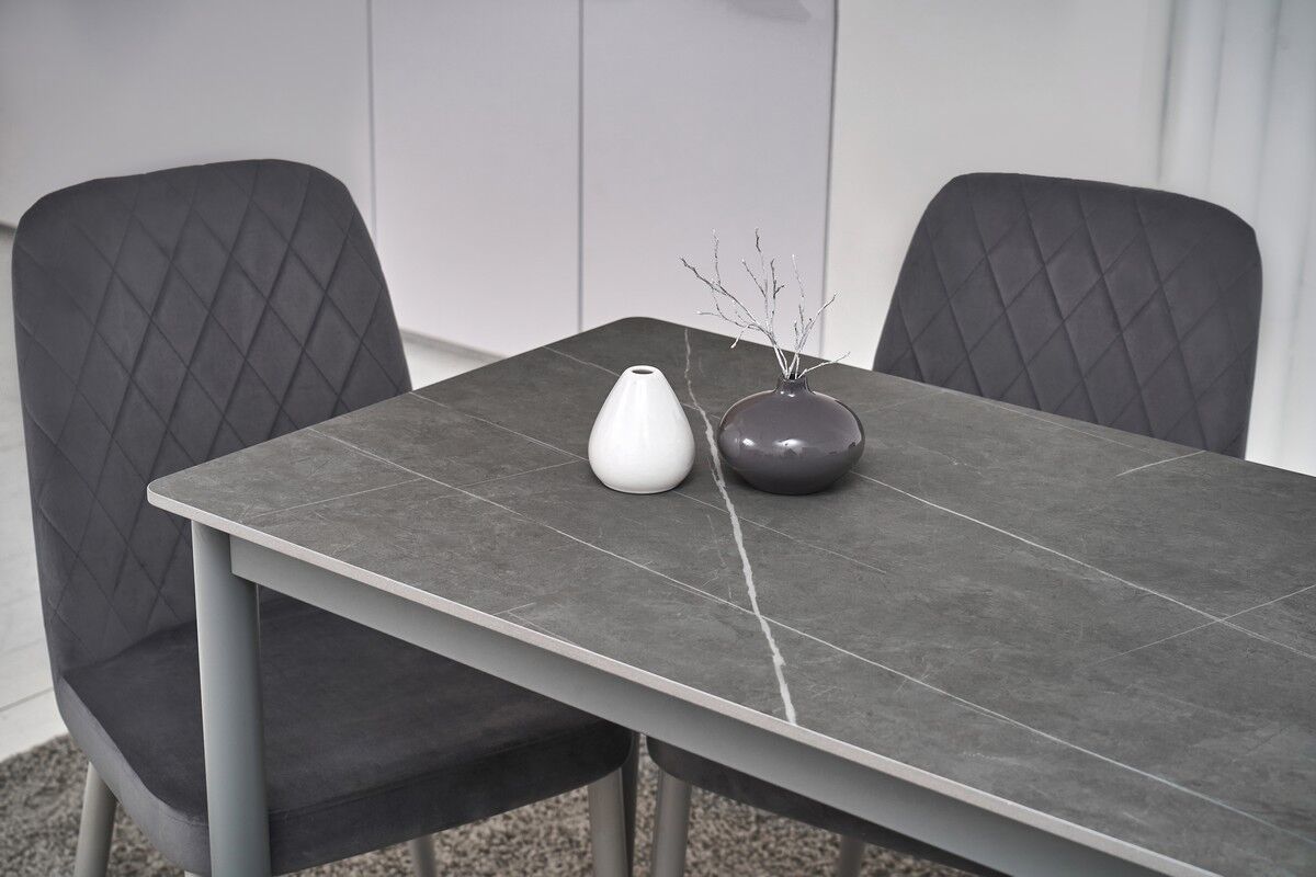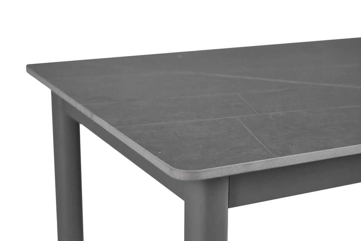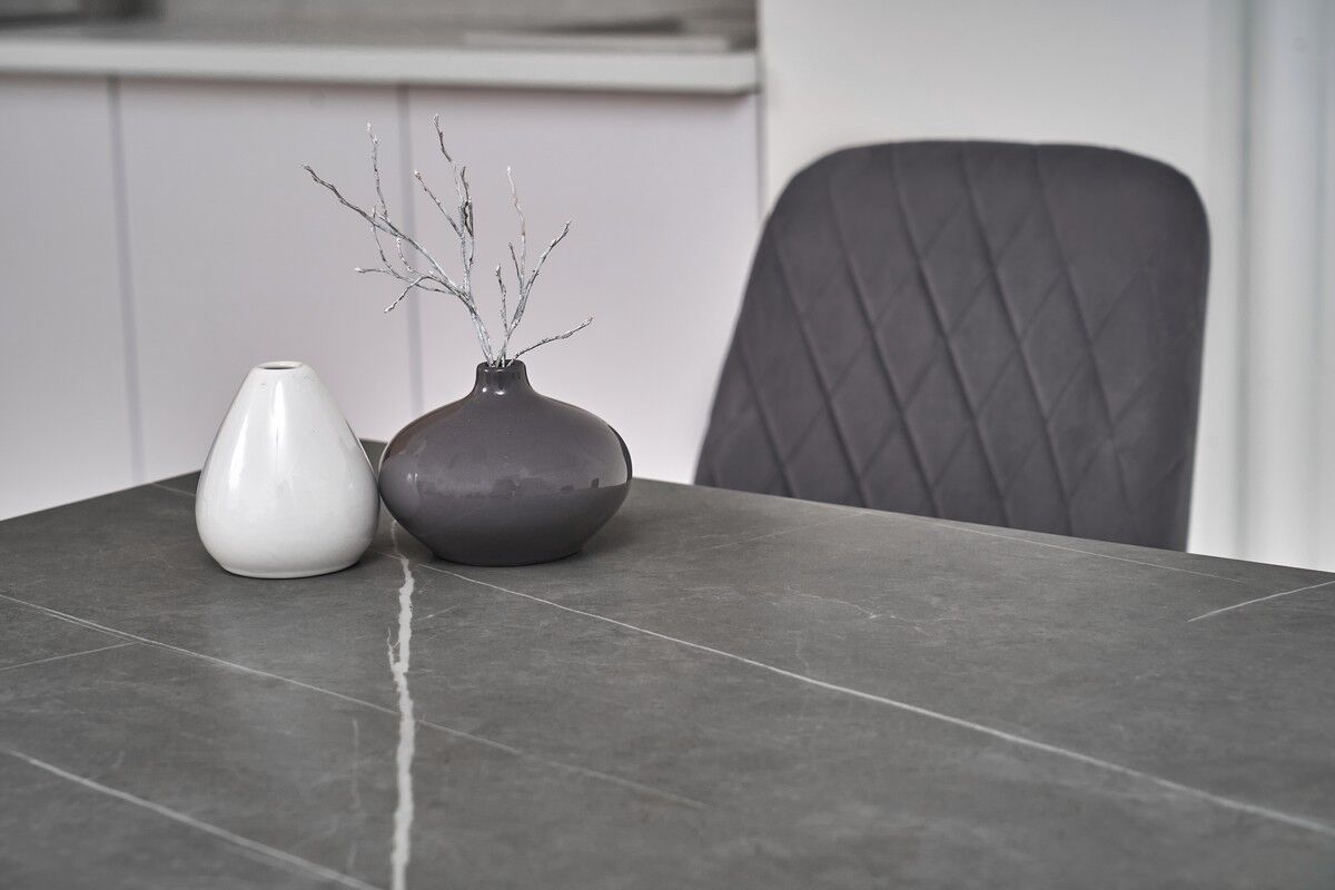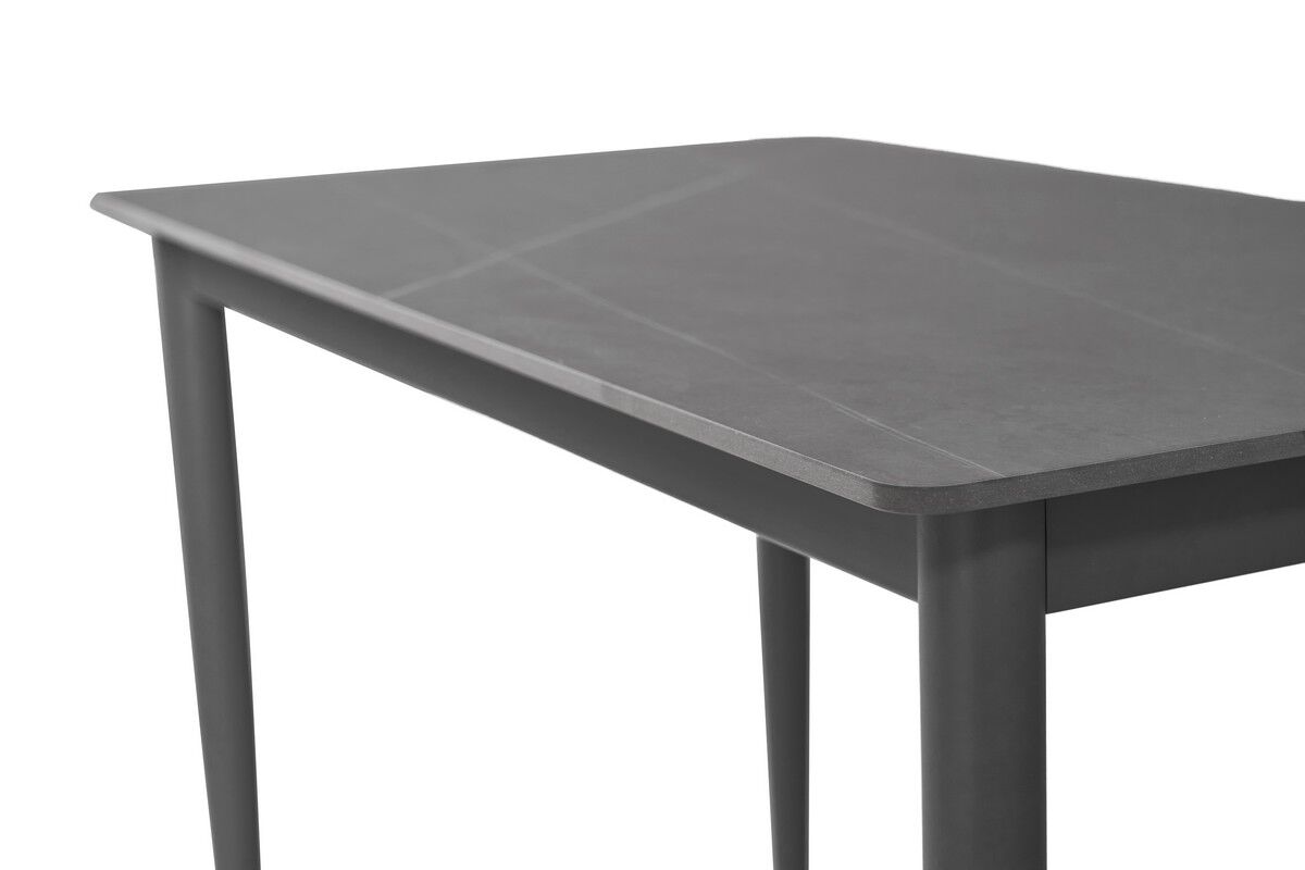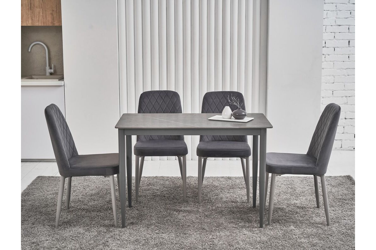 Петра Грей – це відтінок сірого, що імітує природний камінь, надаючи столу елегантності і сучасності. Цей колір створює стриману, але вишукану атмосферу, прекрасно поєднуючись з різними кольоровими палітрами і стилями інтер'єру.Прямокутна форма стола забезпечує максимальну функціональність і зручність, роблячи його універсальним для будь-яких приміщень.Матова кераміка не тільки виглядає стильно, але і є стійкою до подряпин і легкою в догляді. Матова поверхня додає столу сучасного вигляду та не відбиває світло.Основа з фарбованого металу забезпечує стійкість і міцність конструкції, додаючи їй сучасного і мінімалістичного вигляду.